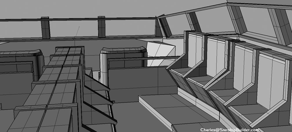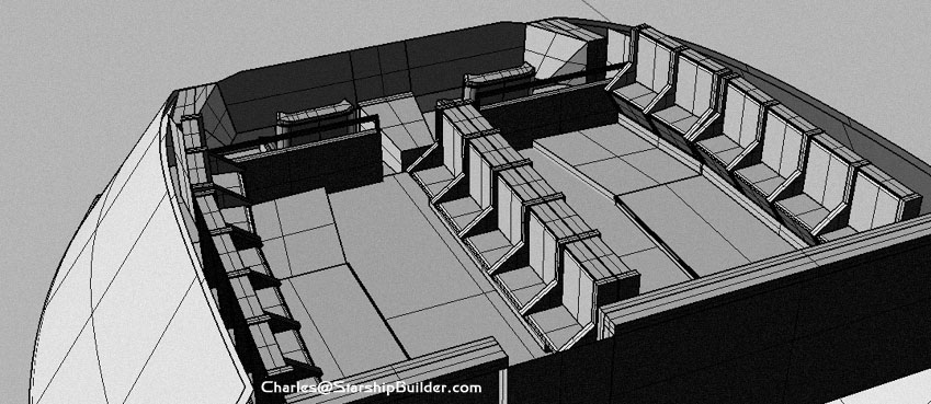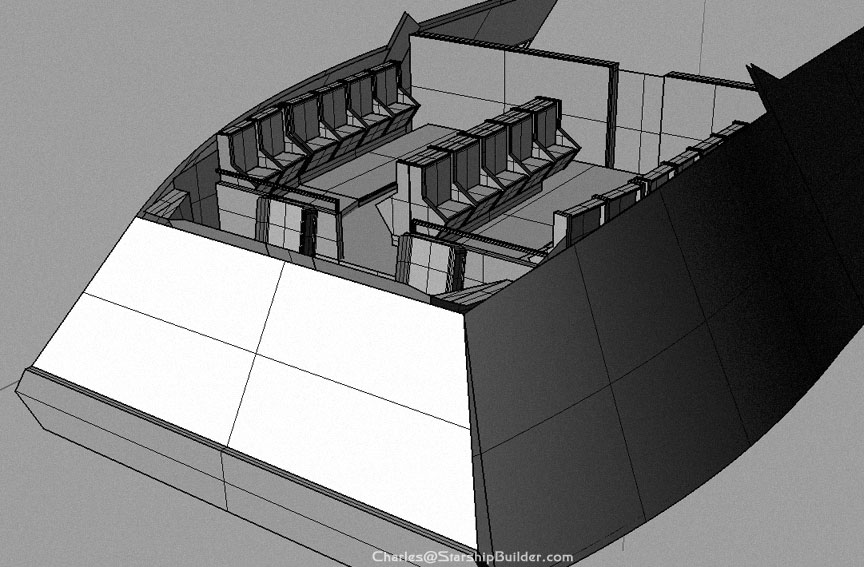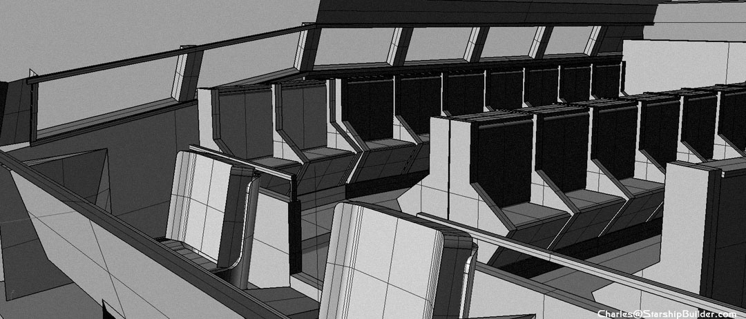 In the process of creating this mockup, I was able to derive patterns for the instrument panel, console, pilot’s seats, and passenger seats. All that remains are the joystick controls and some ceiling detail.