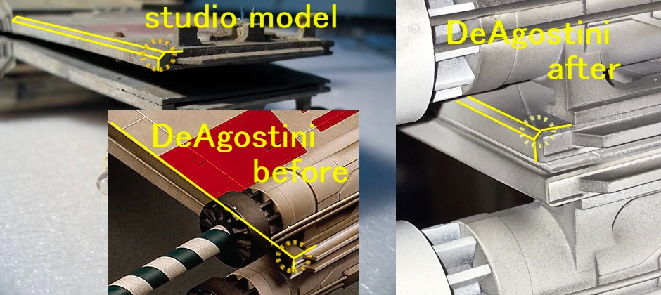 I modified it because the position of the protrusion on the upper left engine housing is different