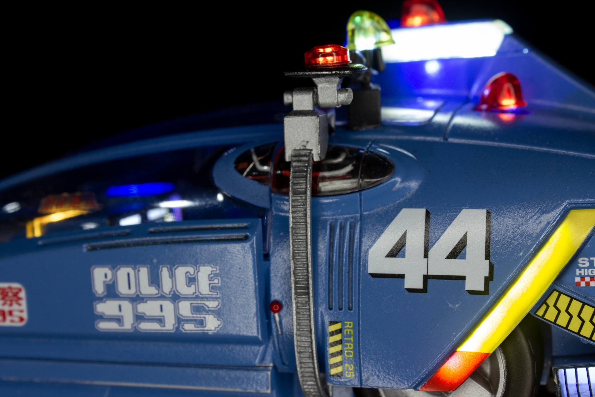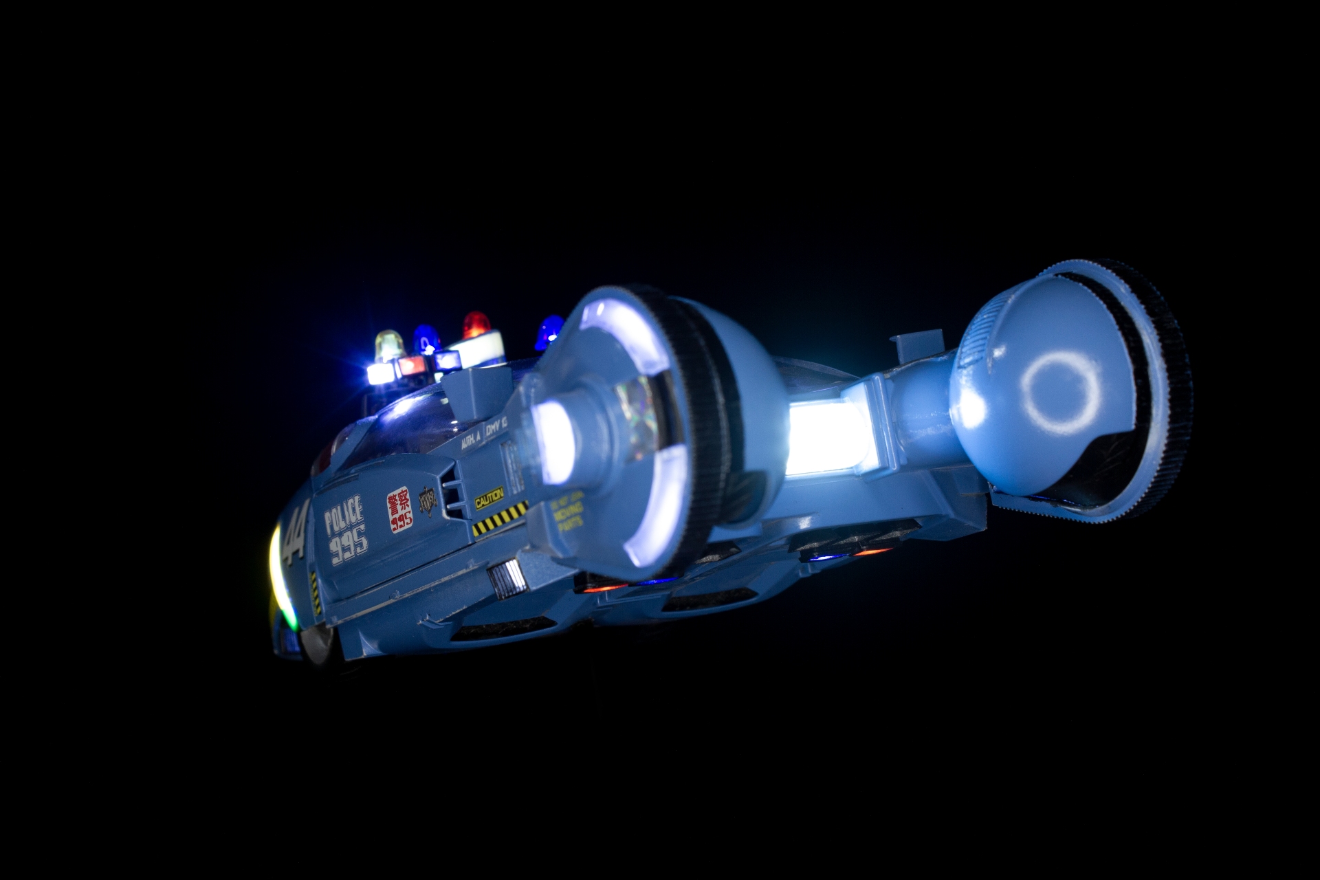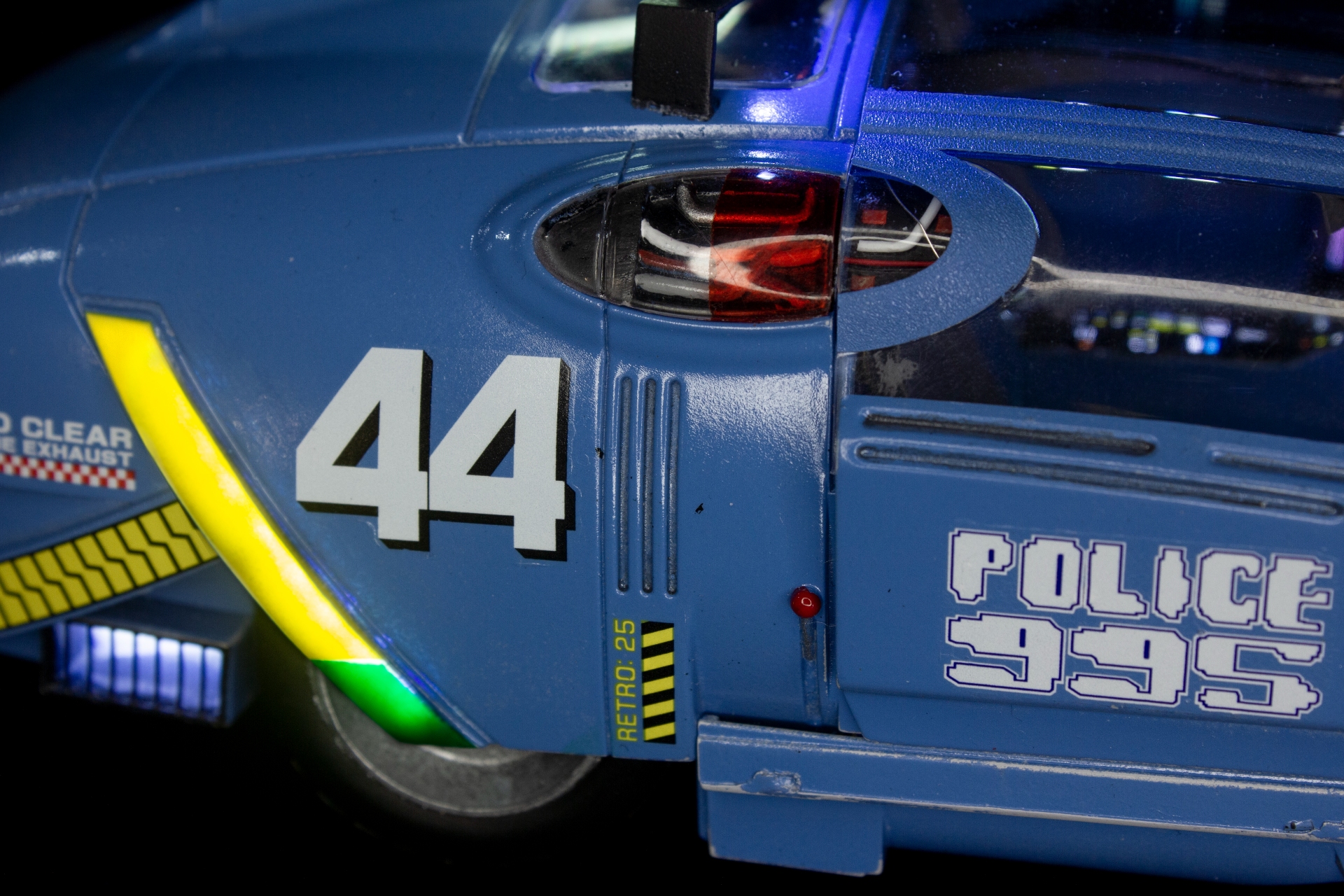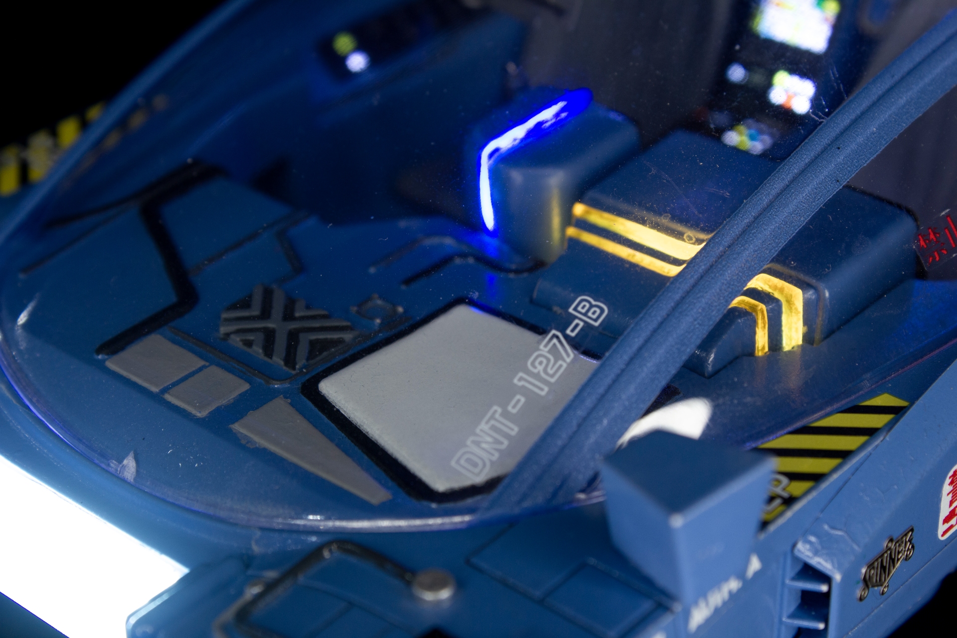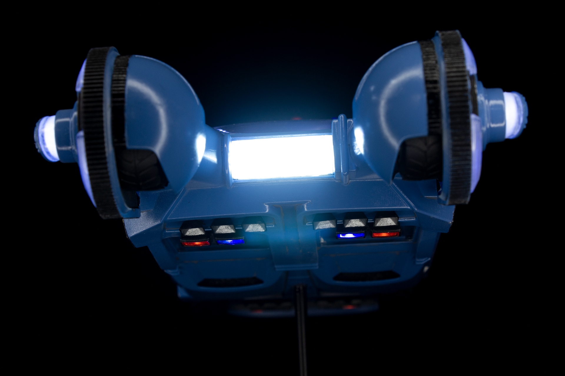 I used 55 SMD LEDs, 4 COB LED strips for lighting the side fenders, main headlight and top white light, and I used an Adafruit Trinket to control the lighting effects of the police lights on the top and bottom of the Spinner.