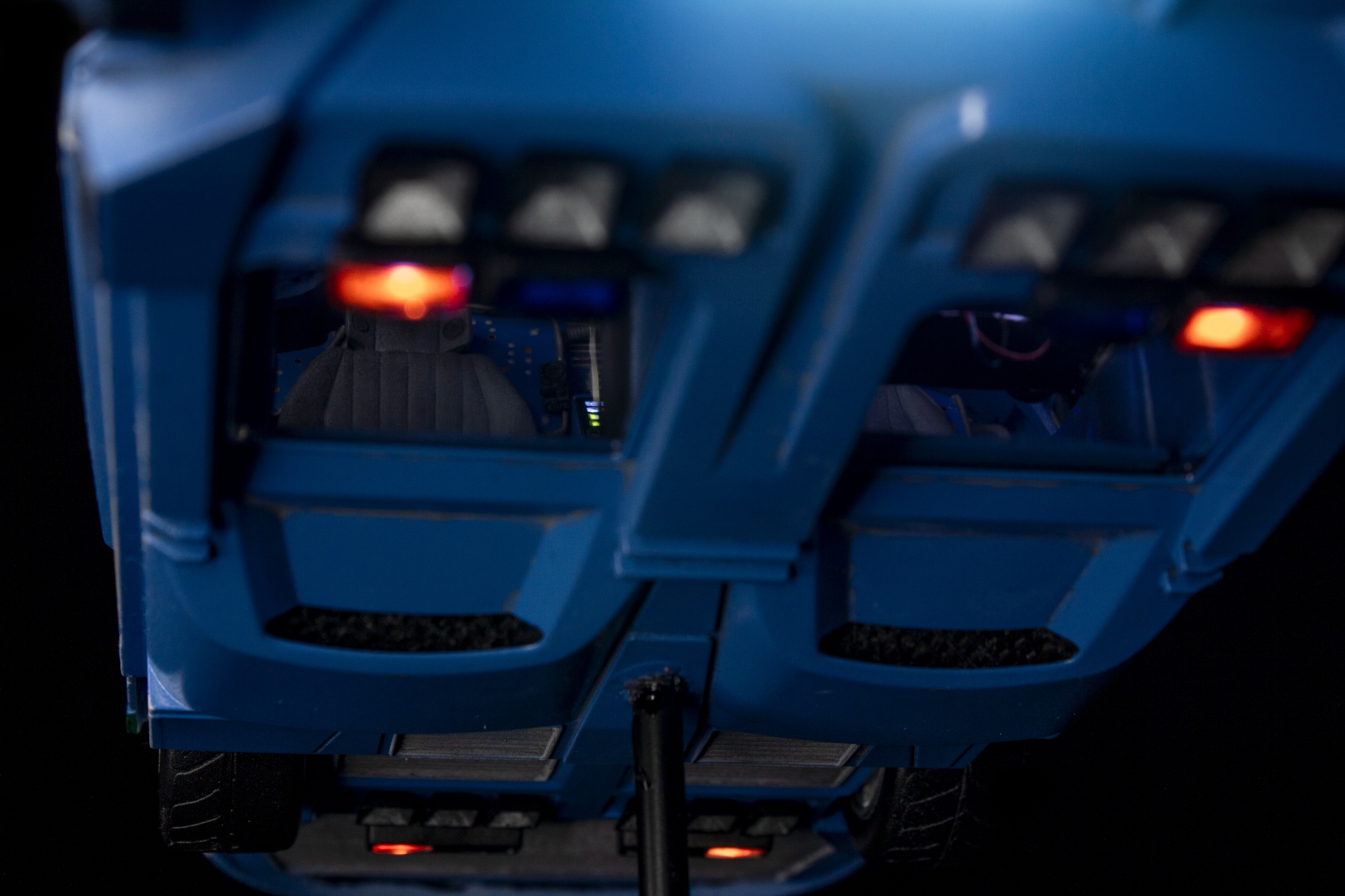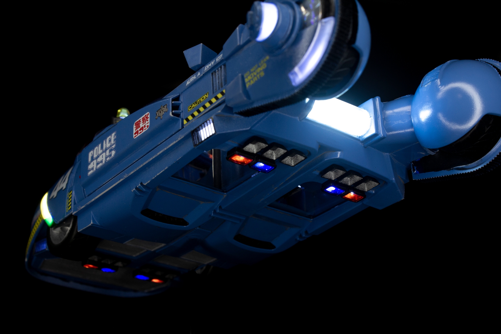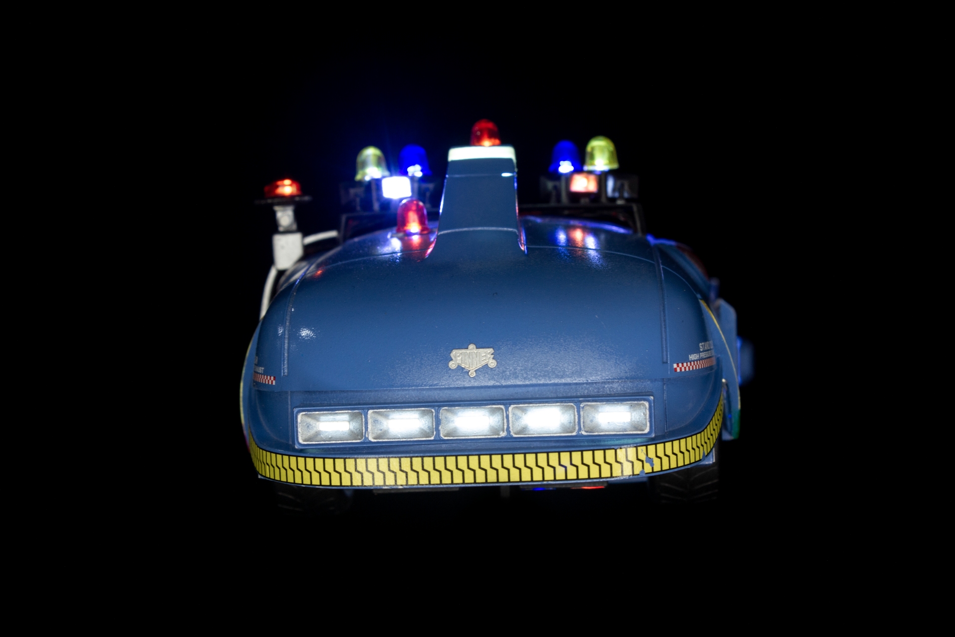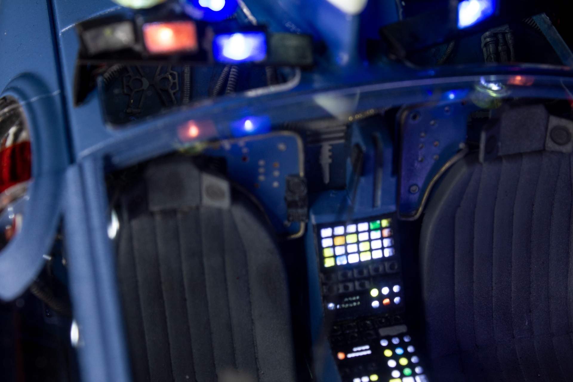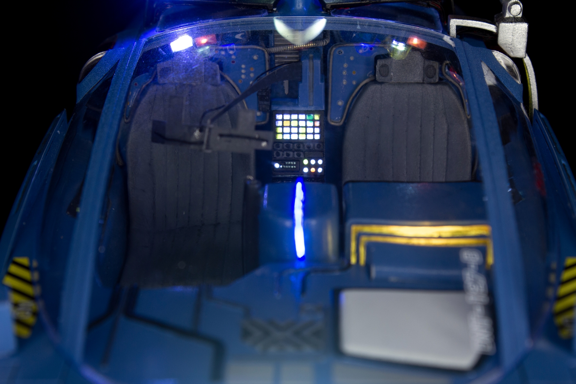I used 55 SMD LEDs, 4 COB LED strips for lighting the side fenders, main headlight and top white light, and I used an Adafruit Trinket to control the lighting effects of the police lights on the top and bottom of the Spinner.