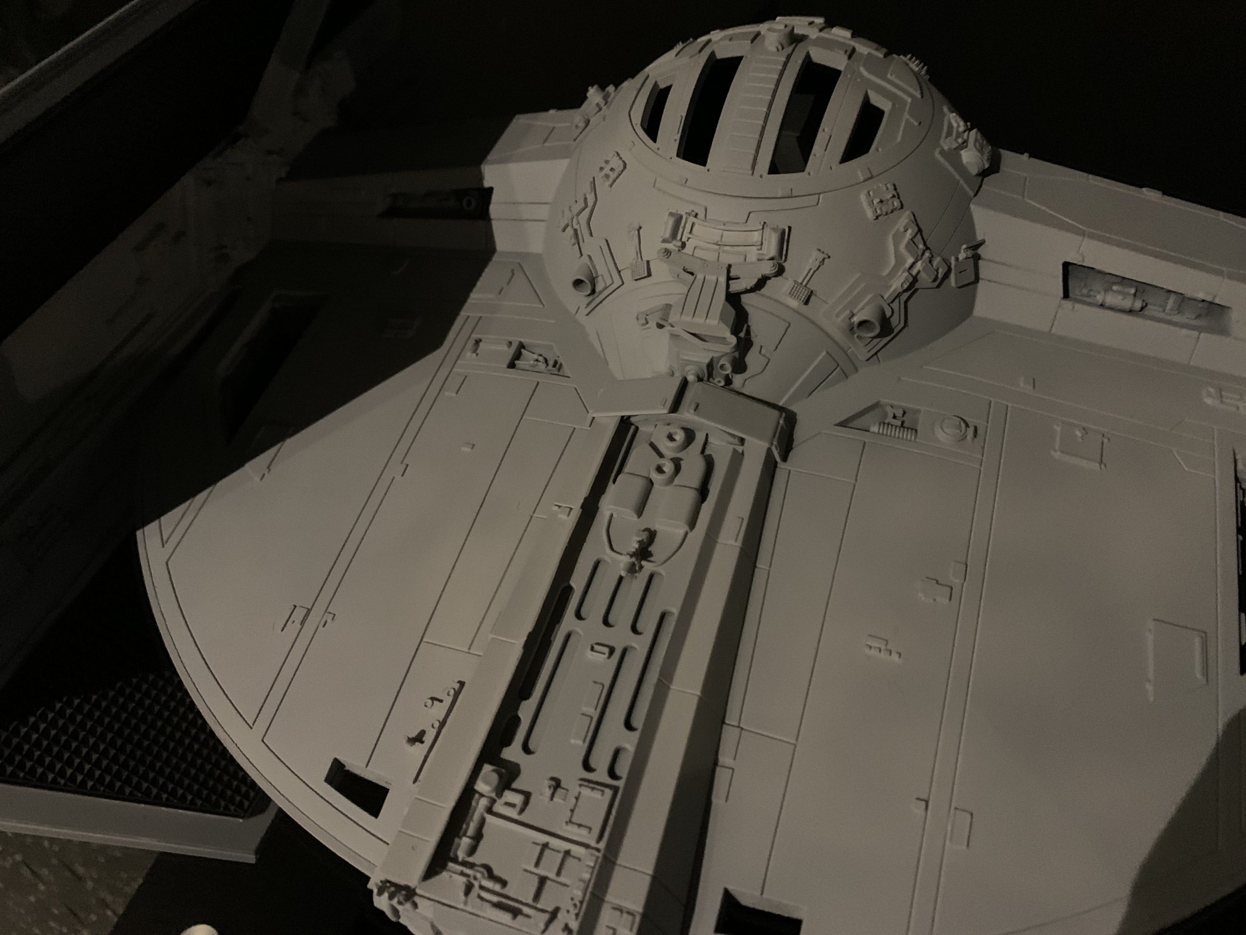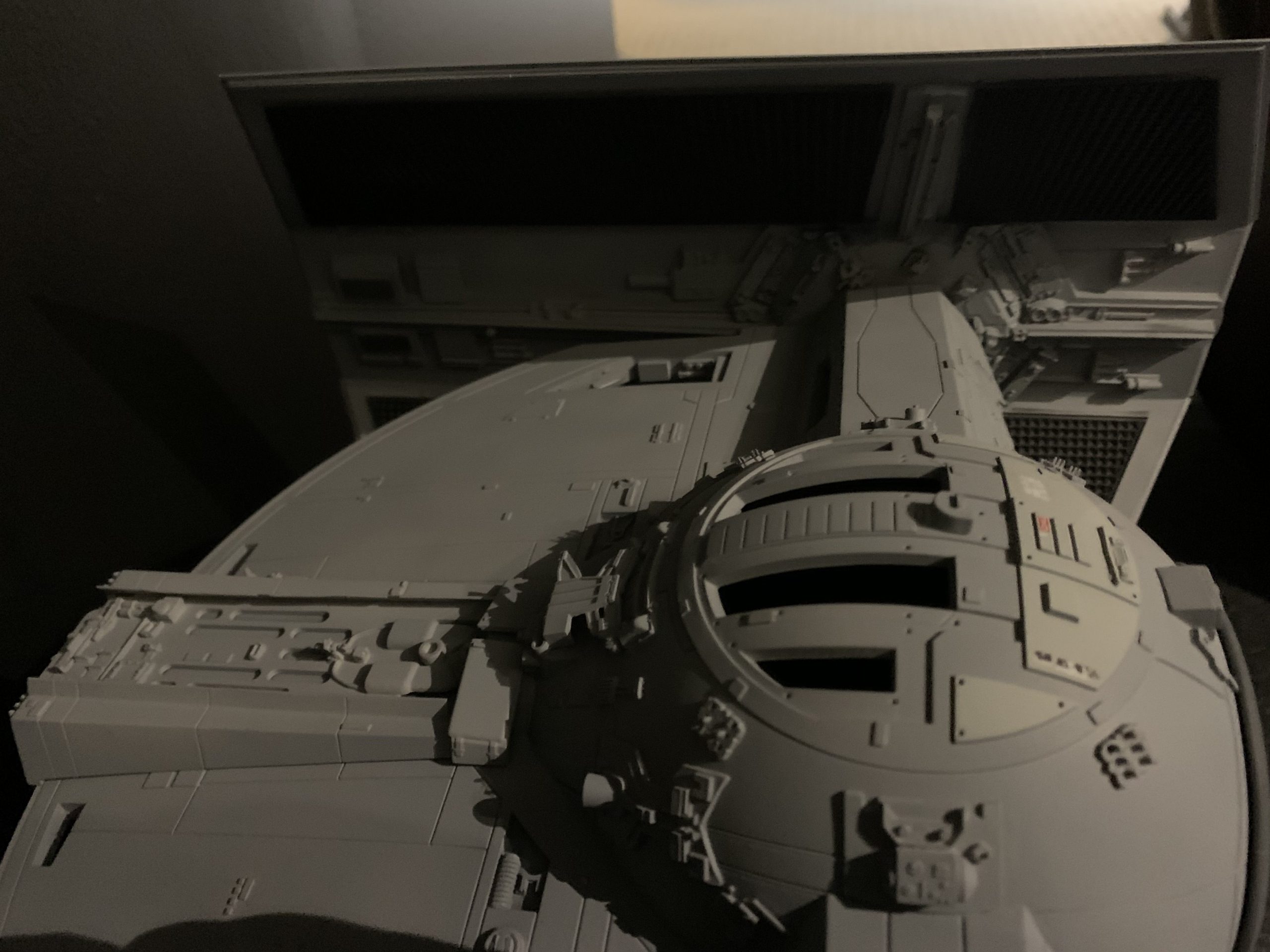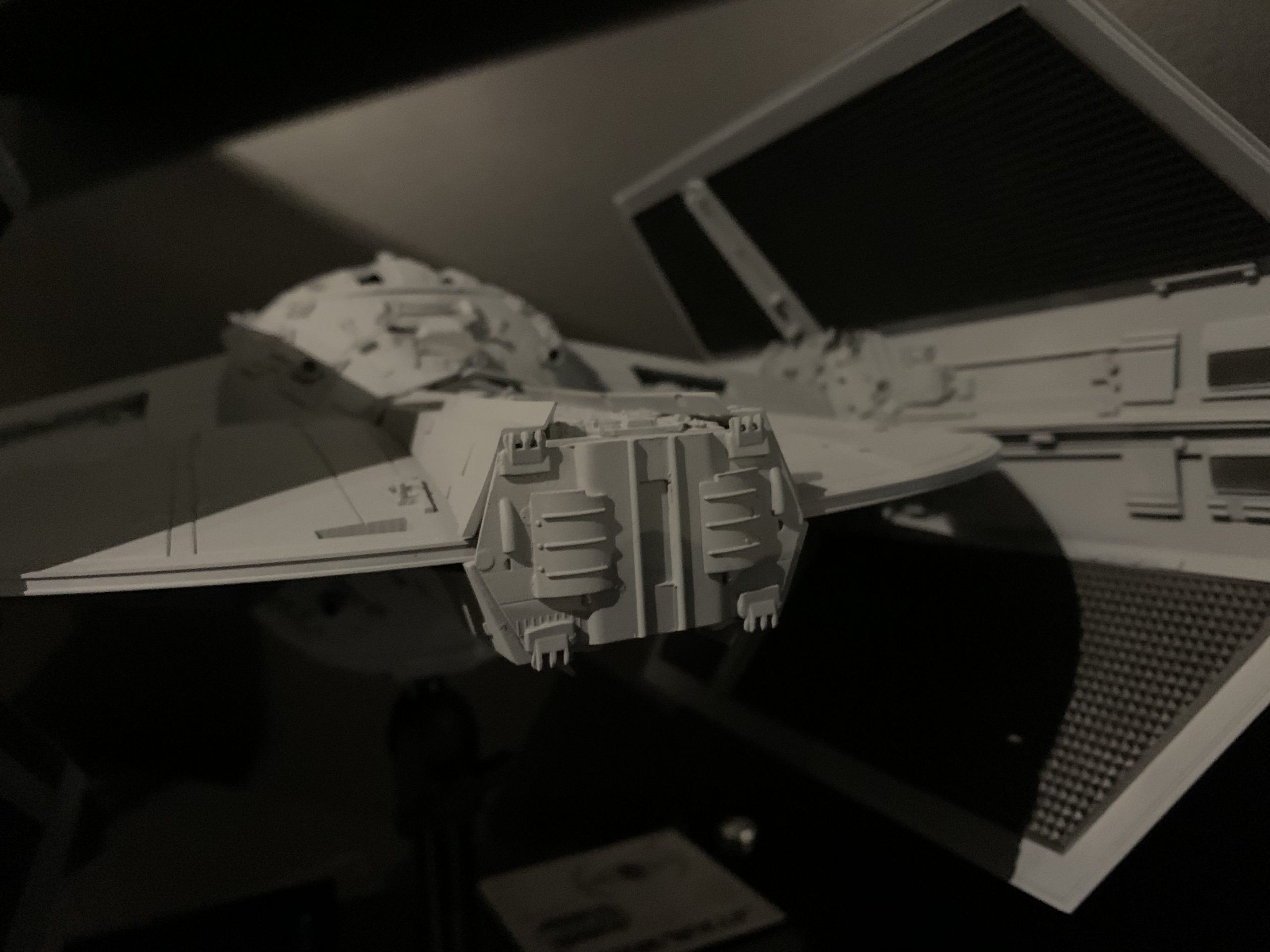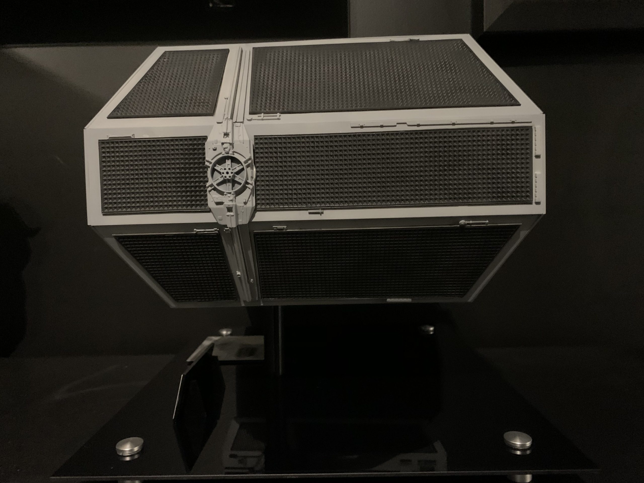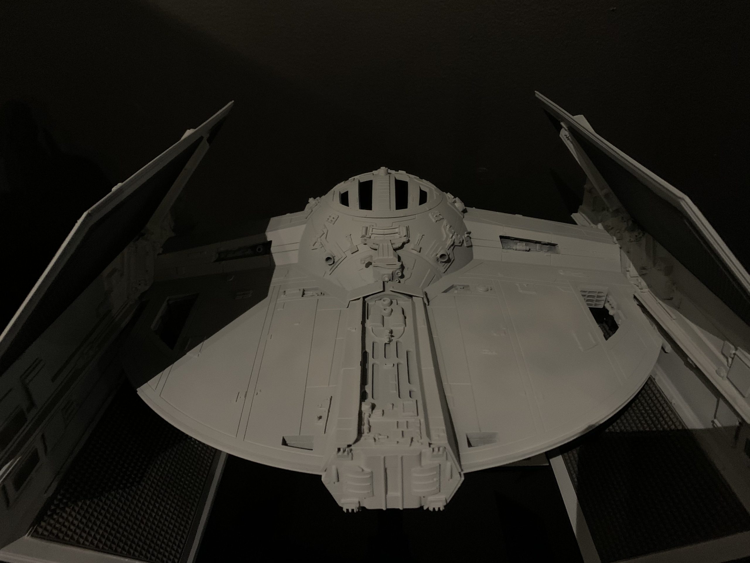 This is the Nice-N Model Designs Tie Advanced studio scale model. It was a straight up build with pretty much zero weathering. I could not see any wear/tear in any of the images I saw so it was difficult to resist going crazy weathering it. Painted with Vallejo Air paints, had some custom plaques and display case made up to give it that museum look.