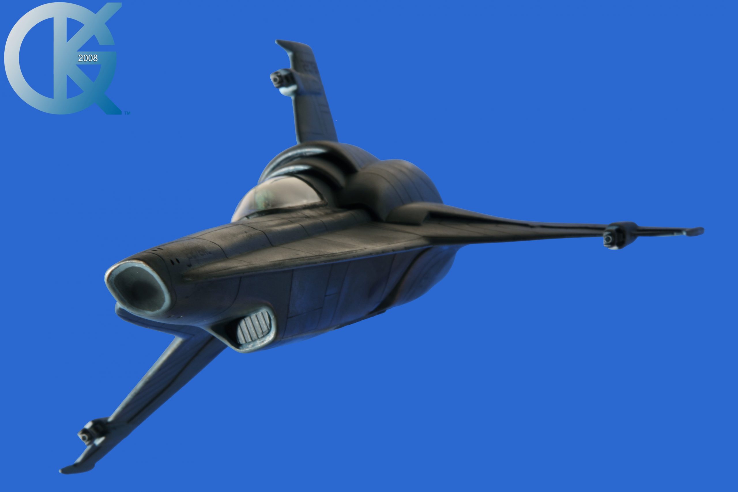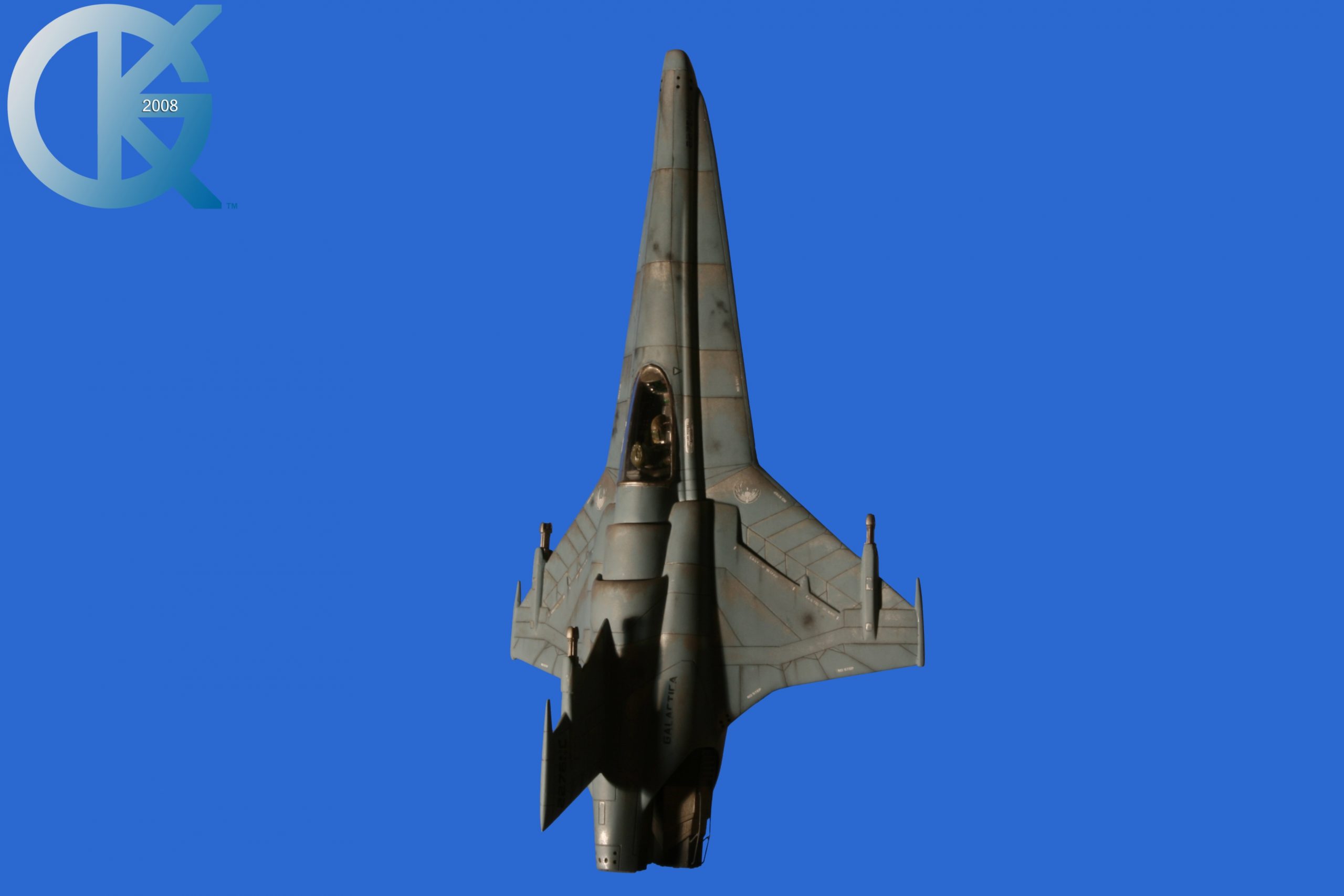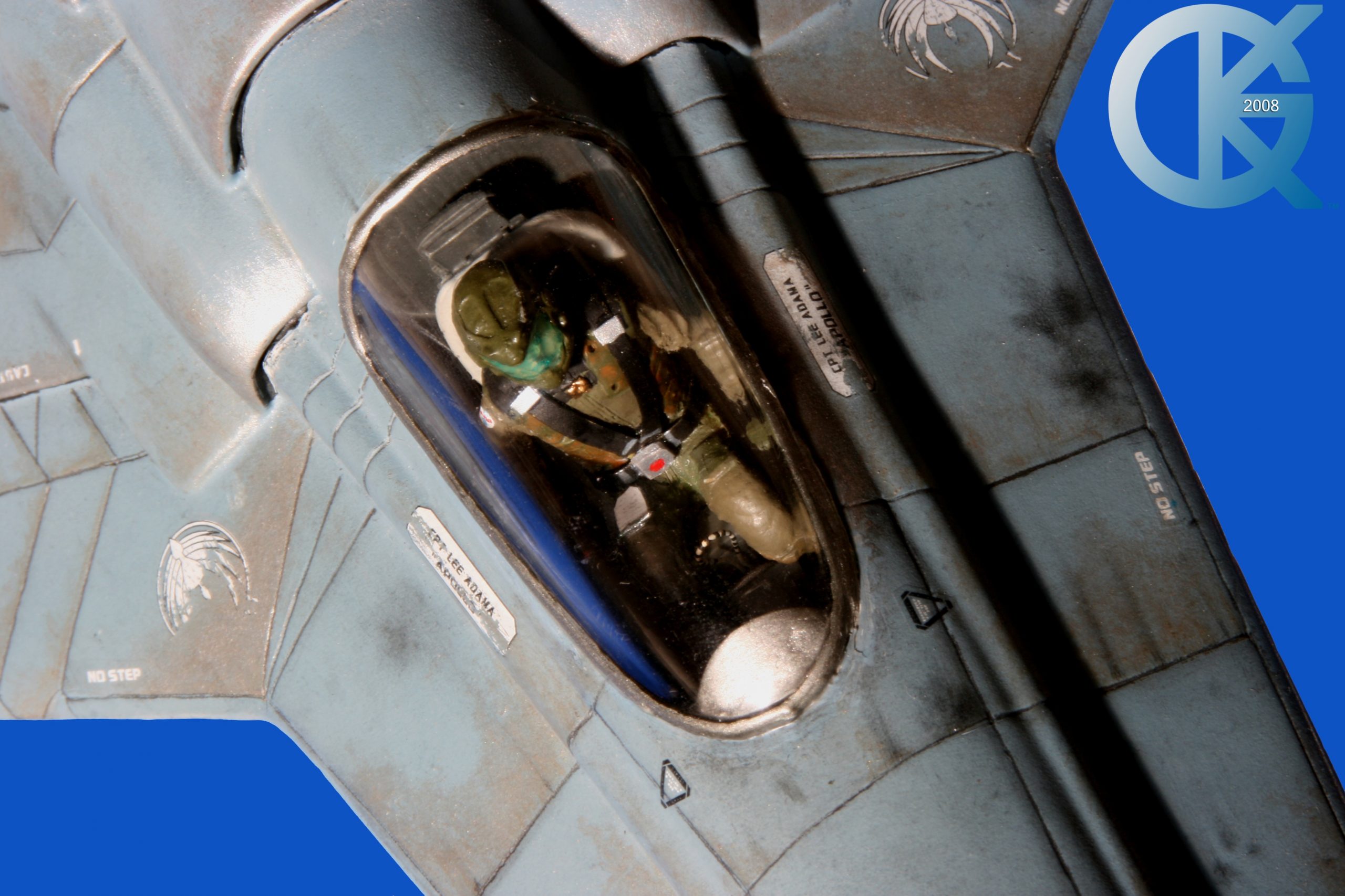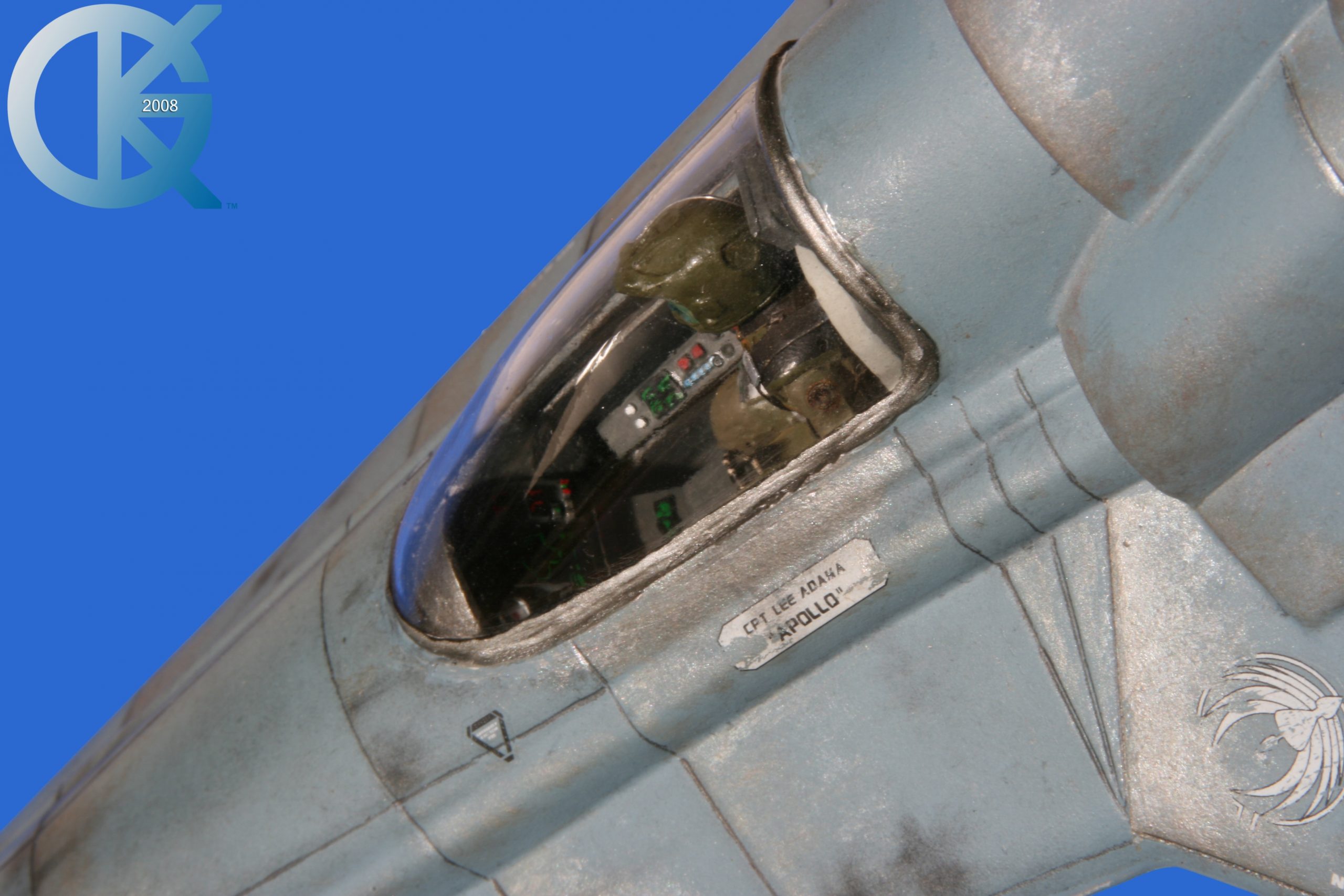 The 2003 Ron Moore reboot of Battlestar Galactica took us into a completely different imagined arena of the already fantastic 1978 Glen Larson television show and 1979 film. With this re-imagining came new designs of the ships we all loved. One of those models was from the conceptual art of Eric Chu, then digitally made by the artists at ZOIC, many of whom are very known, and shown here on Modeler Magic. The model shown here today is of the Mk7 Colonial Viper design, and to my knowledge was the first Garage Kit made of it. It is 1:32 and was built up by artist Chris Dobinson. It is beautiful with it’s detailing and weathering. Chris even managed to make the tiny pilot helmet look as if it were lit, when it is not.