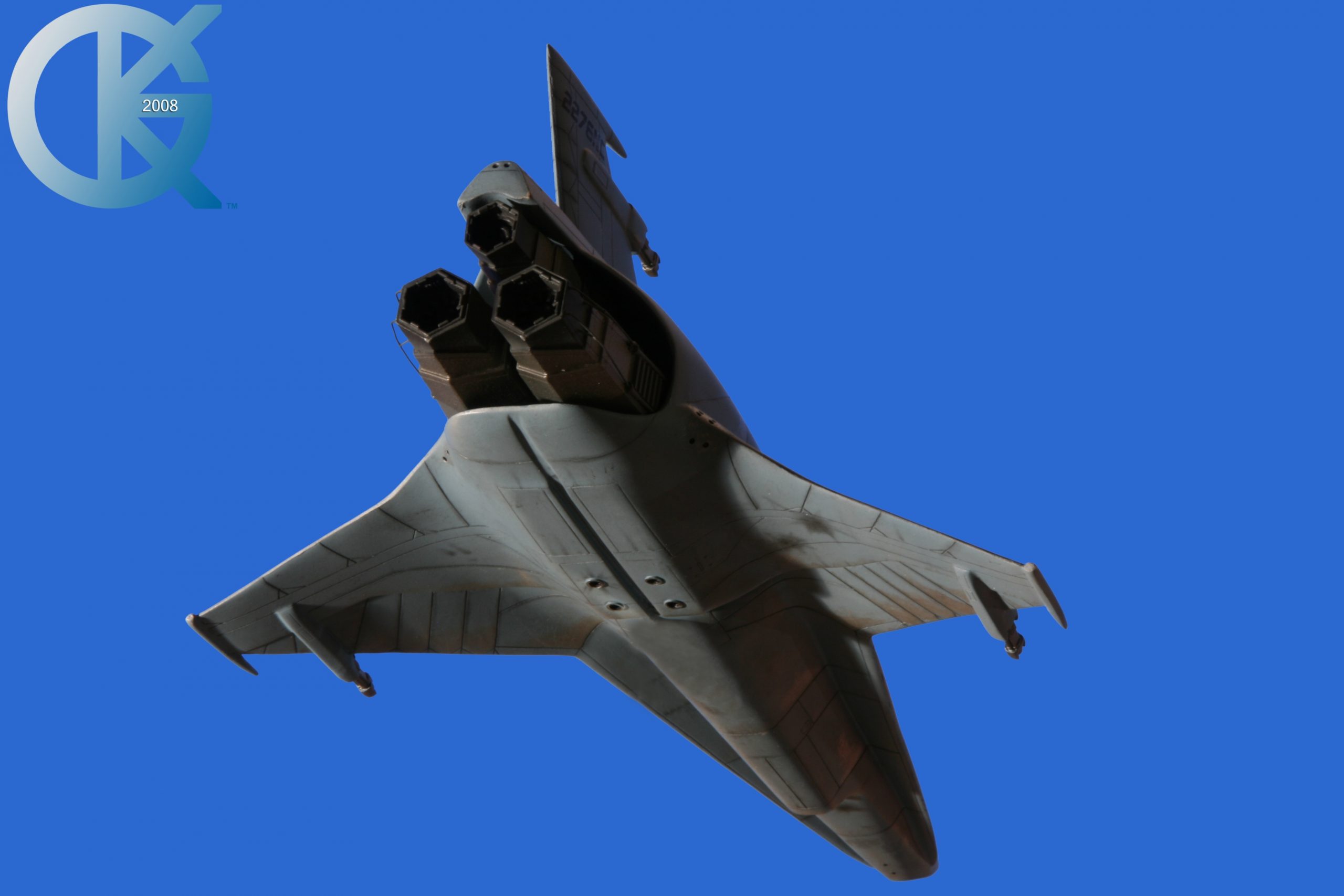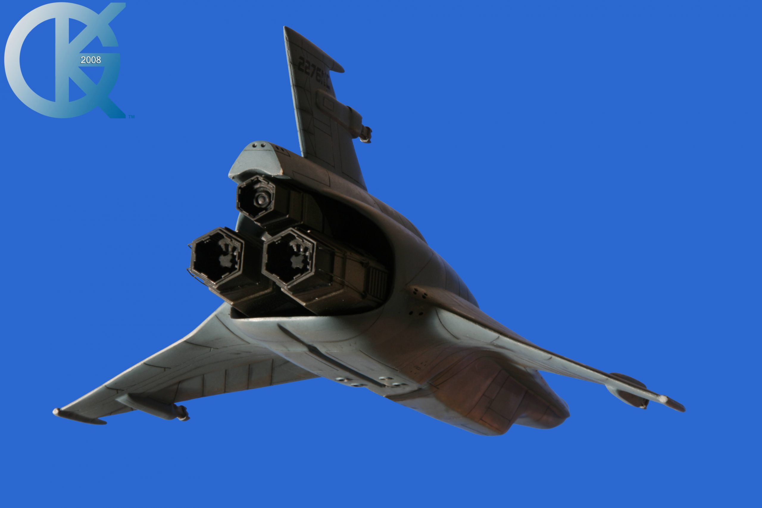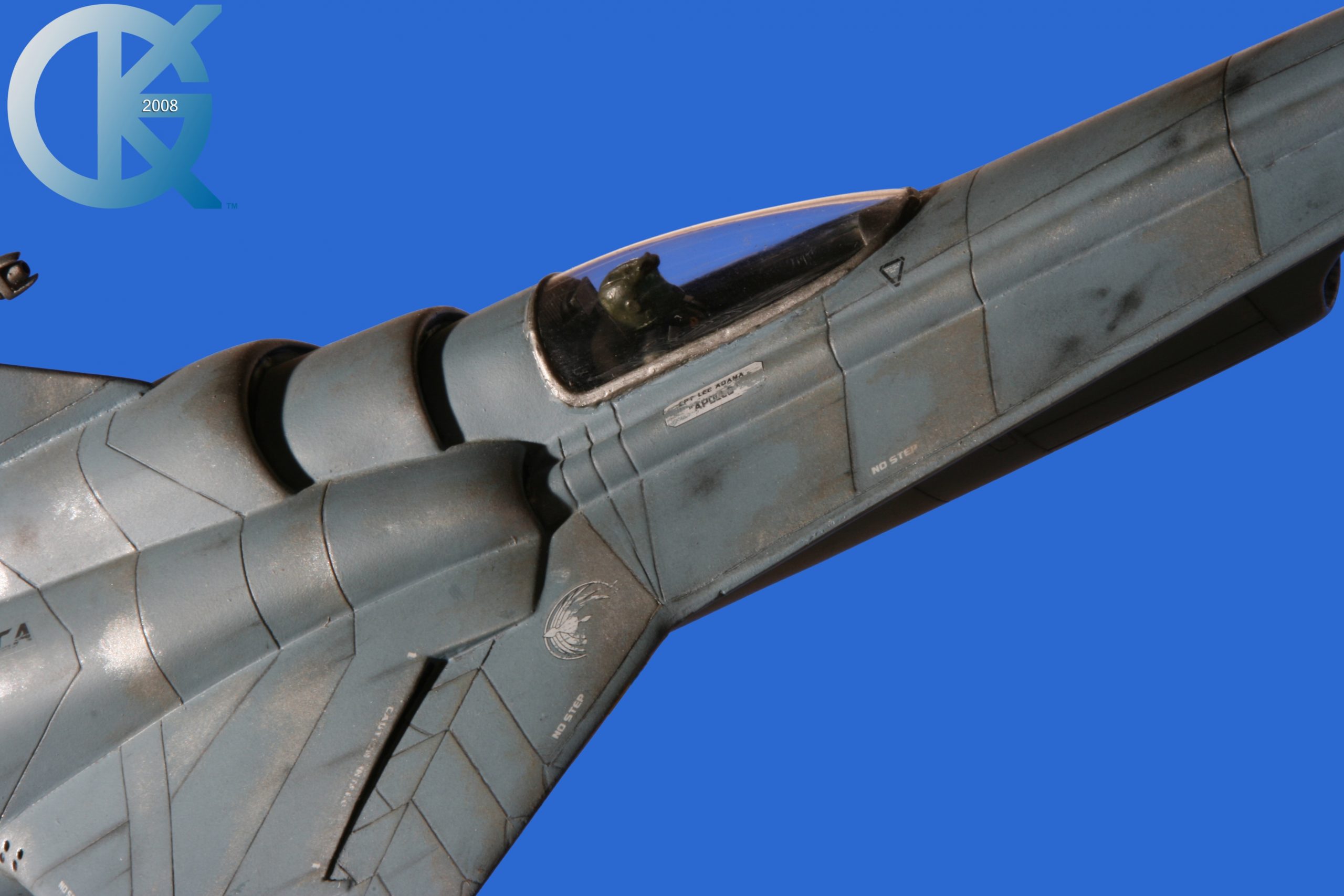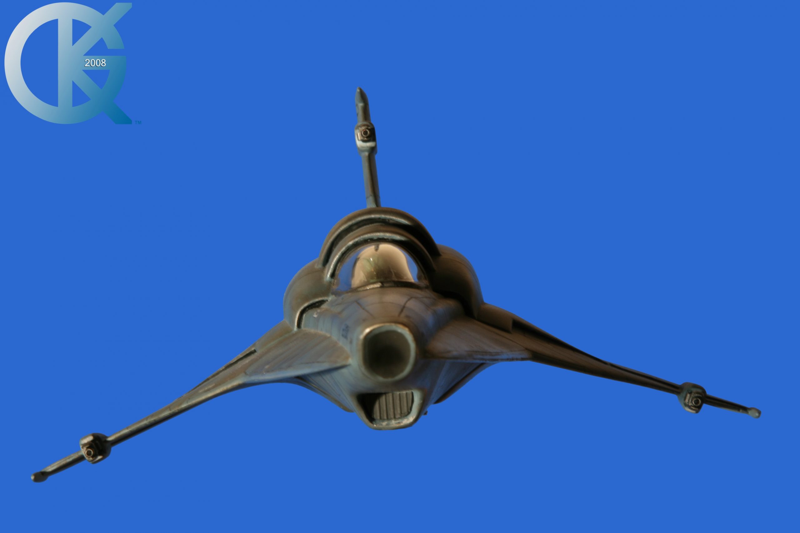 The 2003 Ron Moore reboot of Battlestar Galactica took us into a completely different imagined arena of the already fantastic 1978 Glen Larson television show and 1979 film. With this re-imagining came new designs of the ships we all loved. One of those models was from the conceptual art of Eric Chu, then digitally made by the artists at ZOIC, many of whom are very known, and shown here on Modeler Magic. The model shown here today is of the Mk7 Colonial Viper design, and to my knowledge was the first Garage Kit made of it. It is 1:32 and was built up by artist Chris Dobinson. It is beautiful with it’s detailing and weathering. Chris even managed to make the tiny pilot helmet look as if it were lit, when it is not.