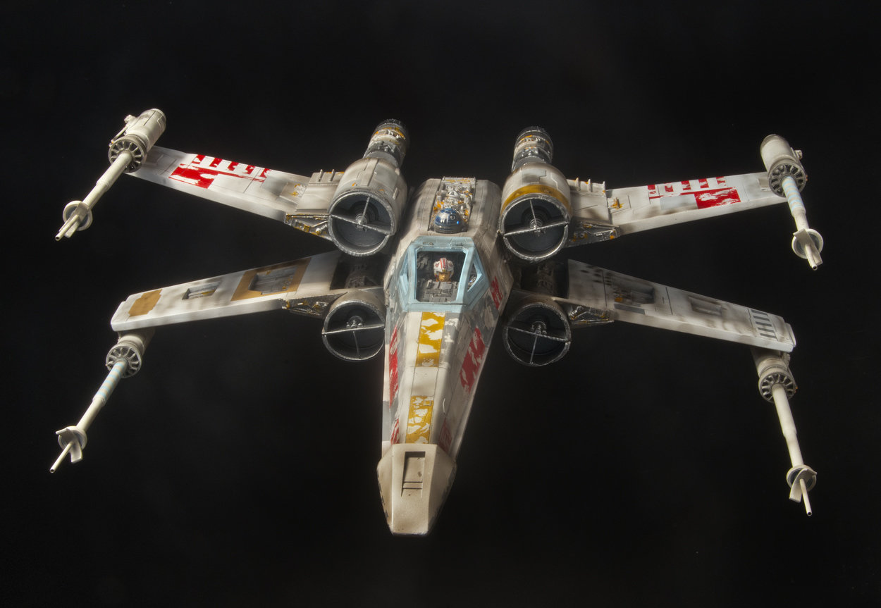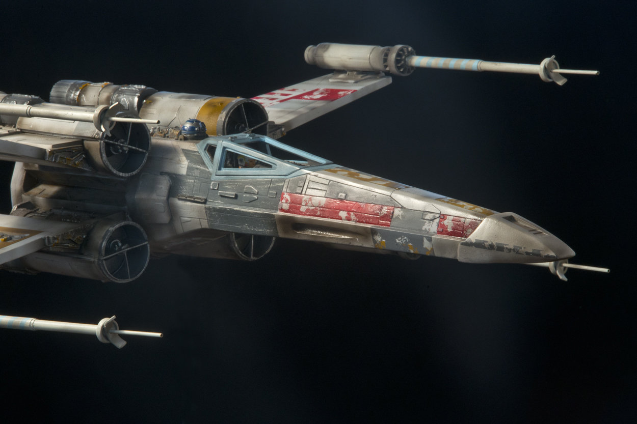 This is my X Wing rebuild. There are already a few photos of this model back from 2009 under my name on Modeler Magic (SEEN HERE), but…..sadly over a rather hot summer about 8 years ago and during a house mode, my pride and joy X-Wing got left in a too hot place for a few months. When I finally got around to sorting out my models, both lower wings were drooping like a hound dog’s. Both upper wings had sever warping. Then body was still intact. Needless to say I was heartbroken and then got really angry. I pulled all the wings off and put the lot into a black back destined for the rubbish. Fortunately it never made it to the rubbish. It all ended up in the bottom of a drawer.
