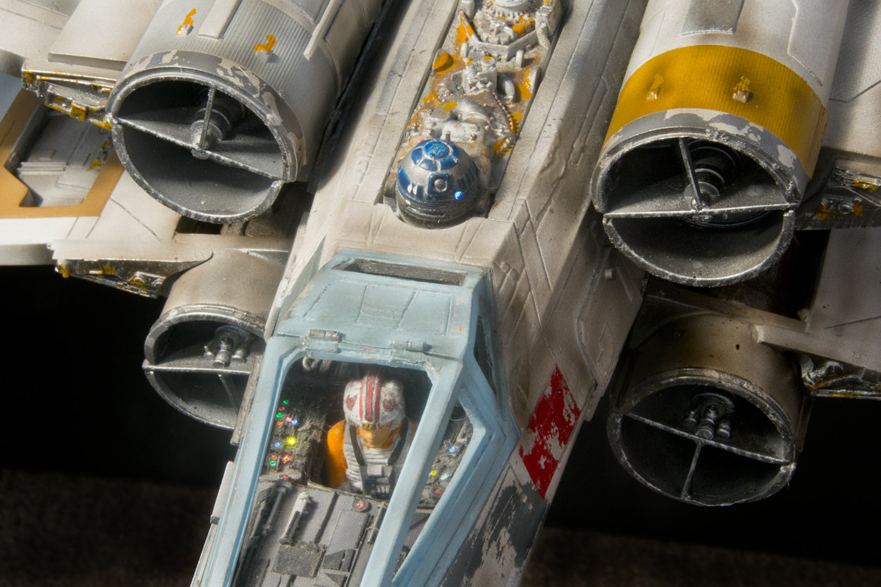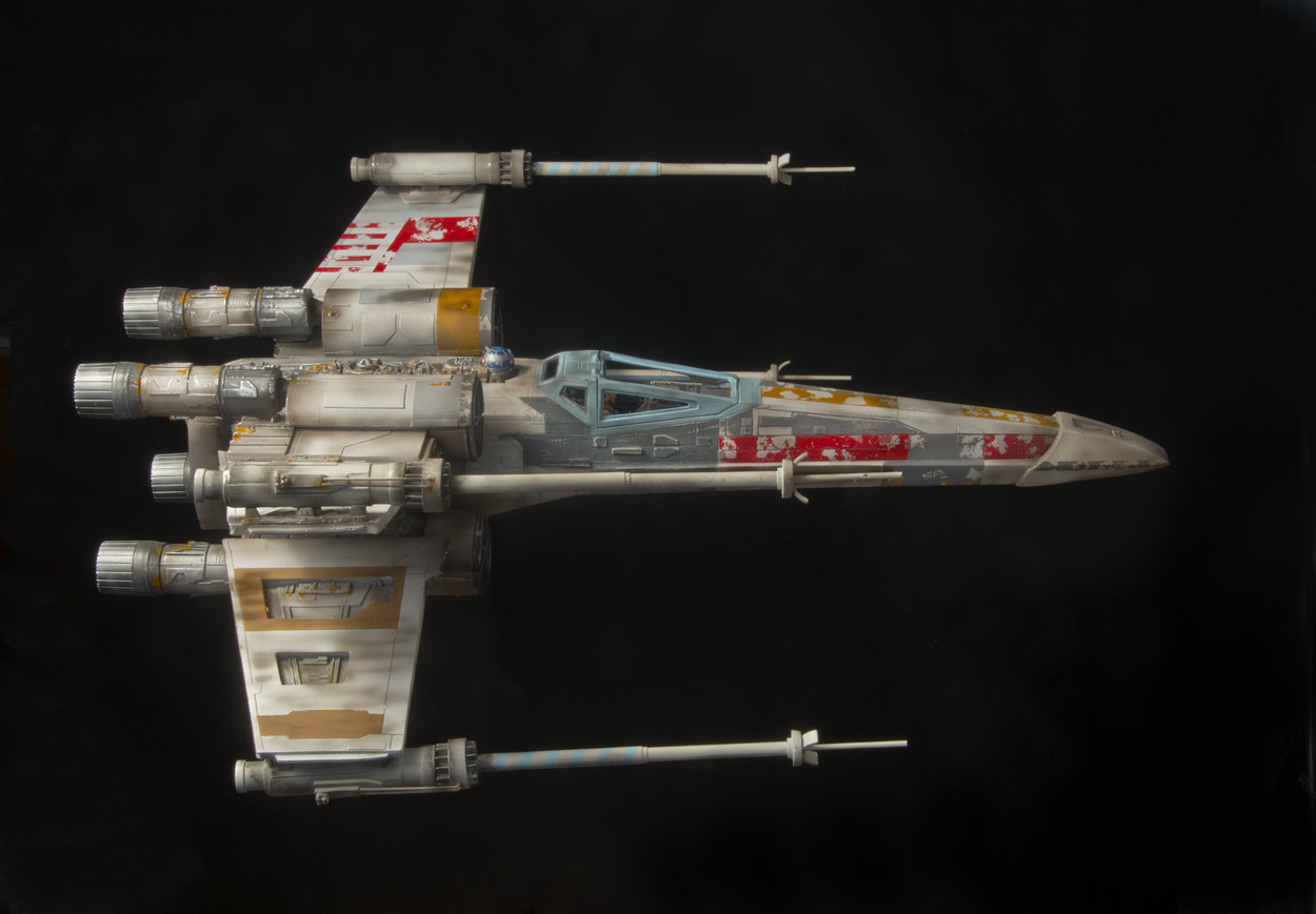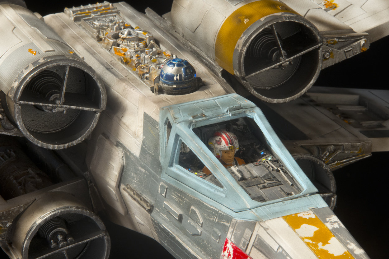 Cut to the most recent Star Wars film 9 The Rise of Skywalker. I saw it just before last Christmas. The scene which moved me the most was when Luke raised his original X-Wing from the sea for Rey to use. That gave me hope for mine. I figured if Luke could raise his, I could resurrect mine. So I immediately sought advice into correcting the droops and warps. Using a too hot oven and with a lot of luck I managed to straightened the wings. So I stripped the entire model and started over. I re-lit the engines (the fiber optic lit cockpit had survived the ordeal fortunately) and set about rebuilding, re-priming and repainting it. So I present to you my resurrected X Wing – a Mike Salzo V2 kit. Personally I love it and am so glad I didn’t act on impulse and bin it.