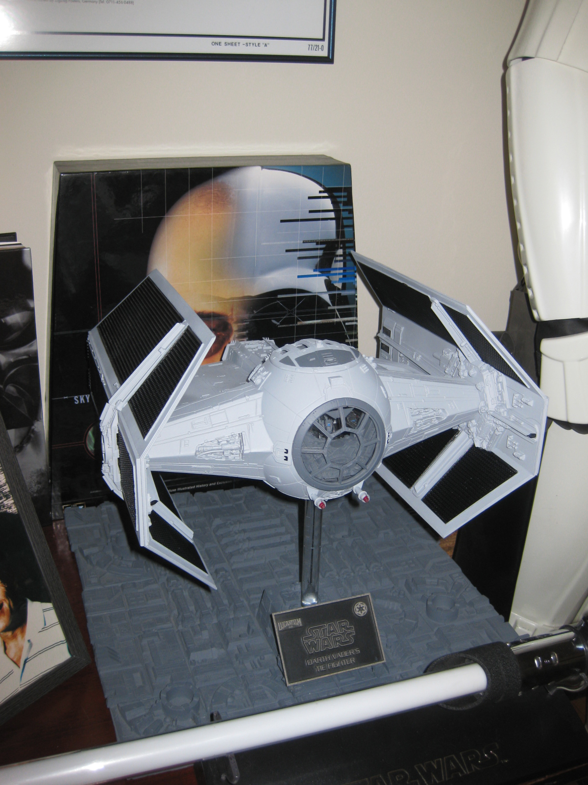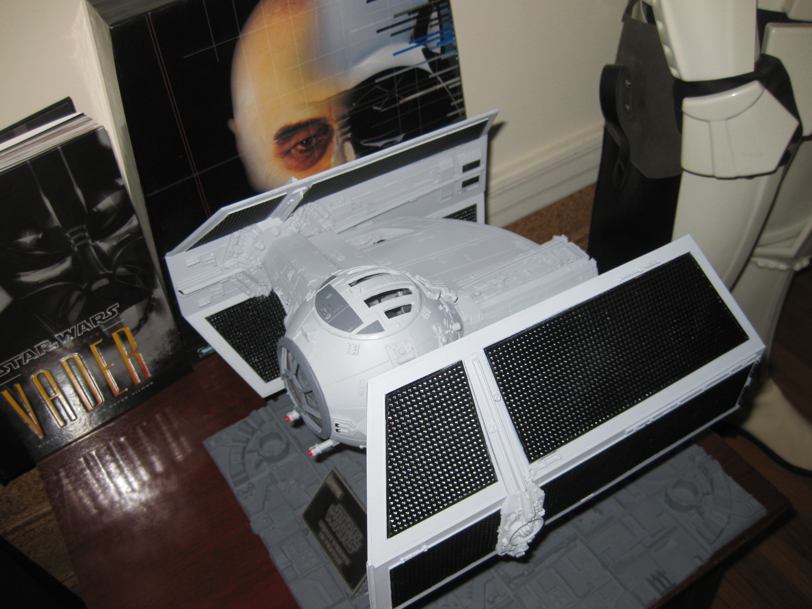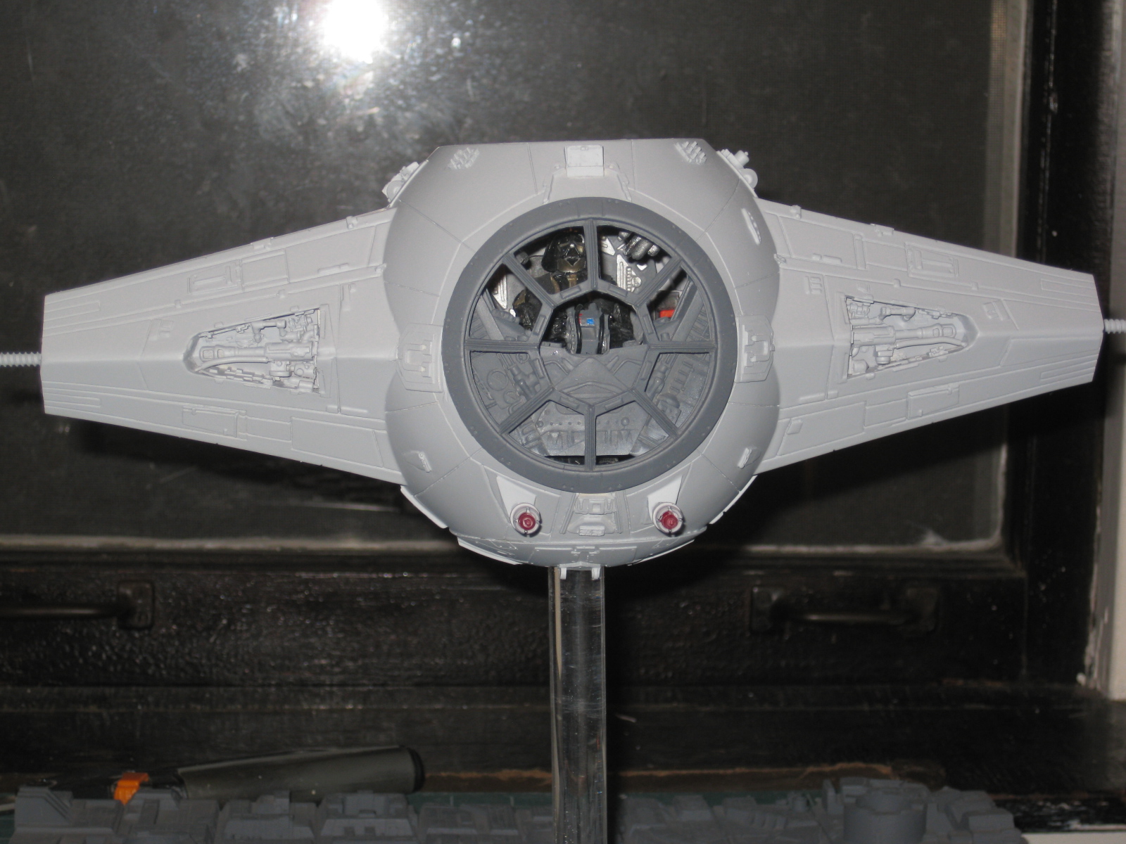 Artist Jerry Valsilatos returns with this fantastic build of the newest incarnation of the studio scale TIE X-1 that Chris Kelley patterned. This piece is beautiful with all the interior lighting that Jerry placed in it! And… he offers his services to build!! These kits are now OUT OF PRODUCTION! Beautiful work!