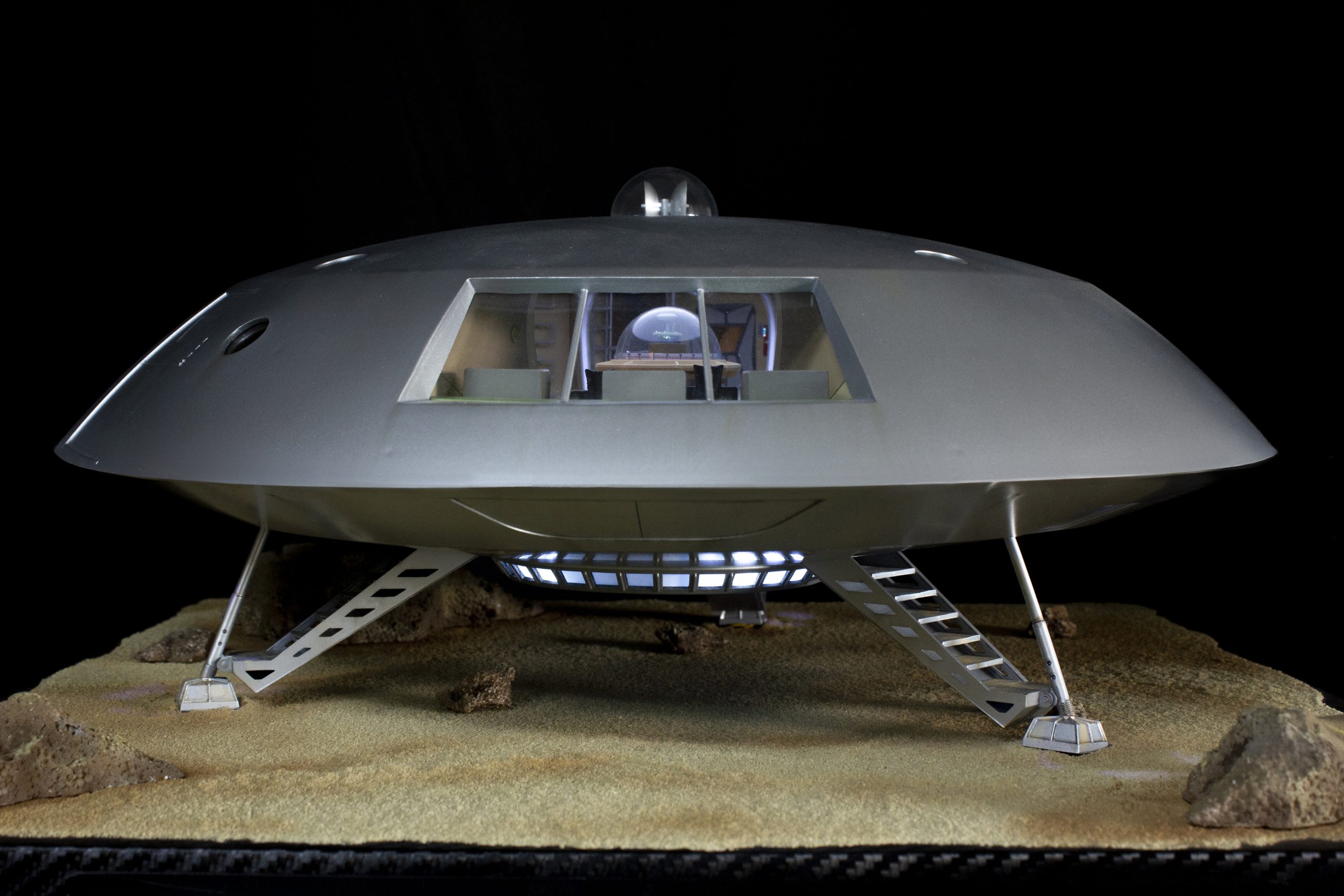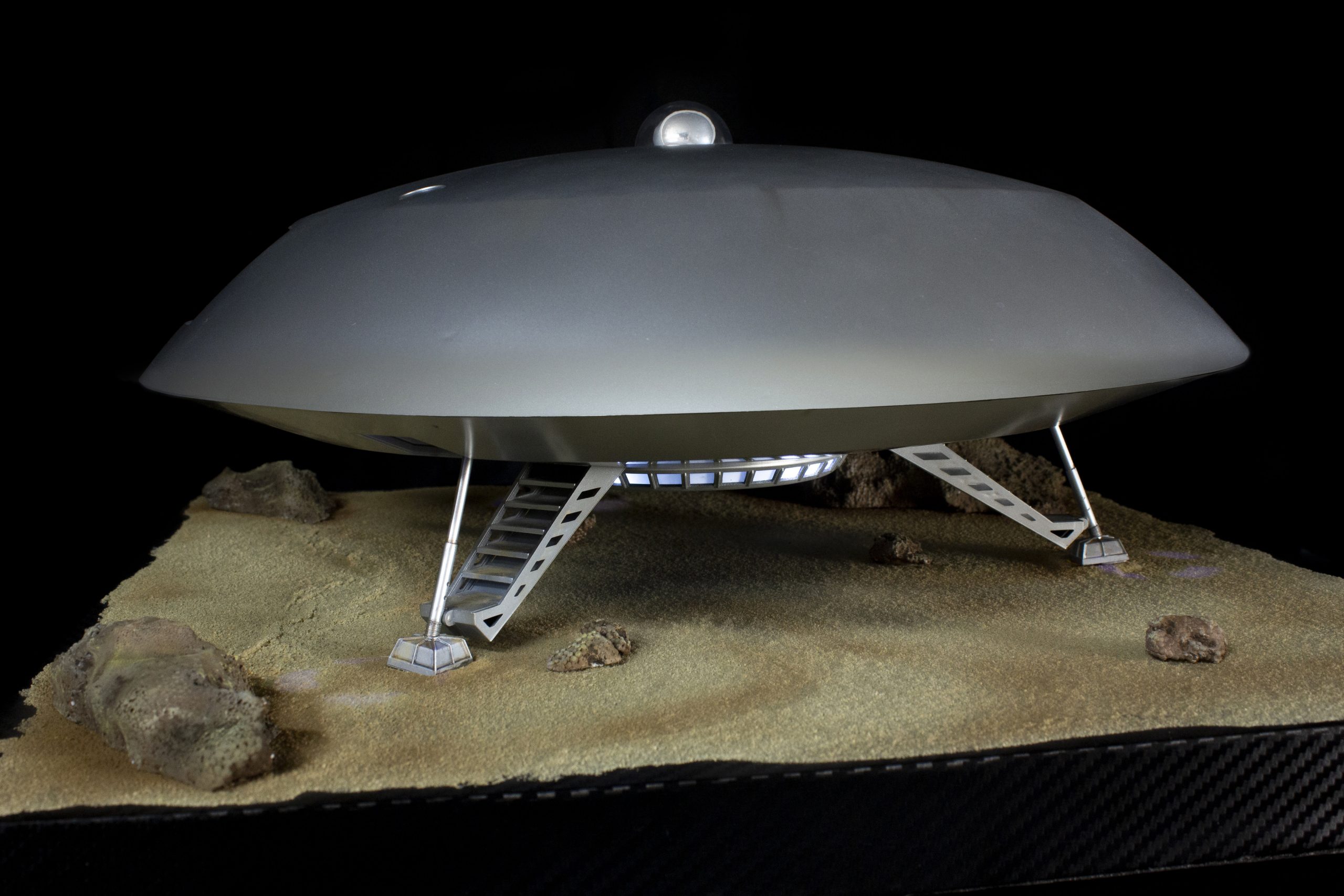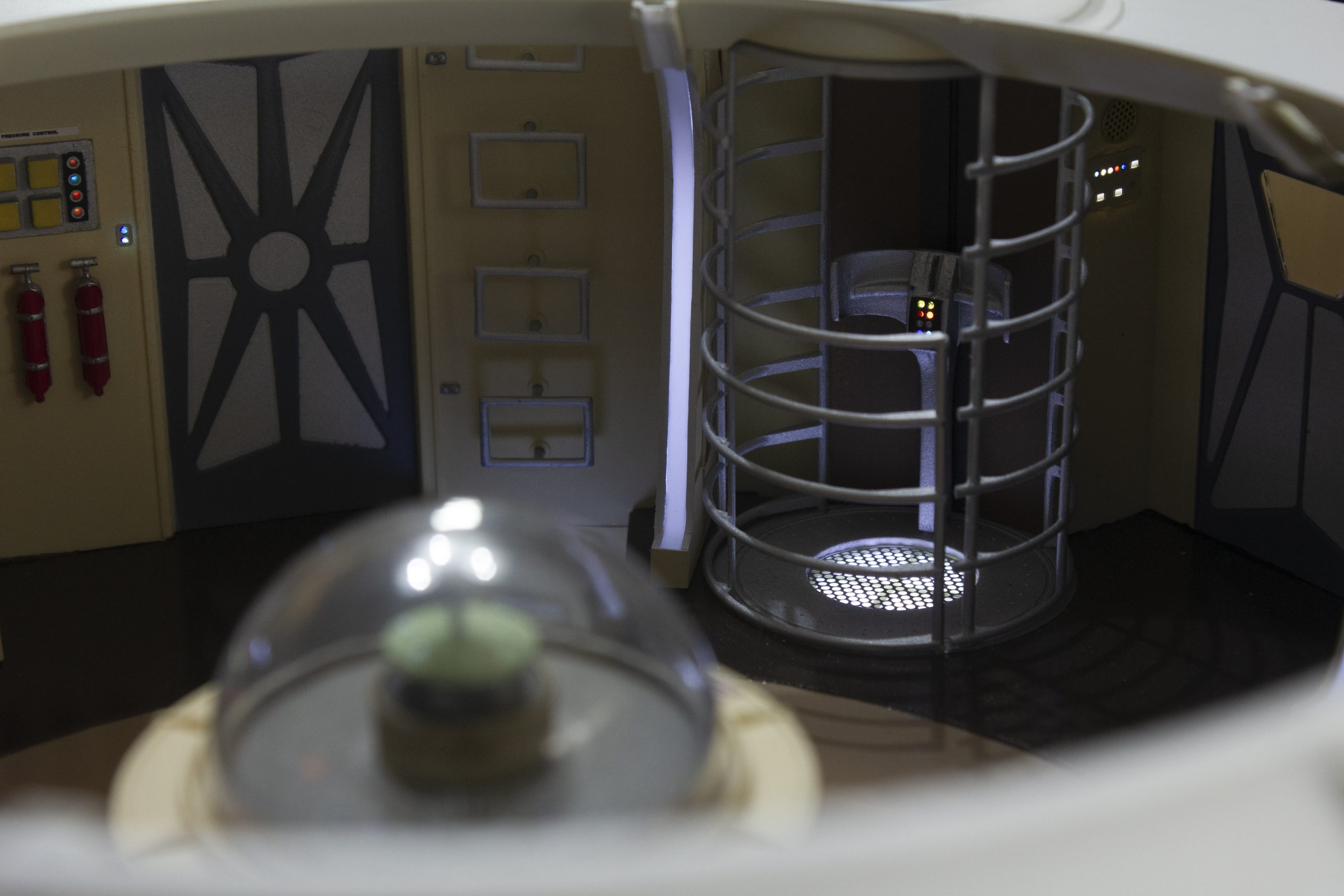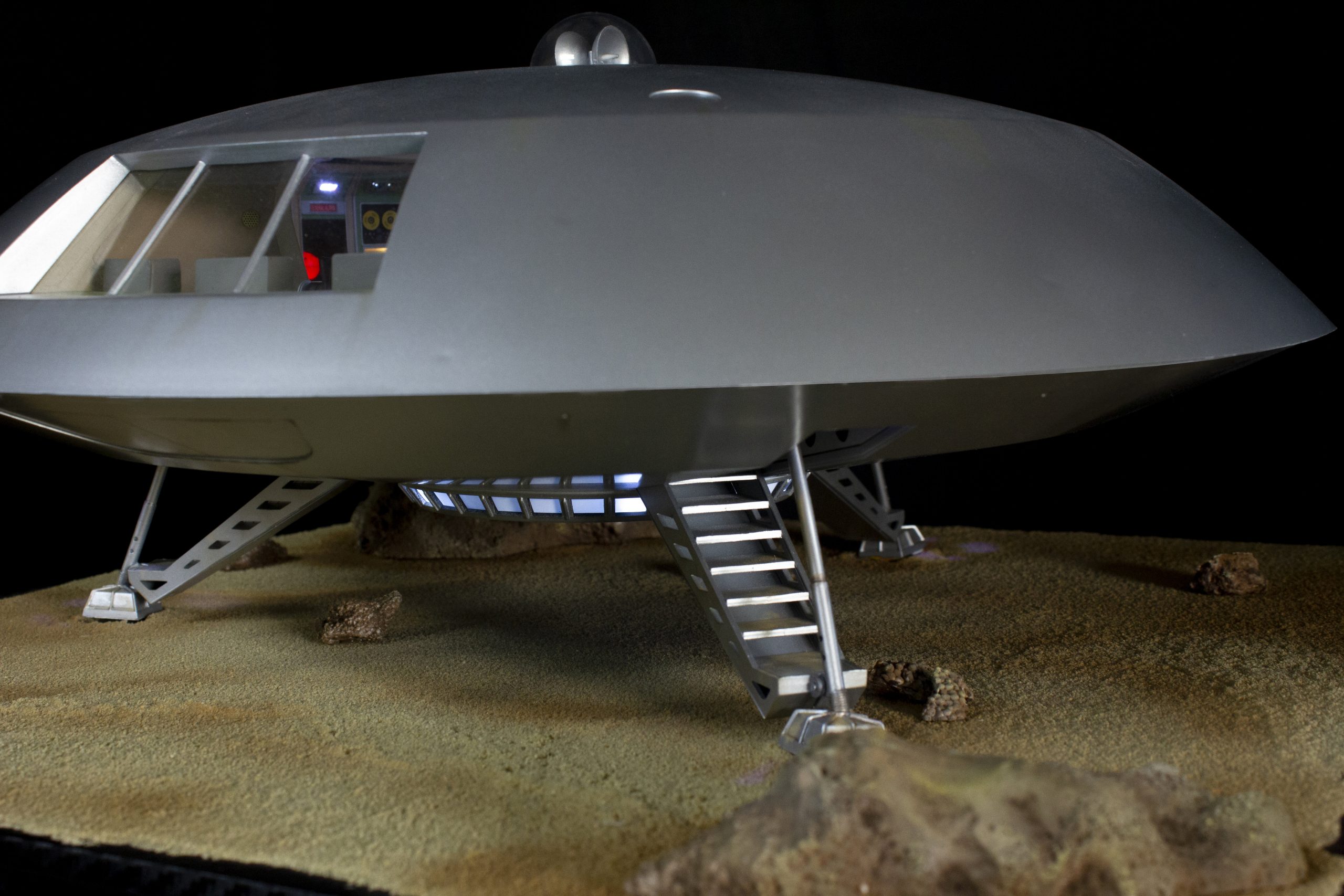 My build of the Moebius Models Jupiter 2 from “Lost In Space”. It took me 6 months to build. I loaded it with over 200 LEDs, 1000 ft of fiber, 2 3v motors, a 5″ round electro-luminescent panel, Arduino Trinket control, sound board and other electronics in the custom built base. This has been the most complex build I’ve done to date. An amazing kit that turned out beautiful after all of the hard work put into it. Gonna be sad to see it leave and go to it’s new home.