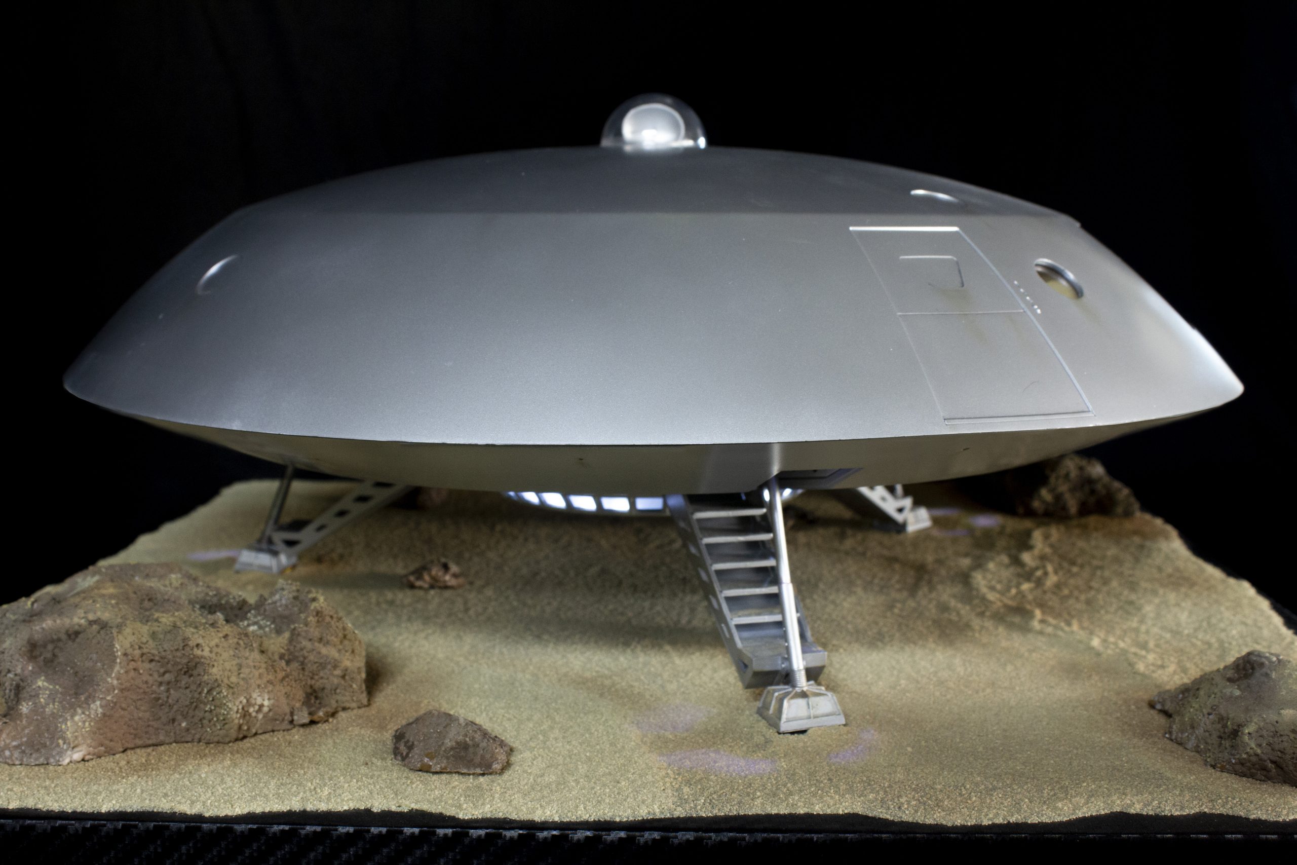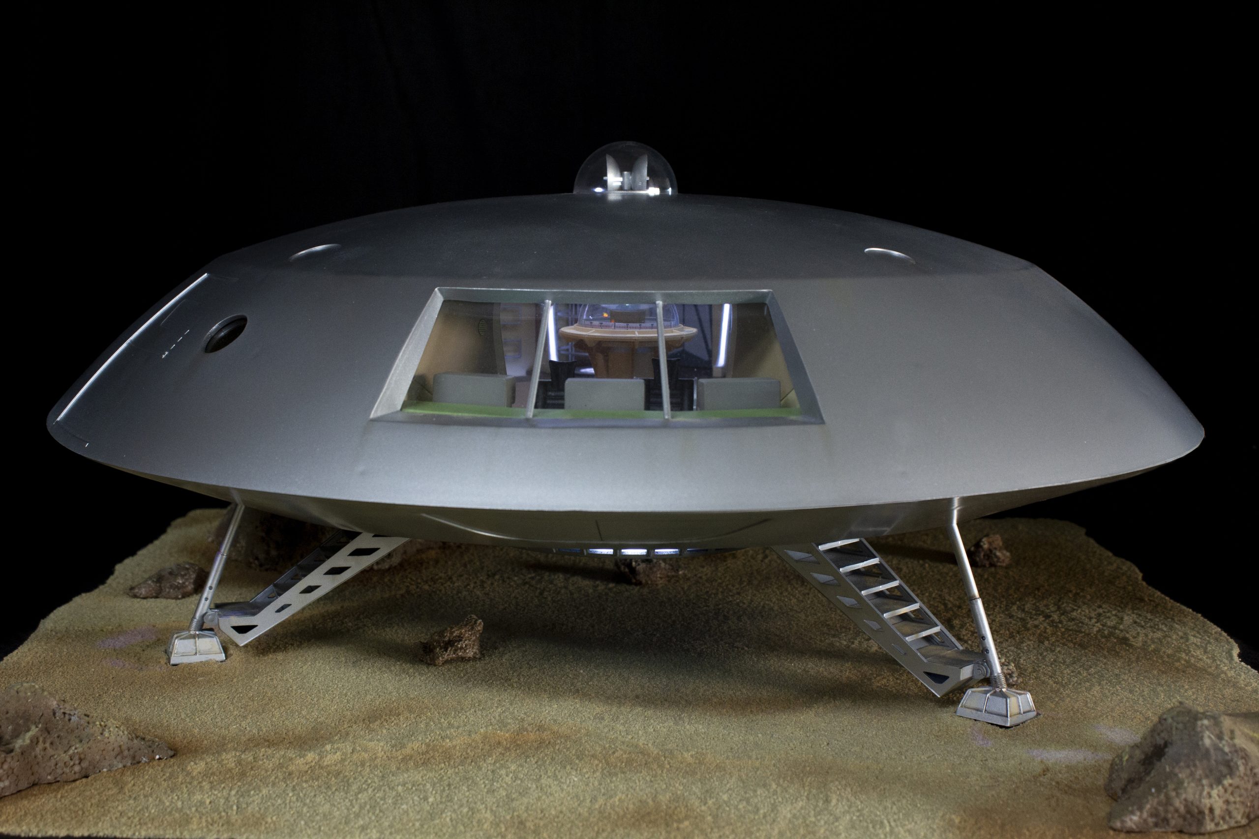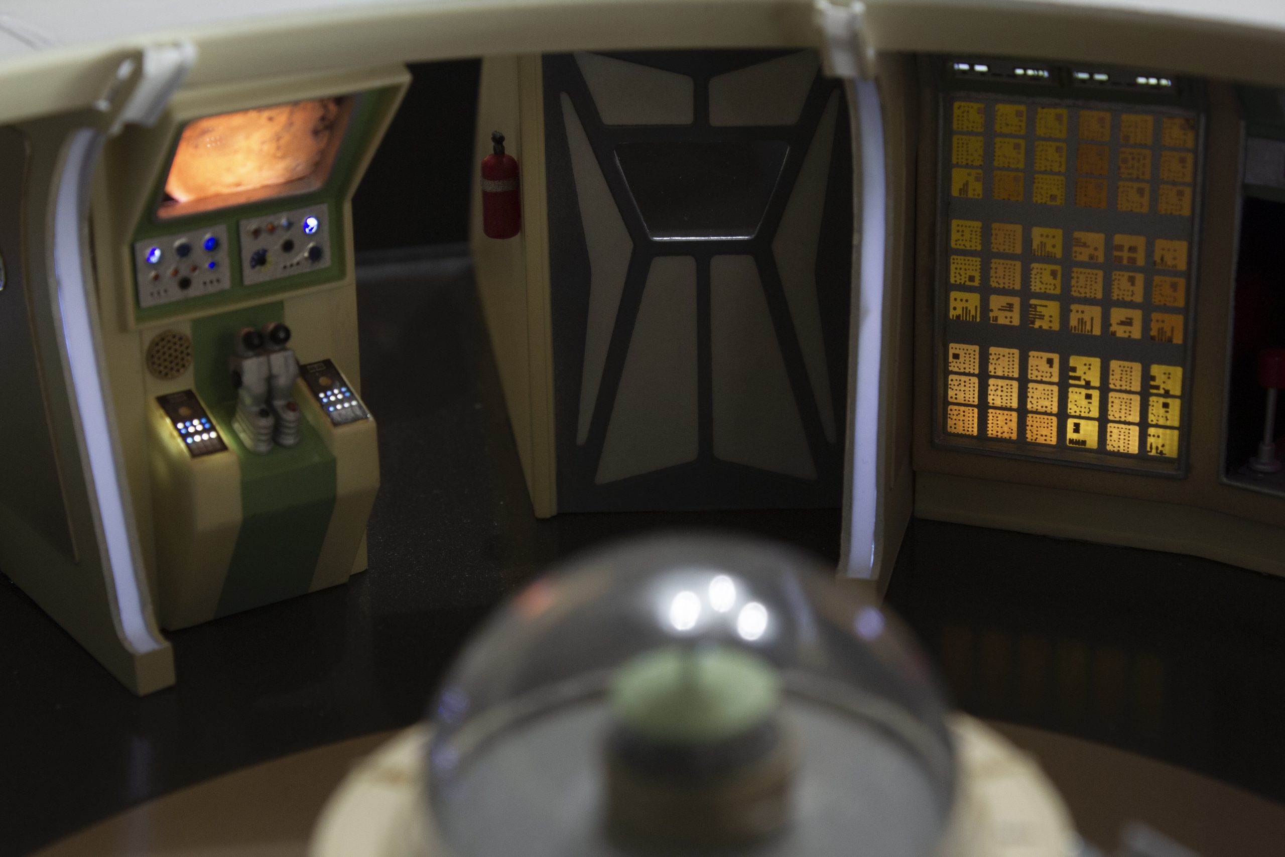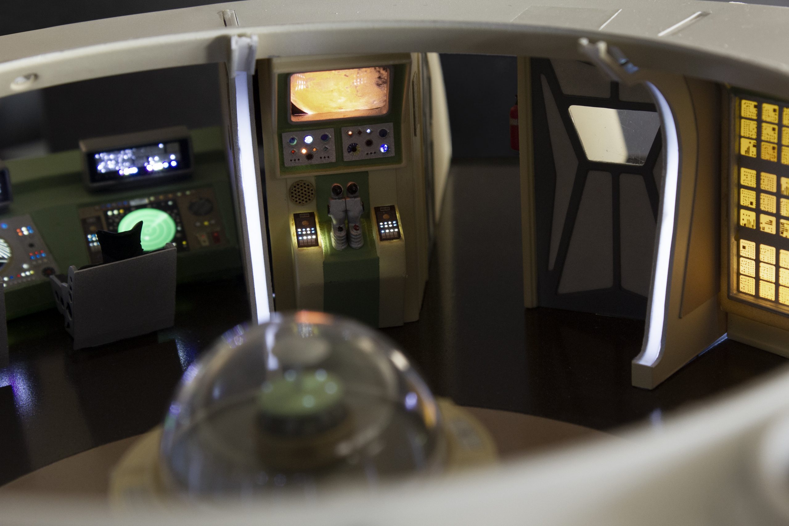 My build of the Moebius Models Jupiter 2 from “Lost In Space”. It took me 6 months to build. I loaded it with over 200 LEDs, 1000 ft of fiber, 2 3v motors, a 5″ round electro-luminescent panel, Arduino Trinket control, sound board and other electronics in the custom built base. This has been the most complex build I’ve done to date. An amazing kit that turned out beautiful after all of the hard work put into it. Gonna be sad to see it leave and go to it’s new home.