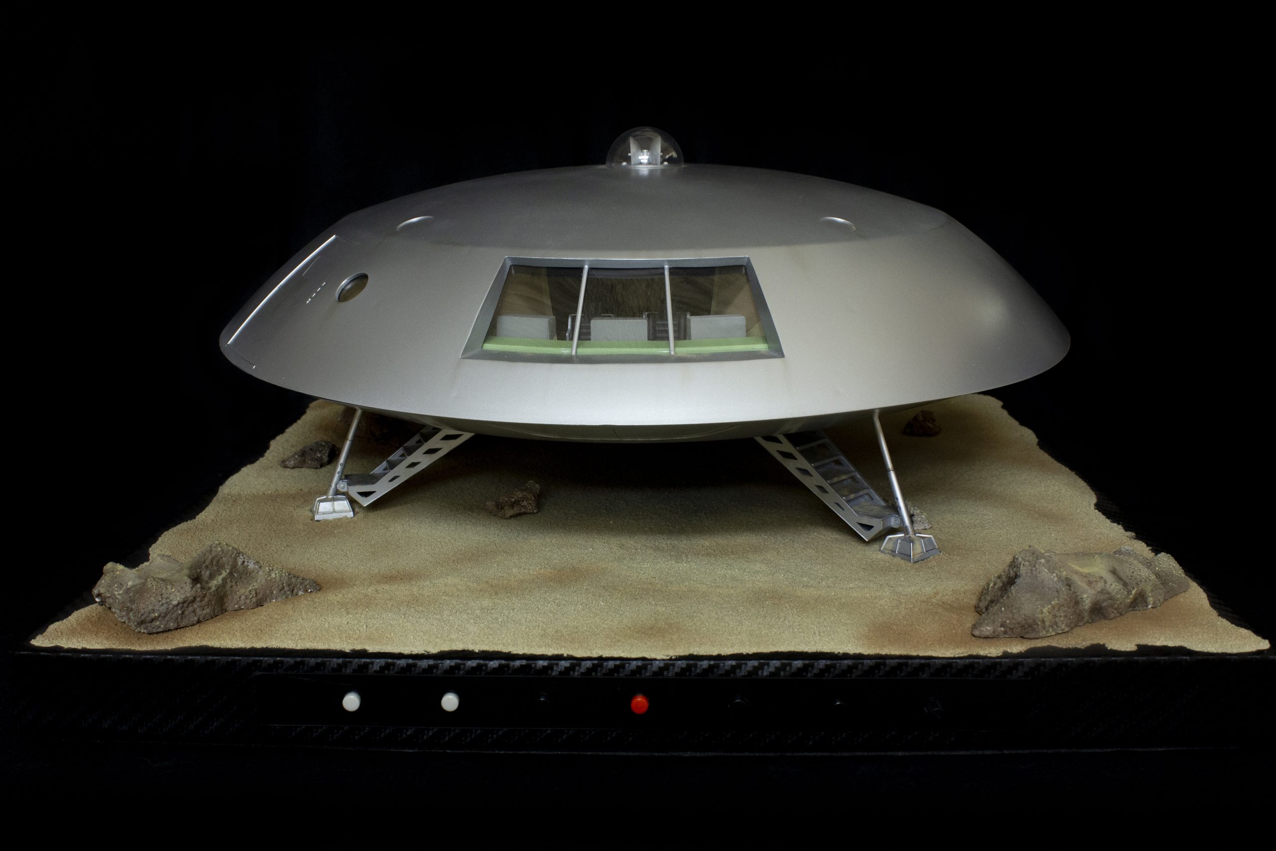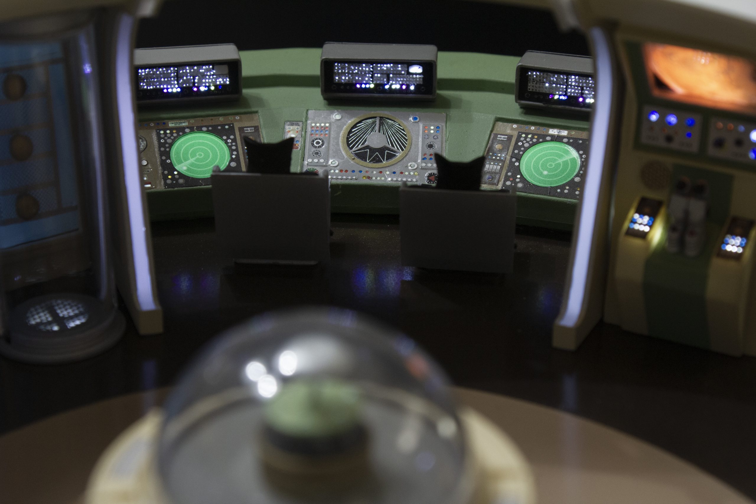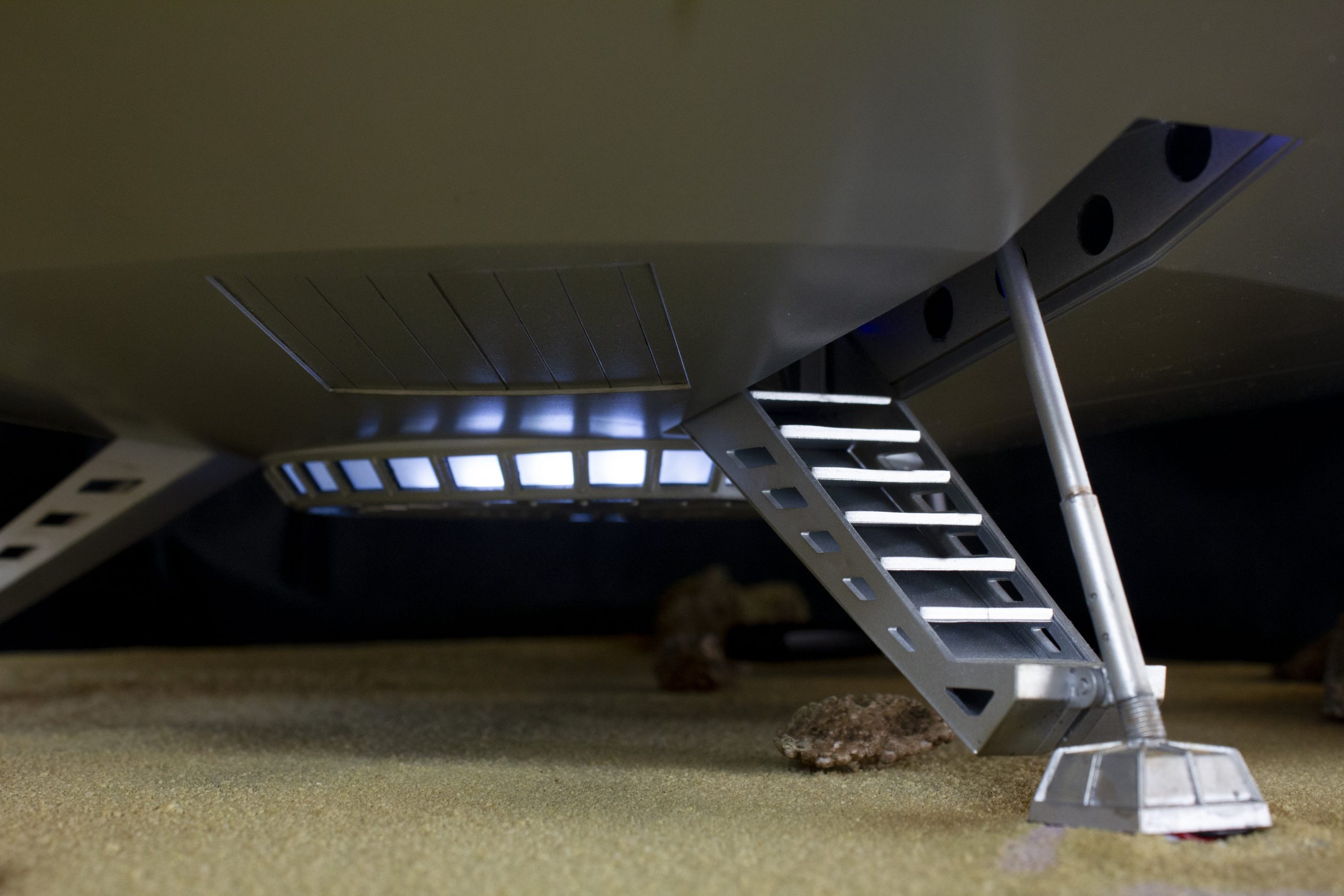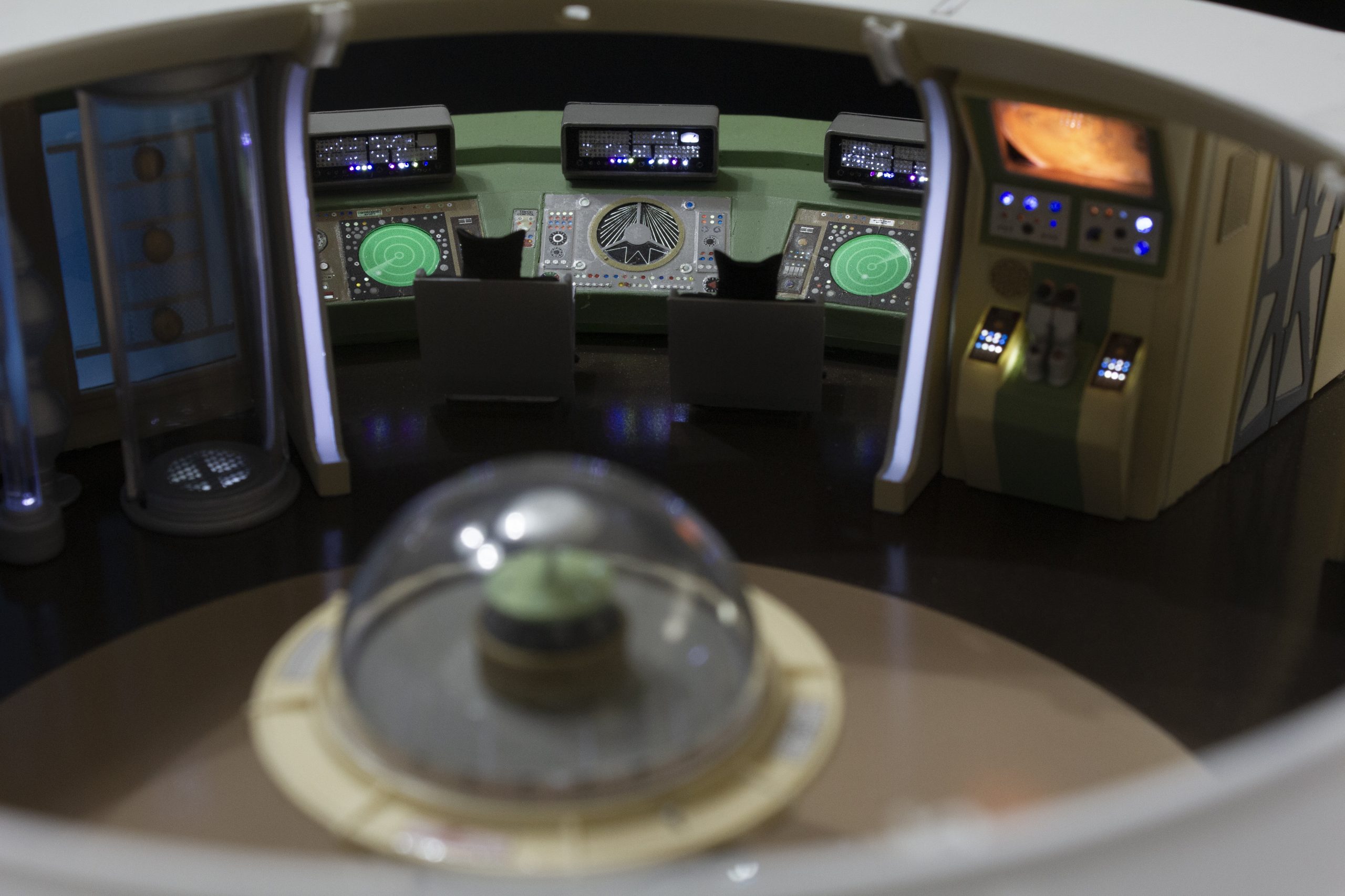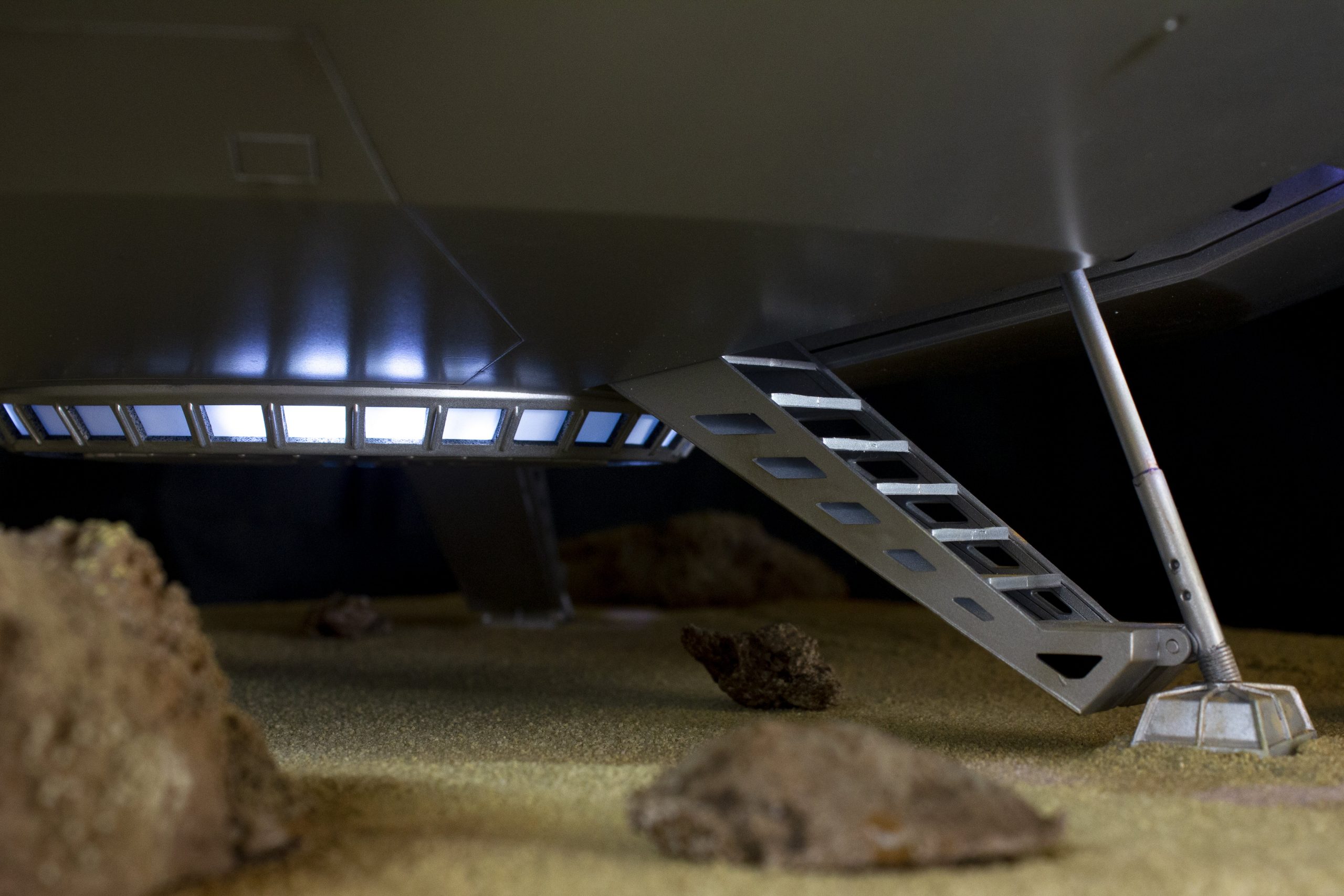 My build of the Moebius Models Jupiter 2 from “Lost In Space”. It took me 6 months to build. I loaded it with over 200 LEDs, 1000 ft of fiber, 2 3v motors, a 5″ round electro-luminescent panel, Arduino Trinket control, sound board and other electronics in the custom built base. This has been the most complex build I’ve done to date. An amazing kit that turned out beautiful after all of the hard work put into it. Gonna be sad to see it leave and go to it’s new home.