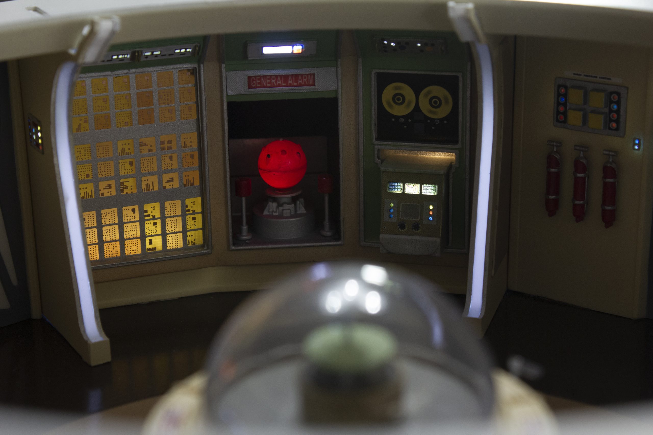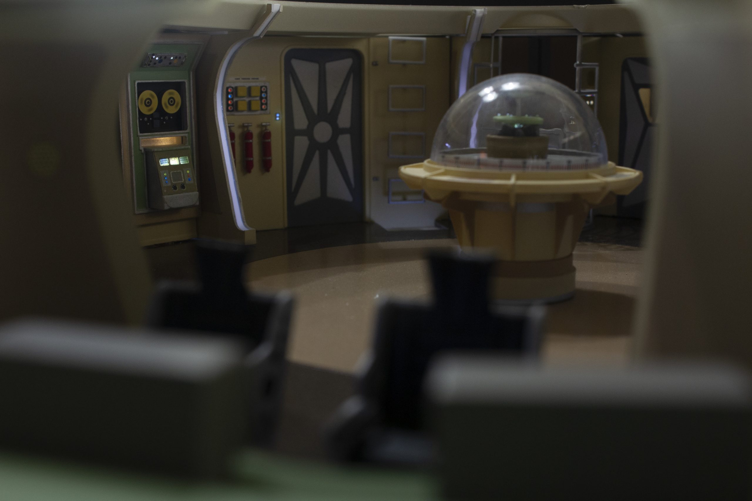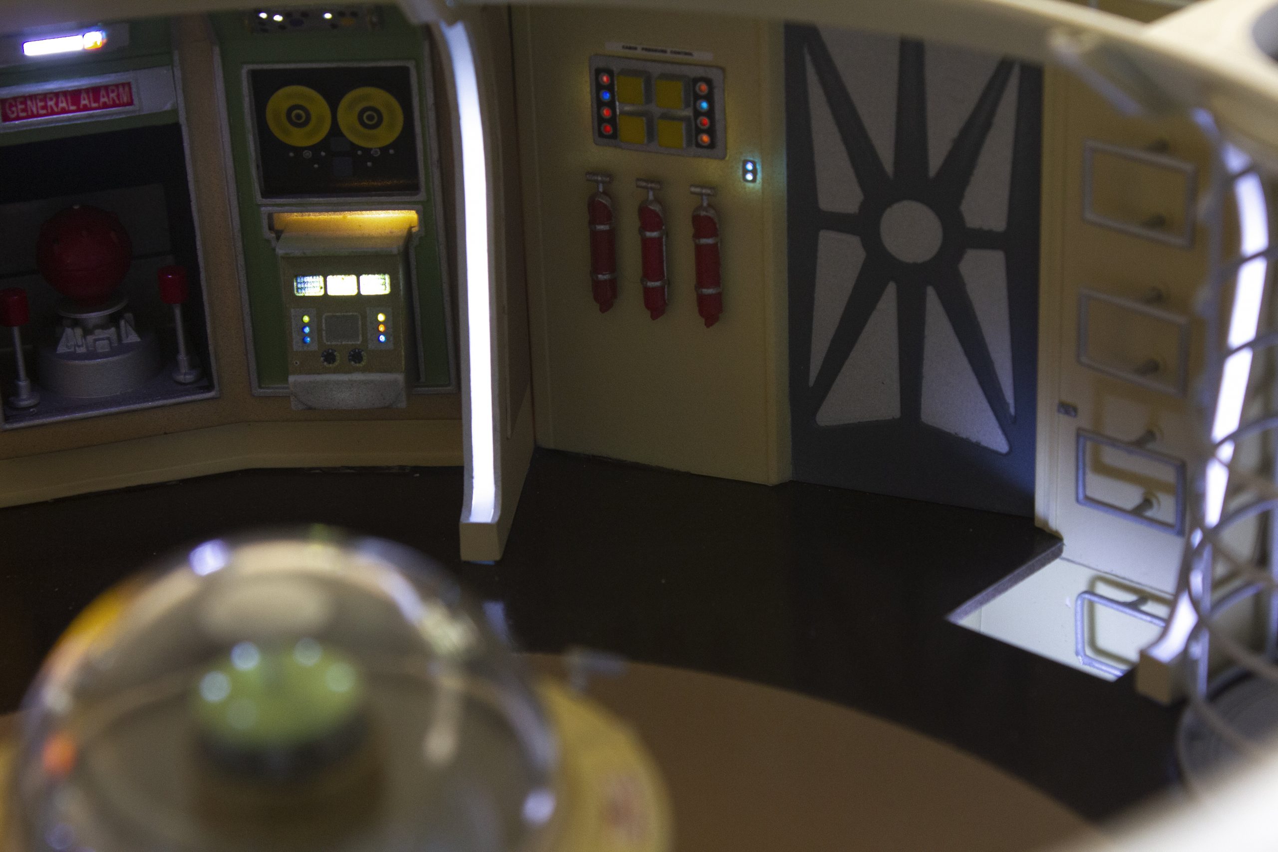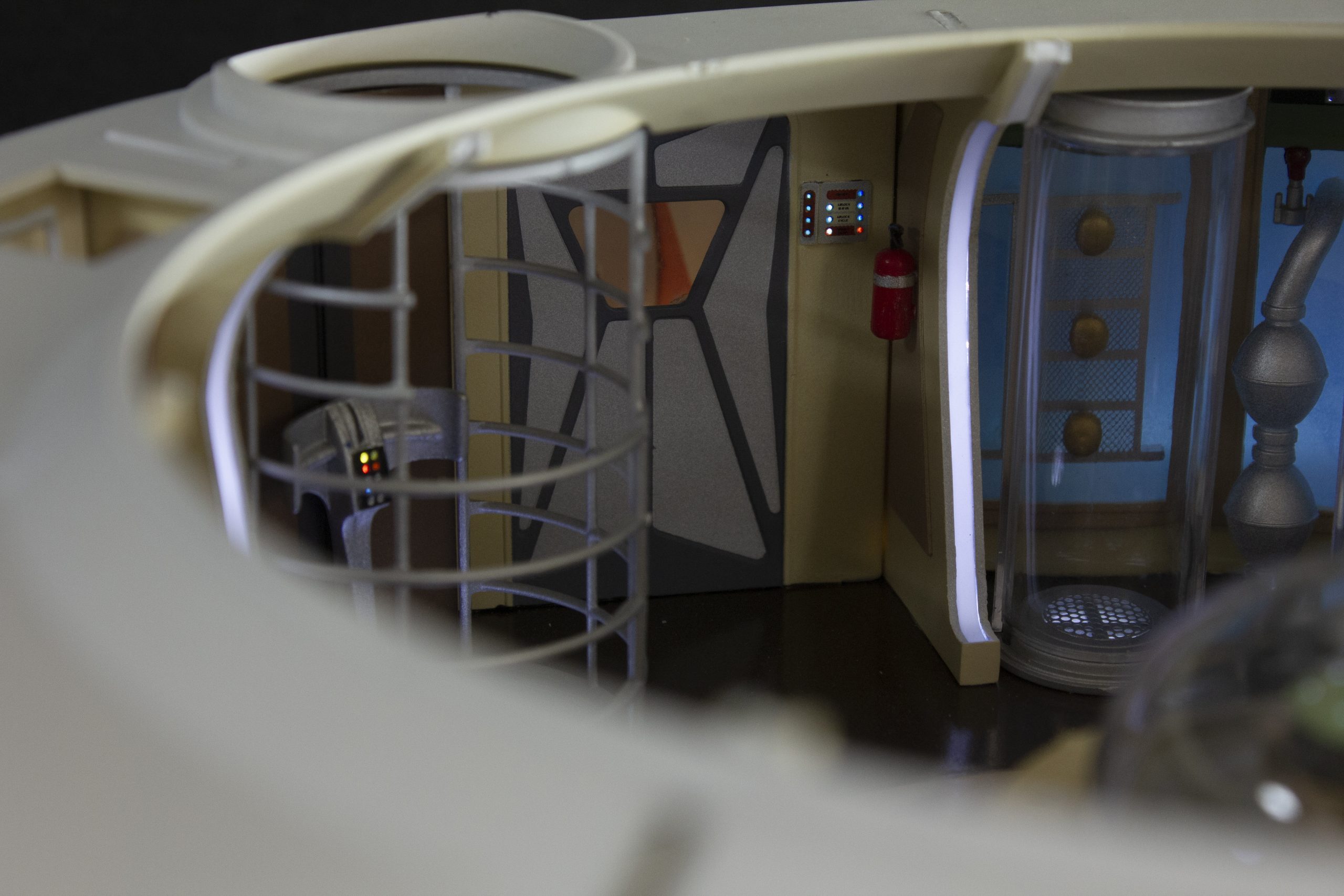 My build of the Moebius Models Jupiter 2 from “Lost In Space”. It took me 6 months to build. I loaded it with over 200 LEDs, 1000 ft of fiber, 2 3v motors, a 5″ round electro-luminescent panel, Arduino Trinket control, sound board and other electronics in the custom built base. This has been the most complex build I’ve done to date. An amazing kit that turned out beautiful after all of the hard work put into it. Gonna be sad to see it leave and go to it’s new home.