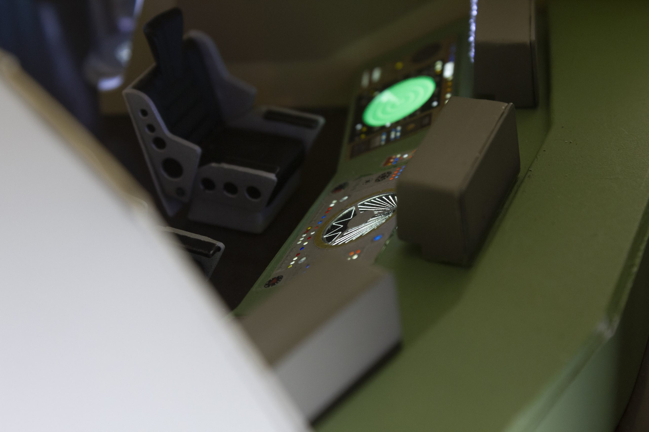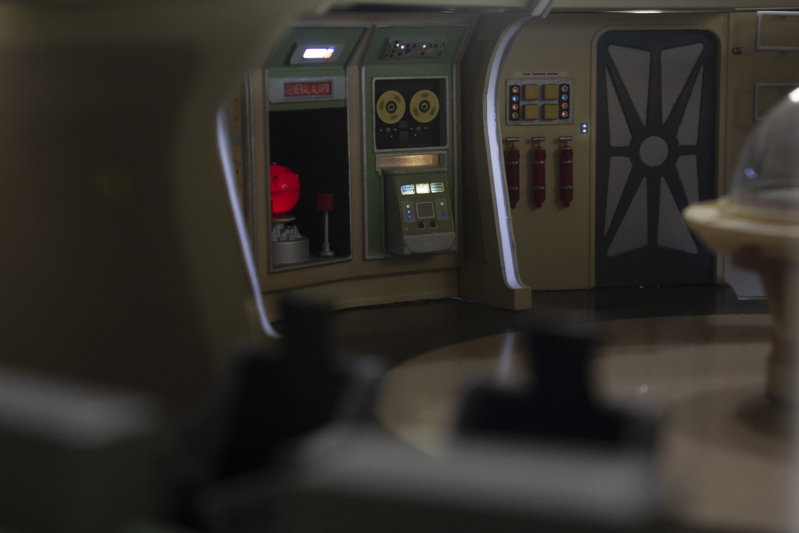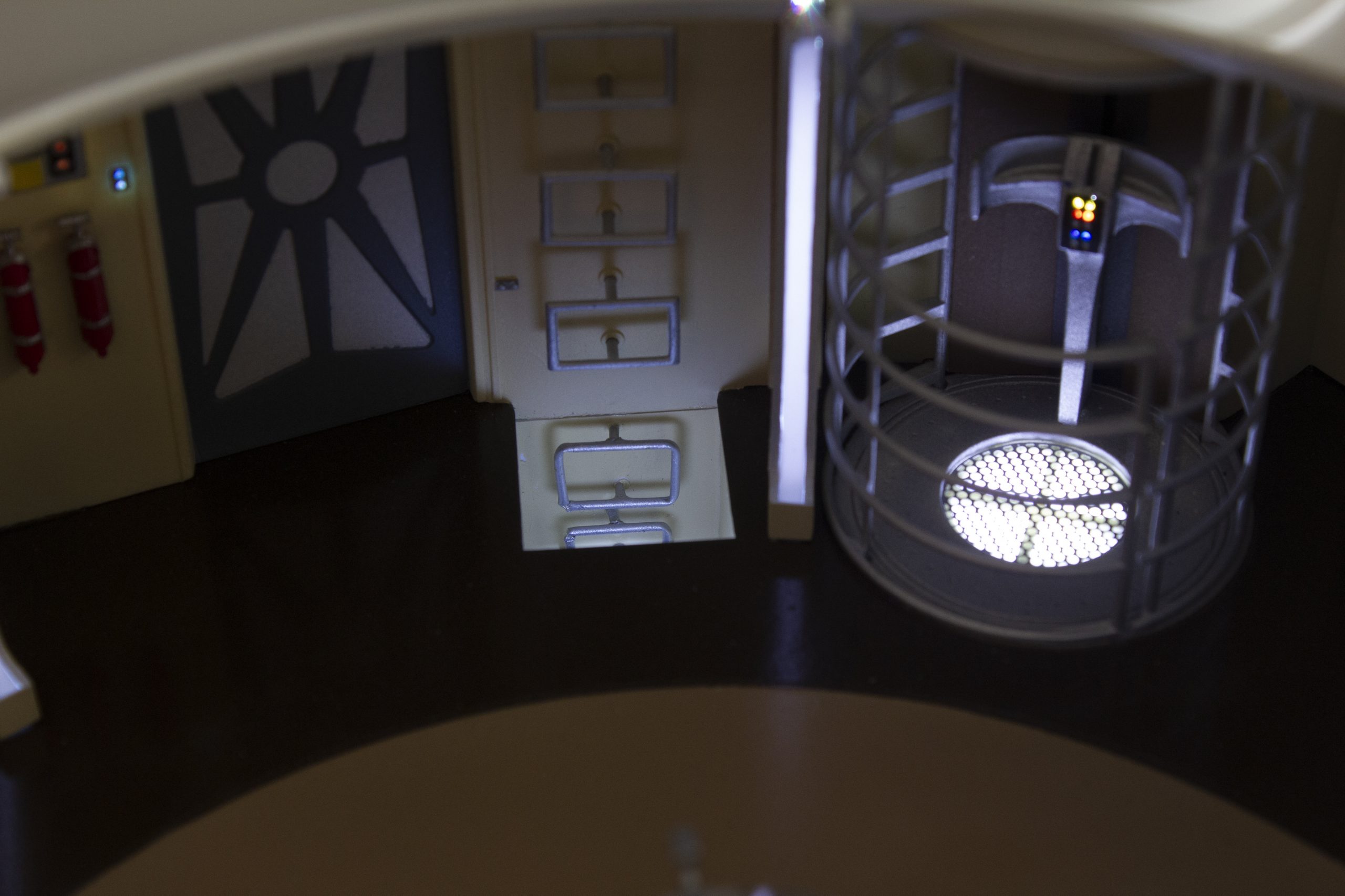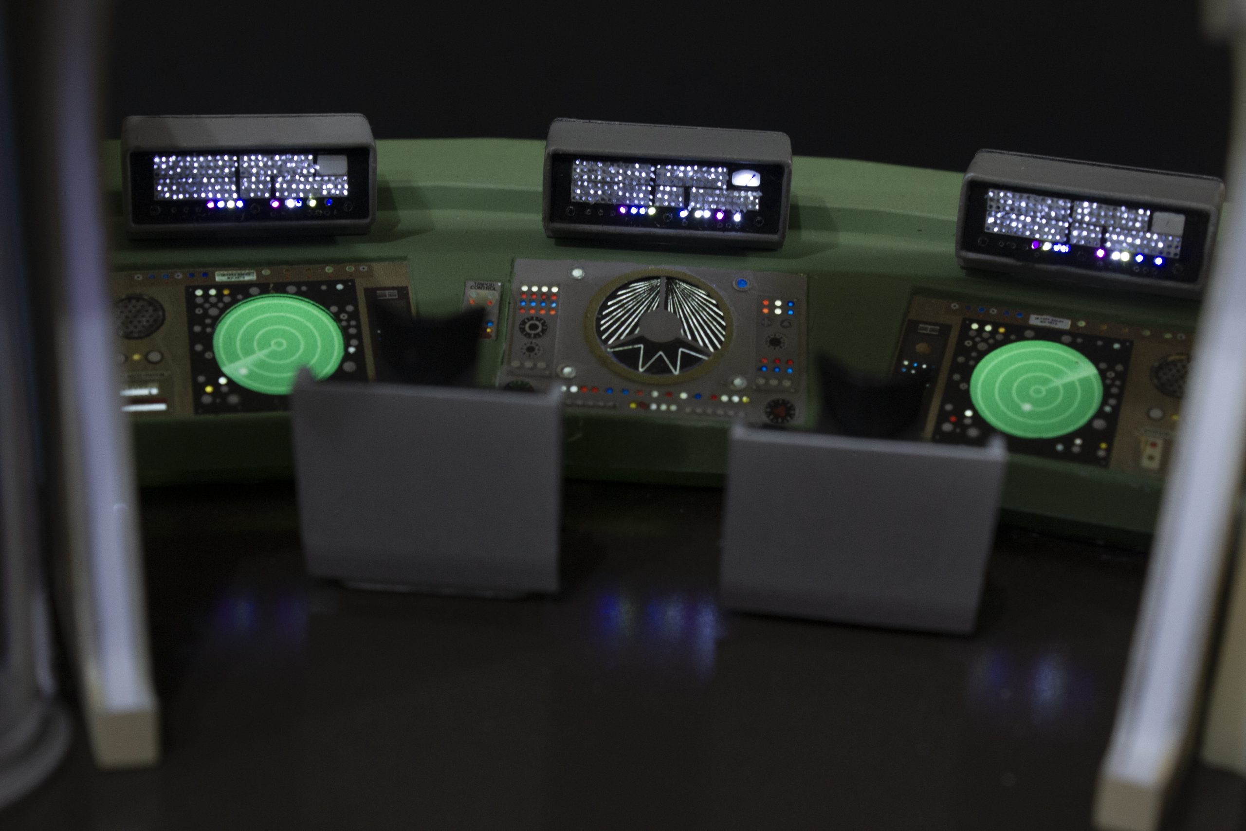 My build of the Moebius Models Jupiter 2 from “Lost In Space”. It took me 6 months to build. I loaded it with over 200 LEDs, 1000 ft of fiber, 2 3v motors, a 5″ round electro-luminescent panel, Arduino Trinket control, sound board and other electronics in the custom built base. This has been the most complex build I’ve done to date. An amazing kit that turned out beautiful after all of the hard work put into it. Gonna be sad to see it leave and go to it’s new home.