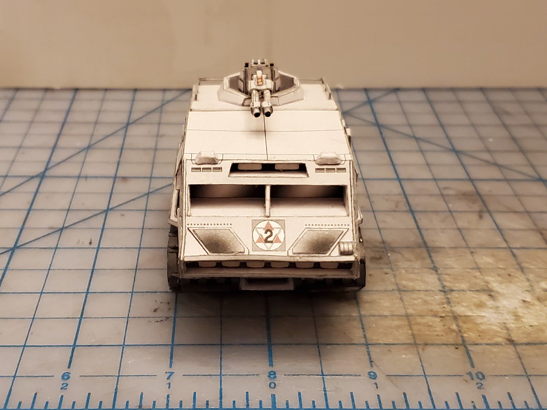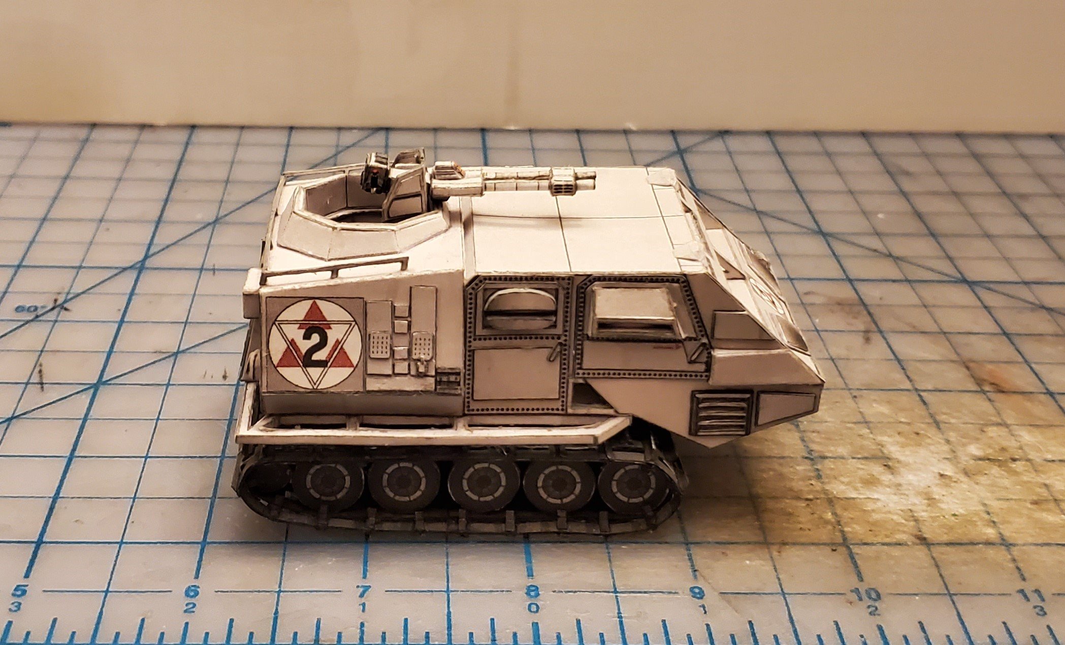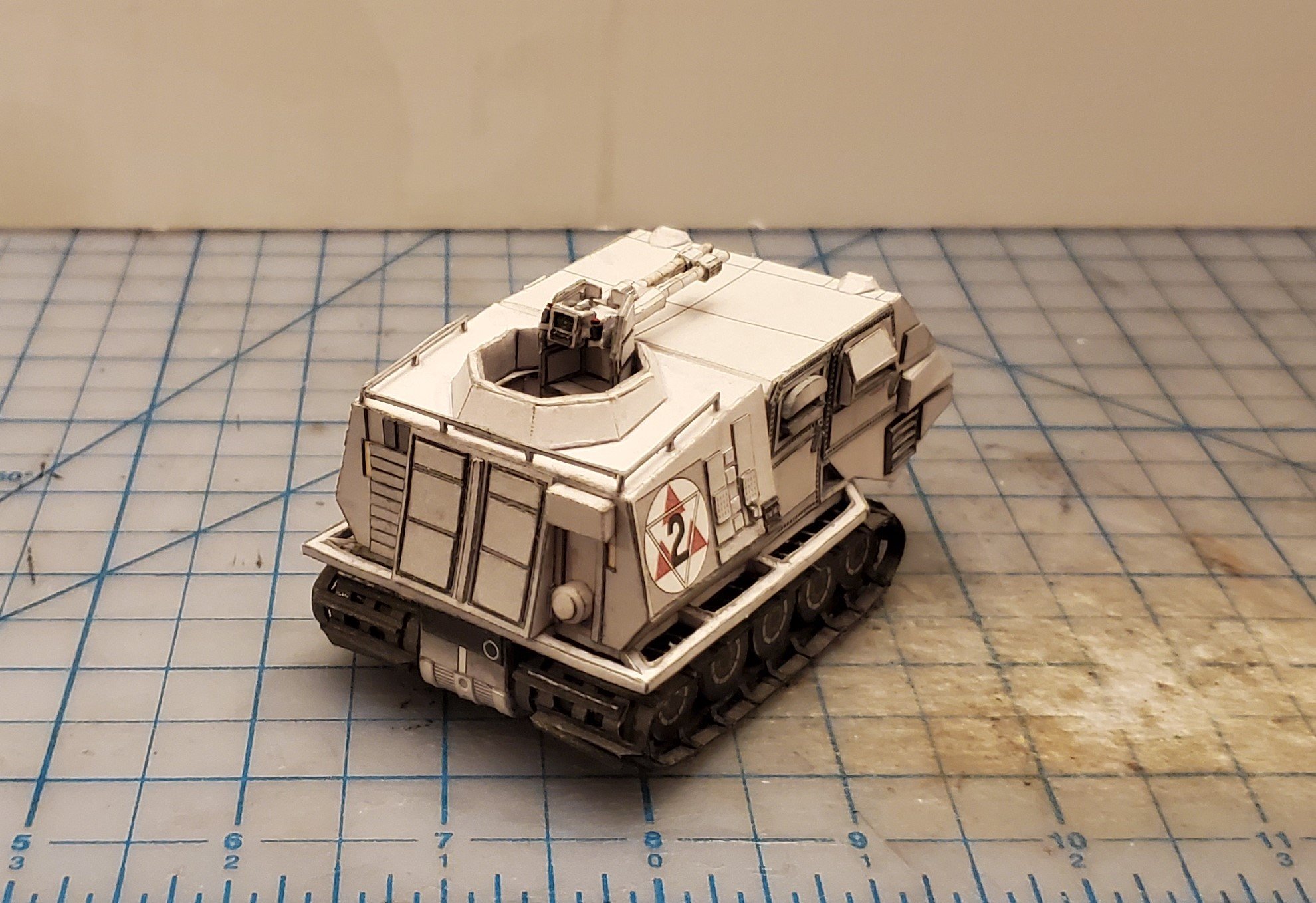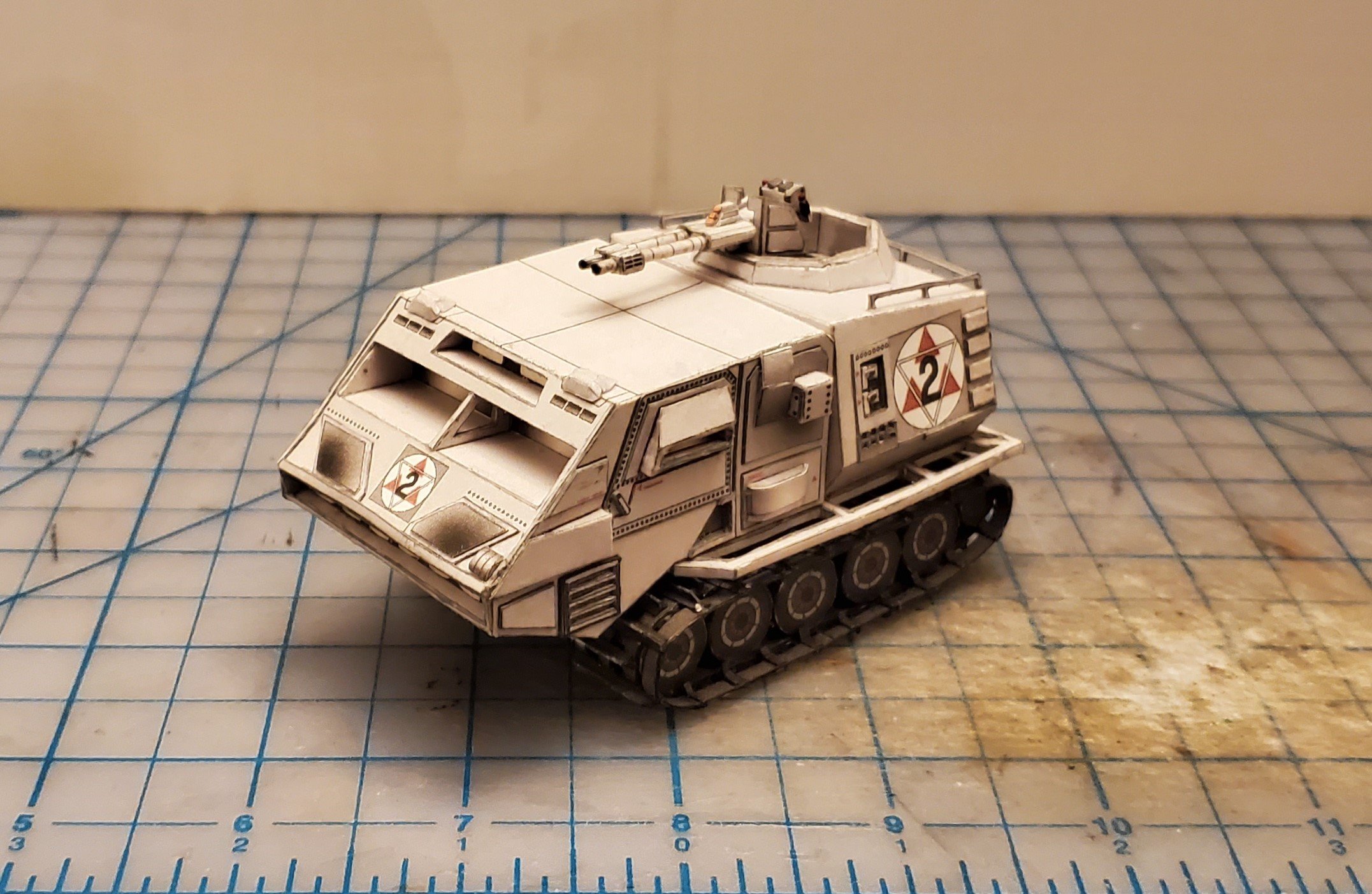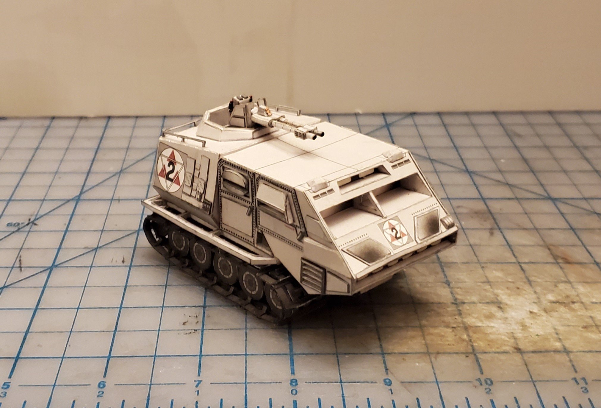 Here are the finished photos of the Colonial Landram from Battlestar Galactica. It is 1:50 scale (I had template rescaled for needs) and made completely of 100# paper/cardstock.