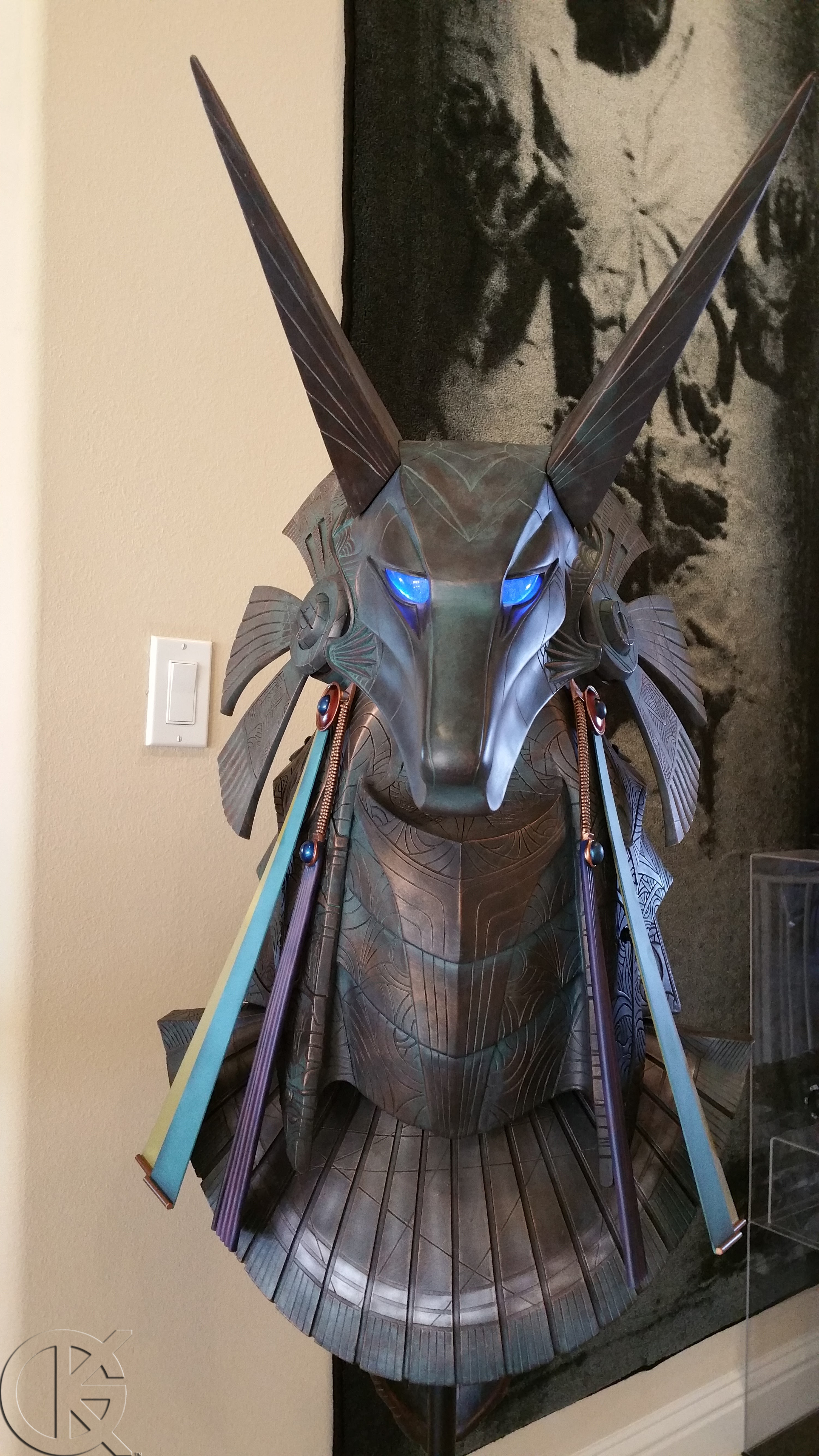 Last Friday, Oct 30, 2015, three large boxes came to me via FedEx! The Anubis Helmet had arrived! Like a kid on Christmas morning, I wanted to rip it open to see the marvelous creation inside, but alas, no time availed itself until yesterday. As an older modeler, I thought I would share with you all the individual pieces in high resolution, that you may admire the great detail work that Chronicle delivered.