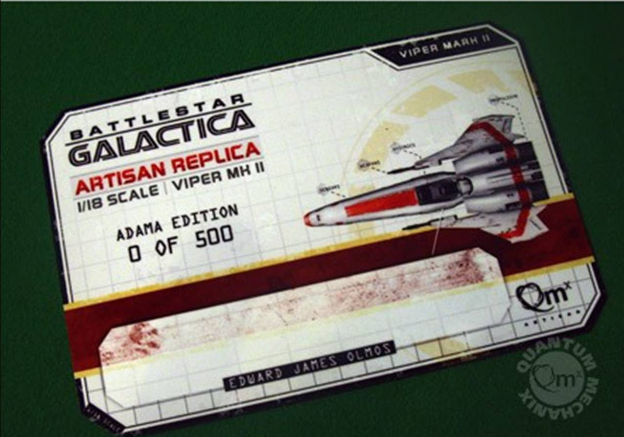 - Adama Edition. Signed by Edward James Olmos, who portrayed Admiral William Adama, this Viper features an analog gauge flight package and the call sign, “Husker” (the Husker call sign is only available in this edition). Admiral Adama piloted his Viper as a lieutenant; thus, this Artisan Replica has the look of a museum-restored piece. Customization is not an option for this classic version.The Adama Edition comes complete with a 1:1 scale screen-accurate replica of the young lieutenant’s dog tags, rendered in solid brass.