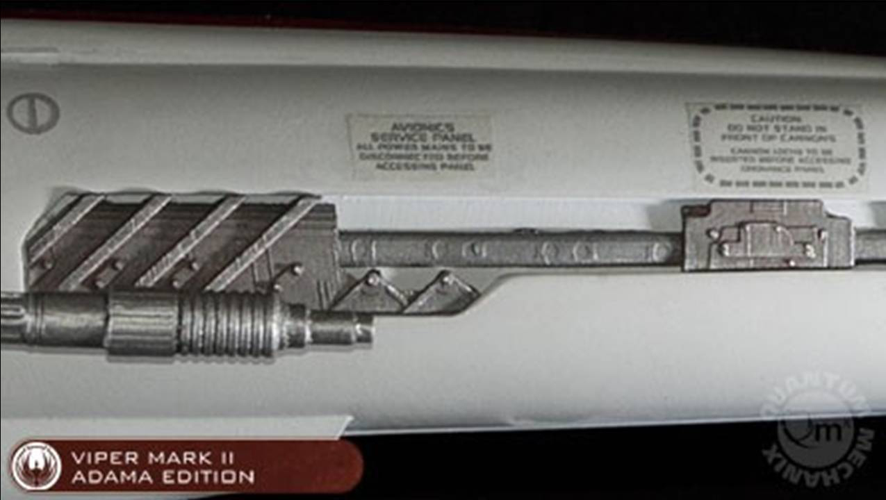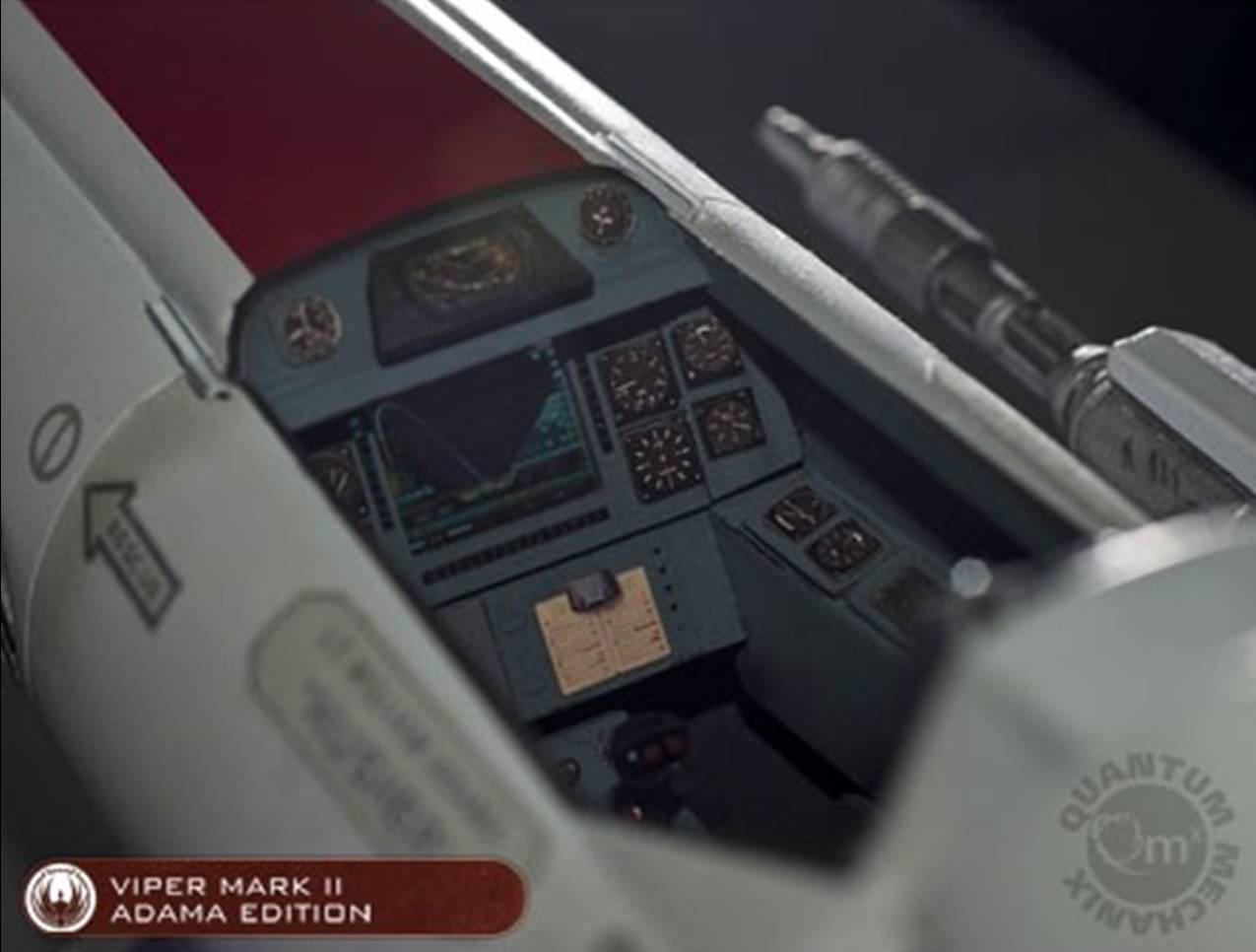 The QMx Viper Mark II Artisan Replica boasts a cockpit chock full of hand-cut details, including gauges, data screens, throttle, ejection seat, and seat belts with fabric belts and metalized buckles. But the pièce de résistance of the QMx Viper is the active, working DRADIS – a 9/16” OLED (organic light-emitting diode) video display of the remote sensing system in action, displaying the actual DRADIS video used in Battlestar Galactica. The canopy can be opened for an optimal view of the cockpit and this first-ever digital model effect.
