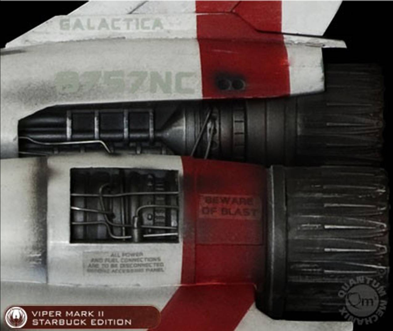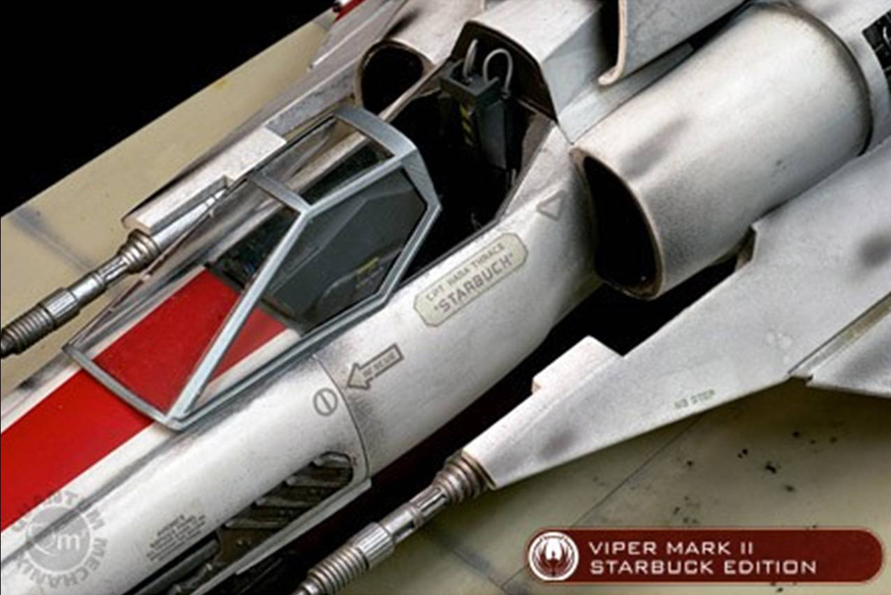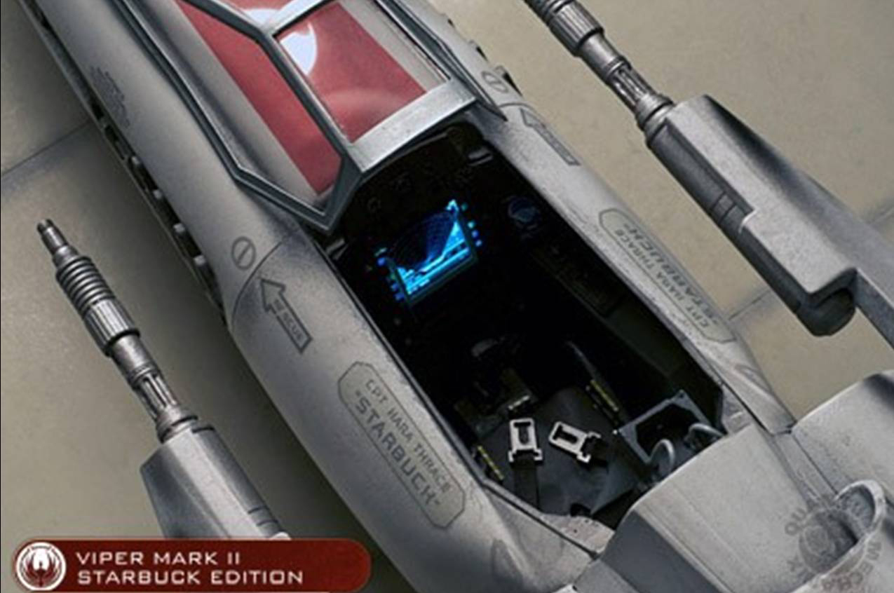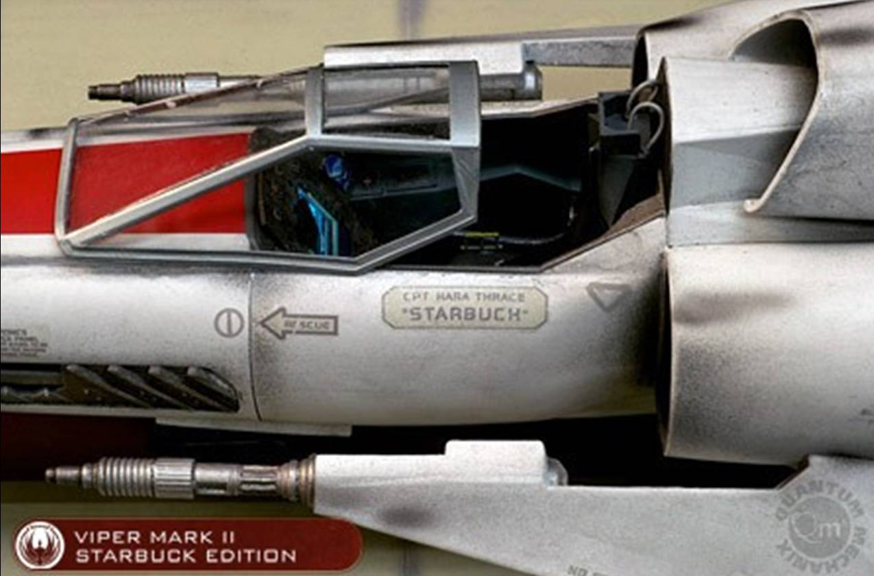 - Starbuck Edition. Signed by Katee Sackoff, who took on the role of Captain Kara Thrace, this more modern Viper sports a digital control panel that helped guide Starbuck on countless missions. Faint recon images of the Eye of Jupiter will occasionally flash on this Viper’s (and only this Viper’s) DRADIS readout. Battle ready, this model has a weathered finish and Starbuck’s call sign on the sides of the cockpit (only available on the Starbuck Edition). Customization is not an option for this updated version.
