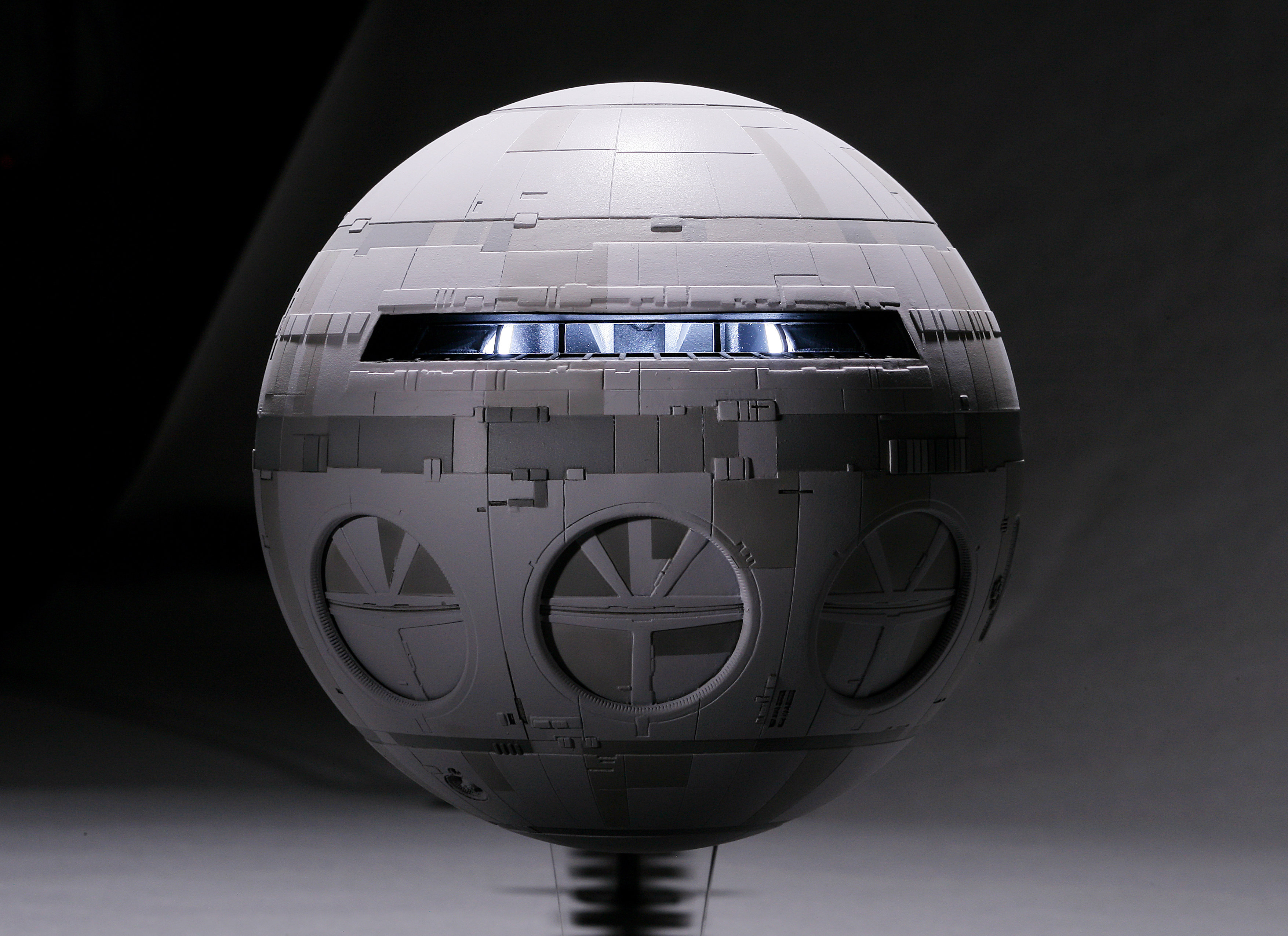 The prop was 6 feet in diameter and fabricated from wood and fiberglass. Additionally, metal plates, acrylic panels, paper and paint were used to create various shades and create detail.