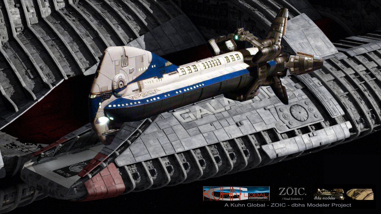 This piece was created using a CG ZOIC Battlestar Galatica photo, along with the photos of the fantastic build of Colonial One by master modeler Douglas Shortes.