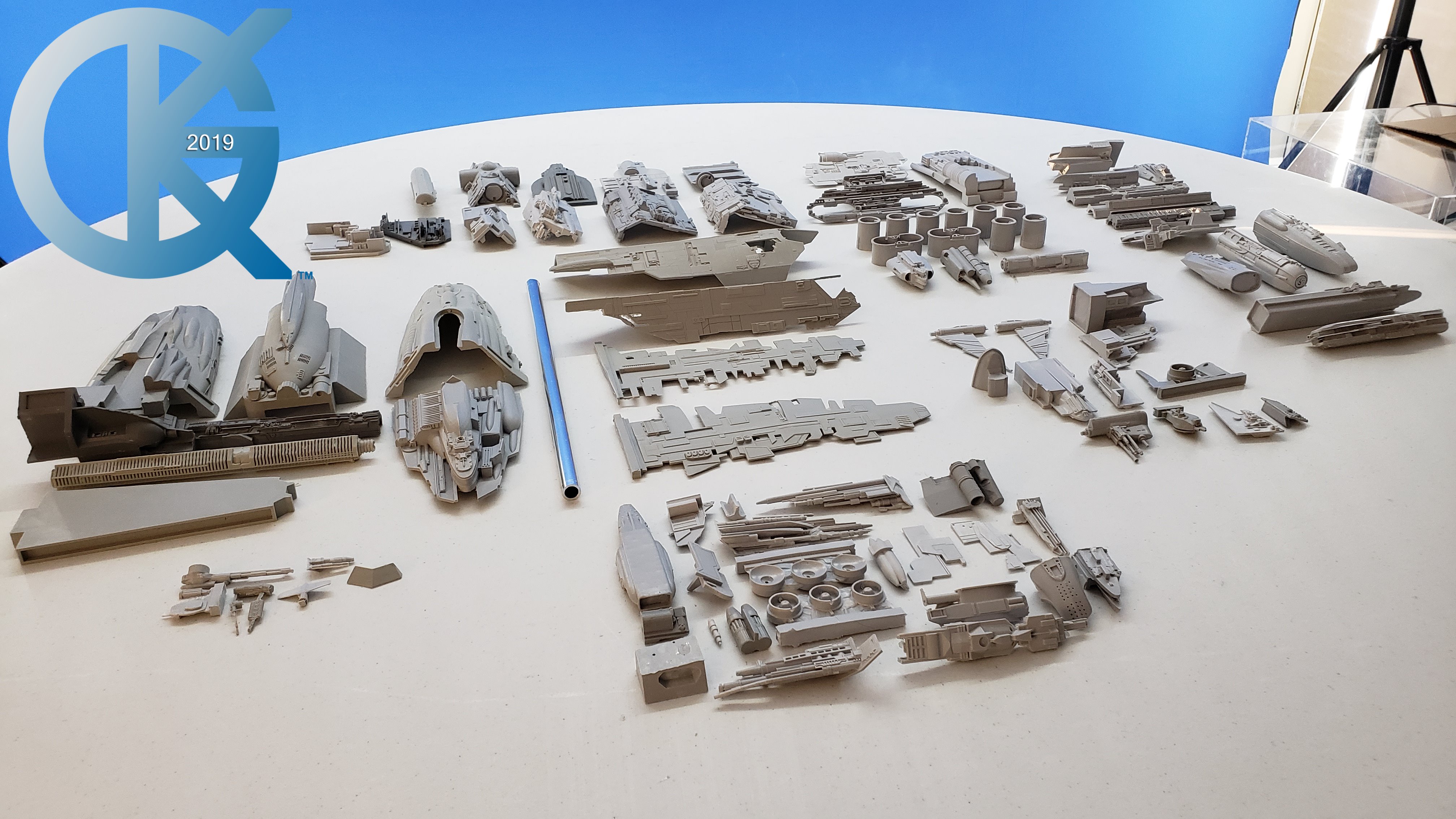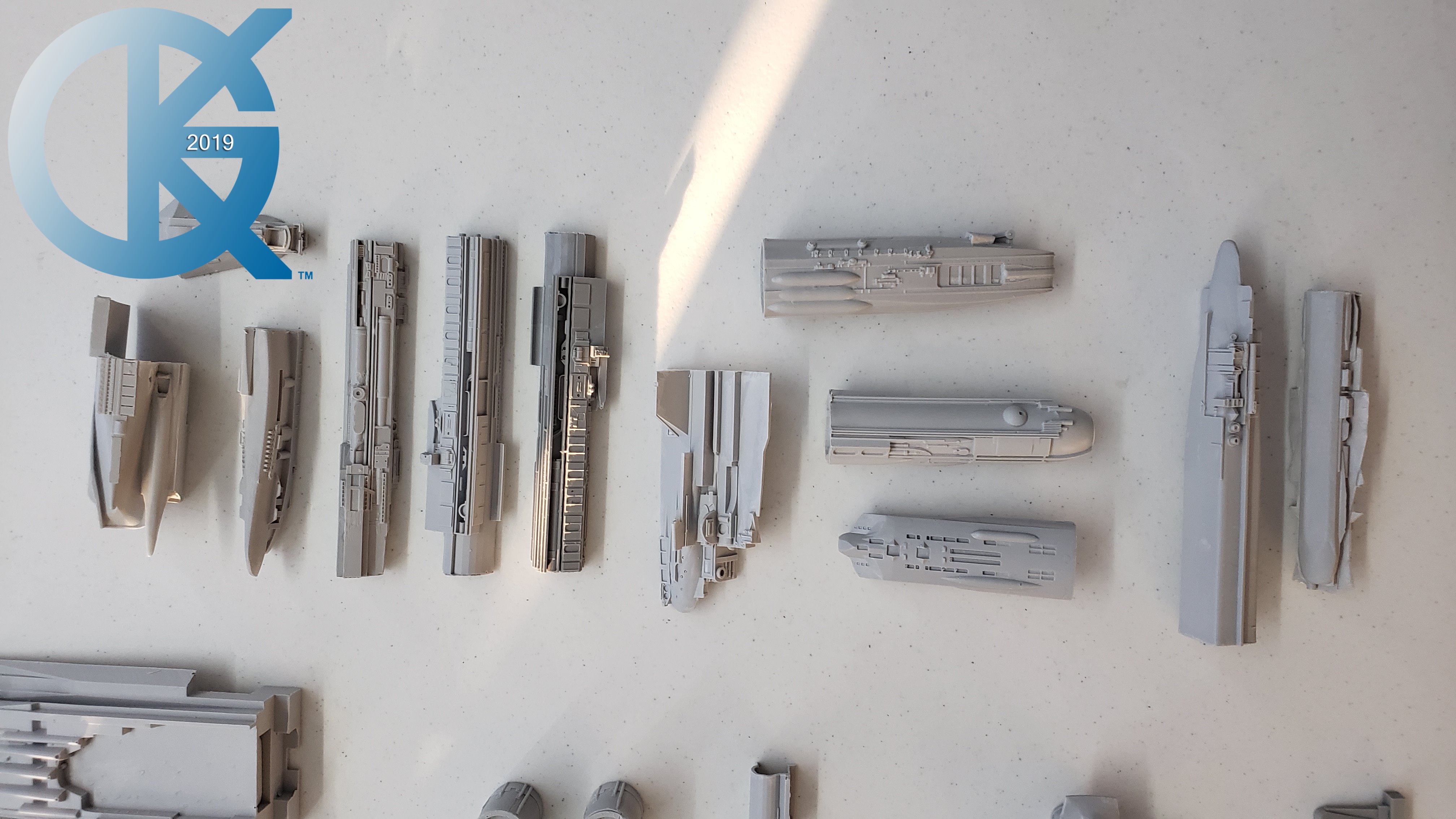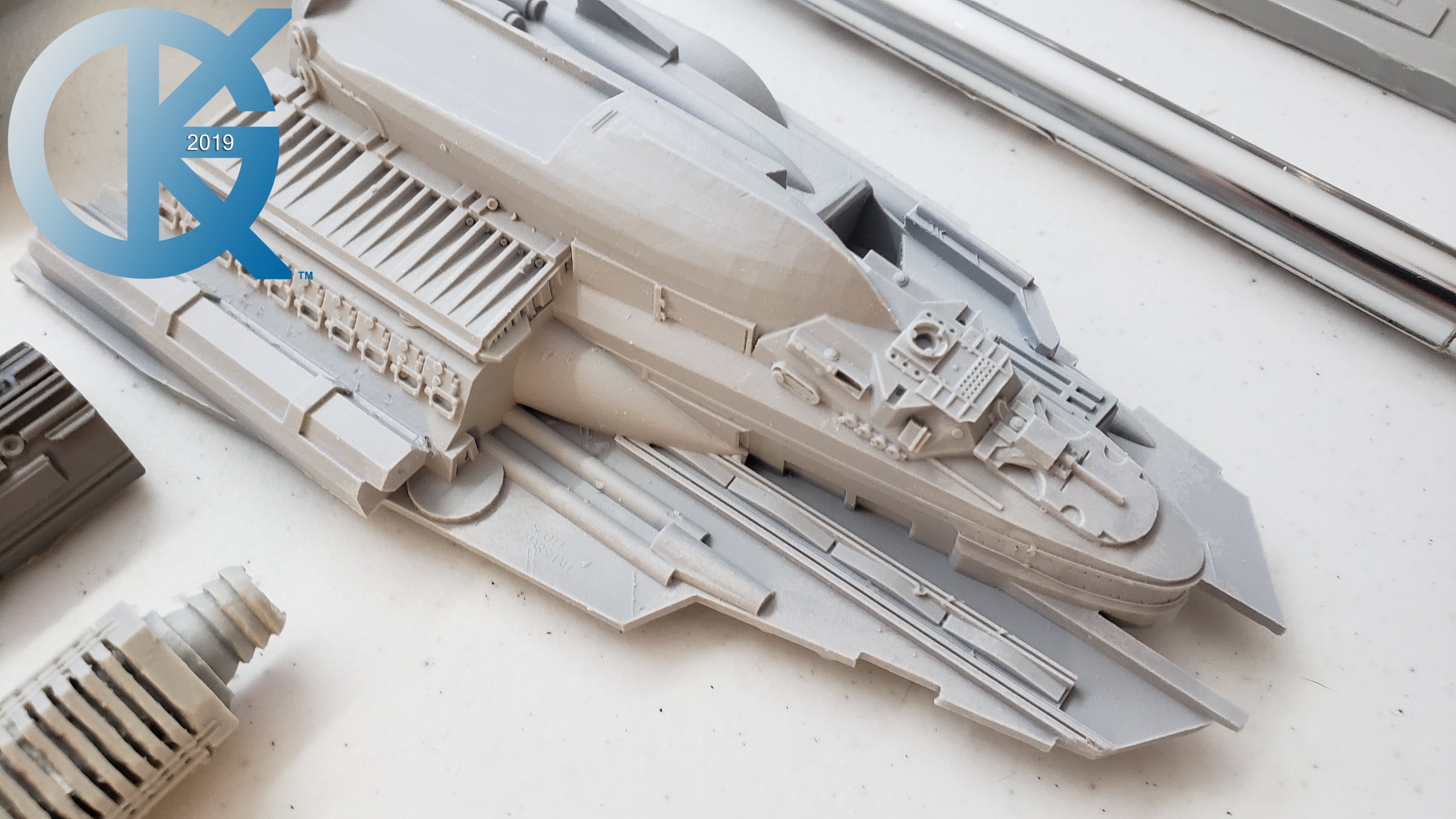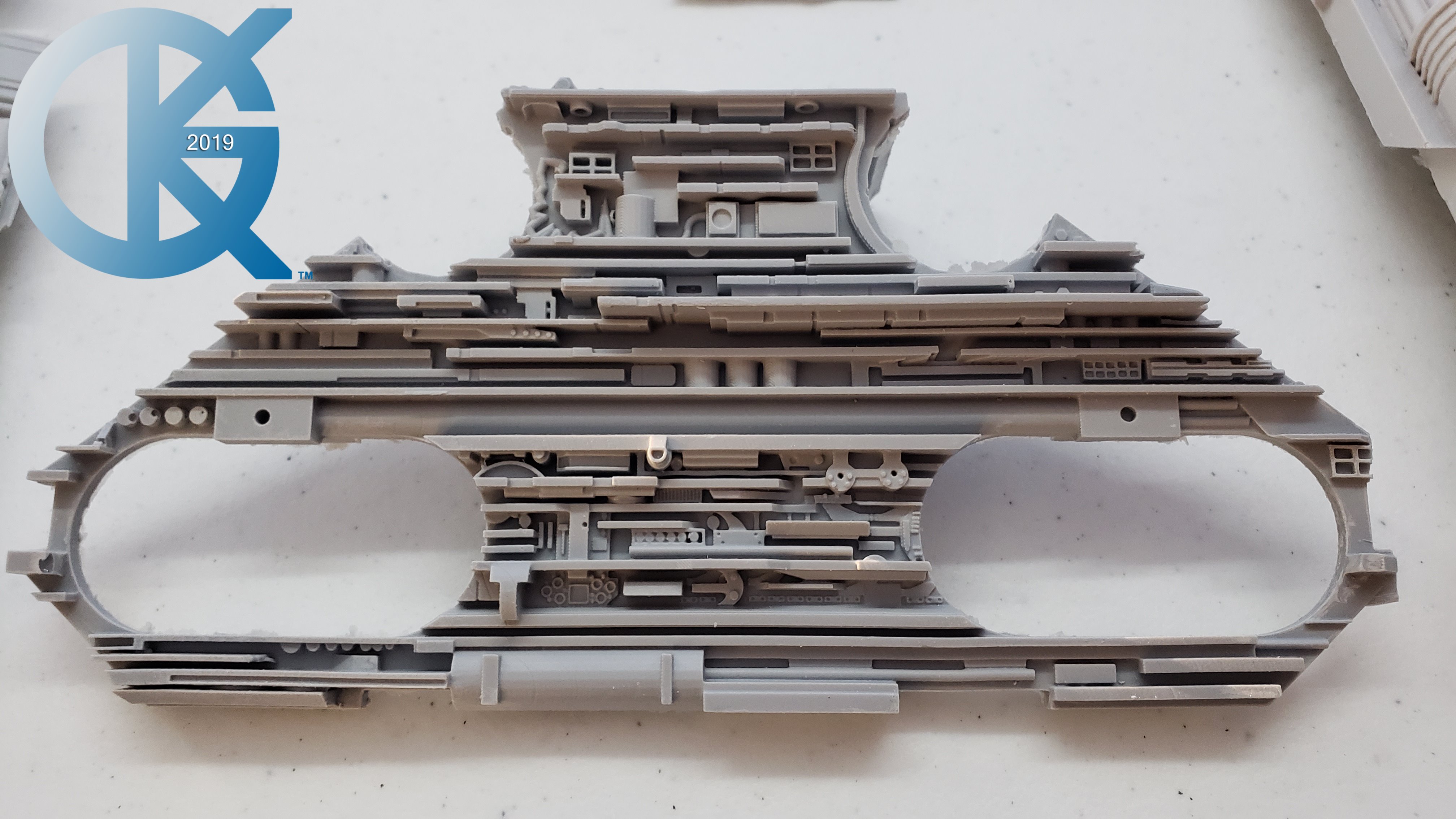 Every so often a kit emerges that has been long awaited, and very exciting to me. Such is the Cosmos Models 1/350 Nebulon B Medical Frigate from The Empire Strikes Back. When built it is supposed to measure 3 feet in length! How exciting is that?!! Nicholas Sagan has done marvelous work in producing this kit… from 3D files… to 3D printing of the parts… the kit I received looks fantastic. The first kit arrived very well packed, and has a metal tube included for the spine of the model.