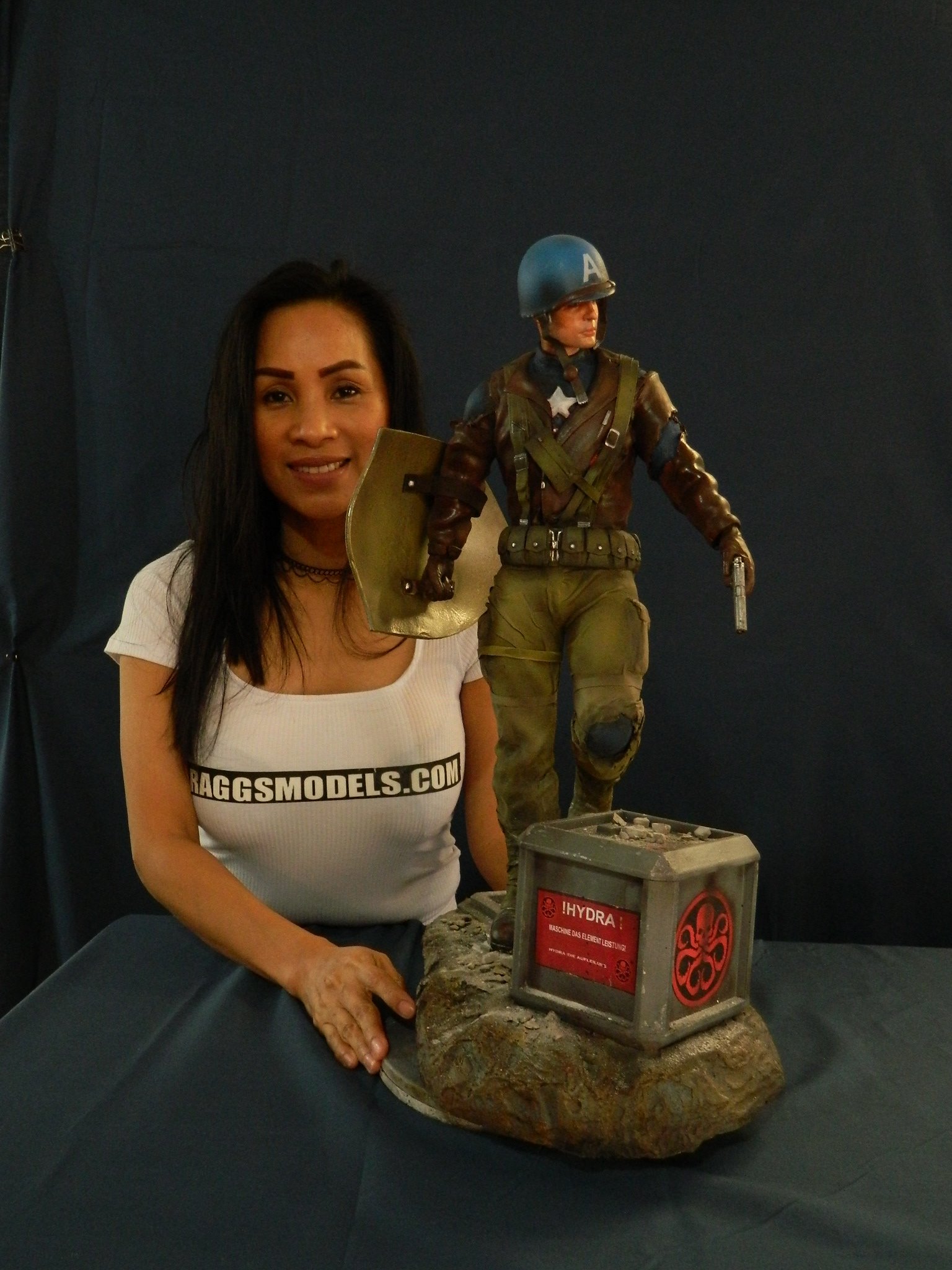 Here is Jo along side the First Avenger… Captain America! We also have some 1/3 scale and 1/4 scale figures we offer.