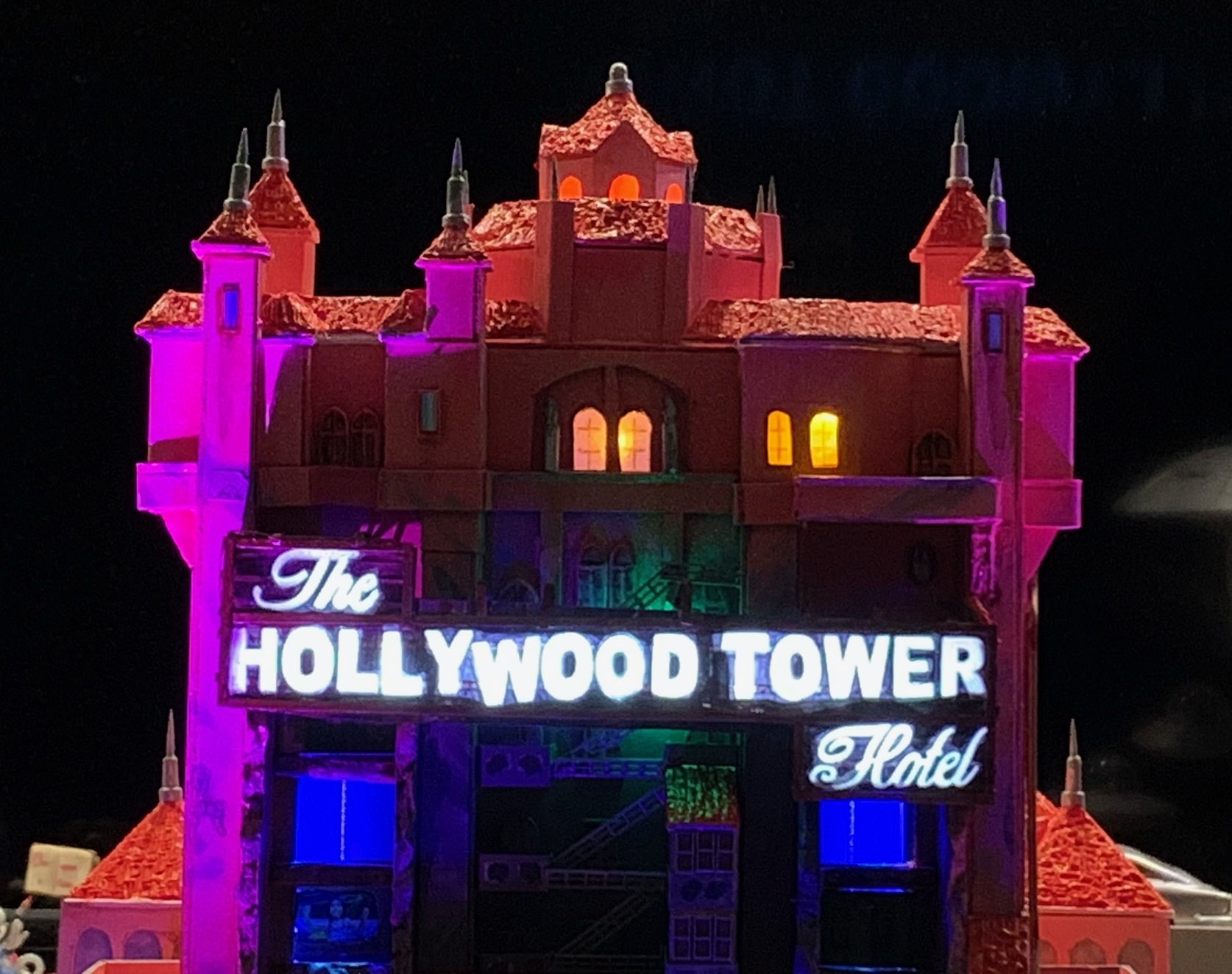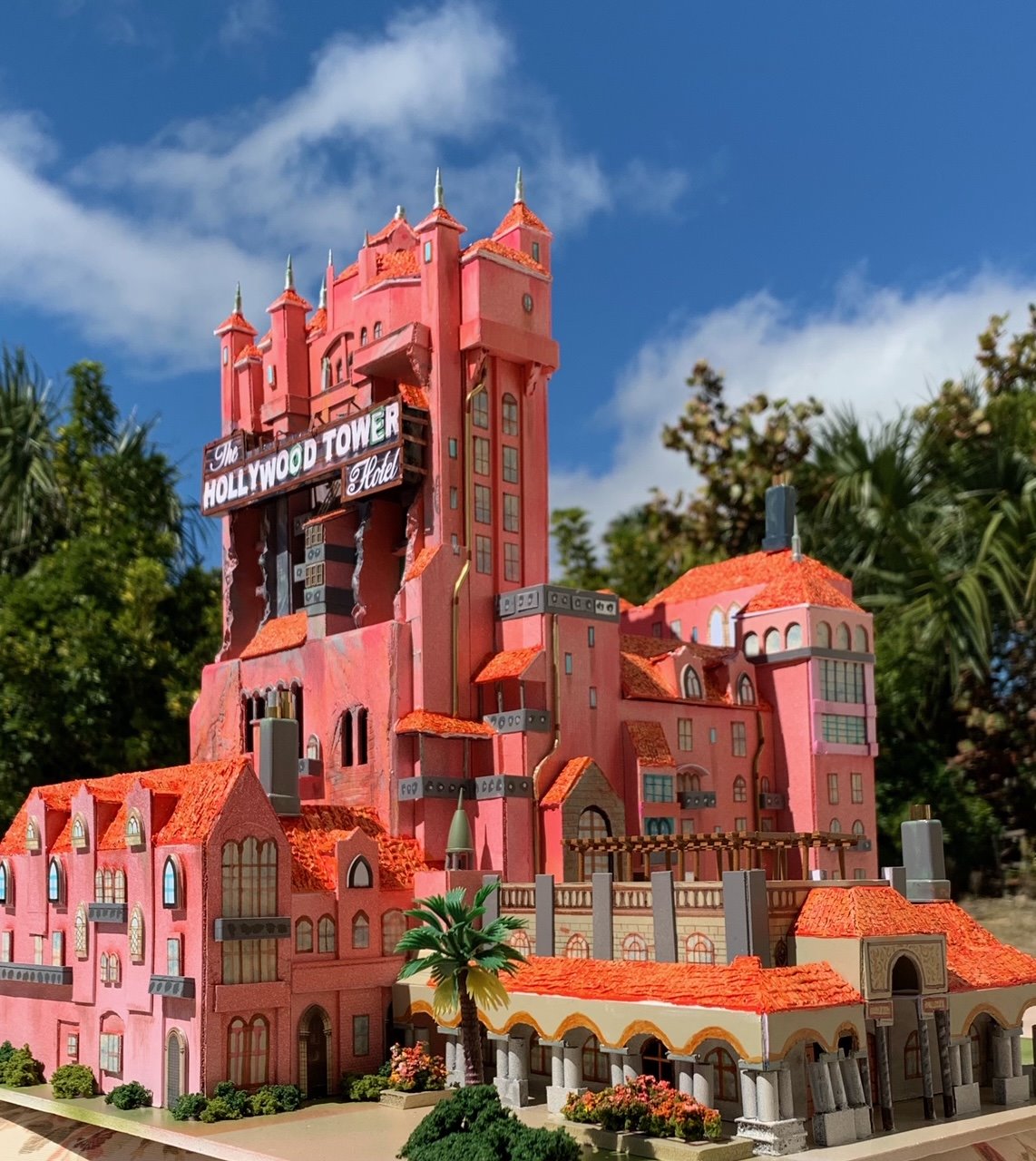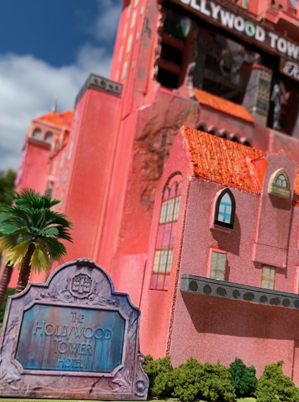 I built my favorite attraction at Walt Disney world. The Tower of Terror in Hollywood Studio. It’s paper construction with some interior and lights. I also put in a working elevator. It’s about 1/140 scale and nice to look at.