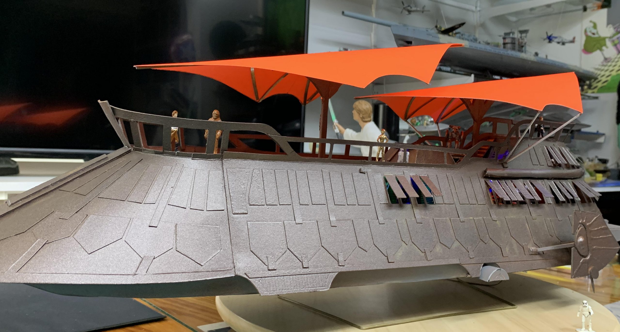 Artist Dae Choi never disappoints as he shows us his scratch build of Jabba’s Sail Barge,… made of paper card stock! Fantastic!