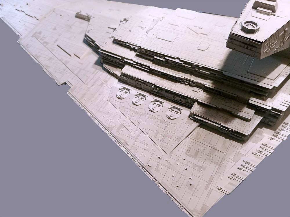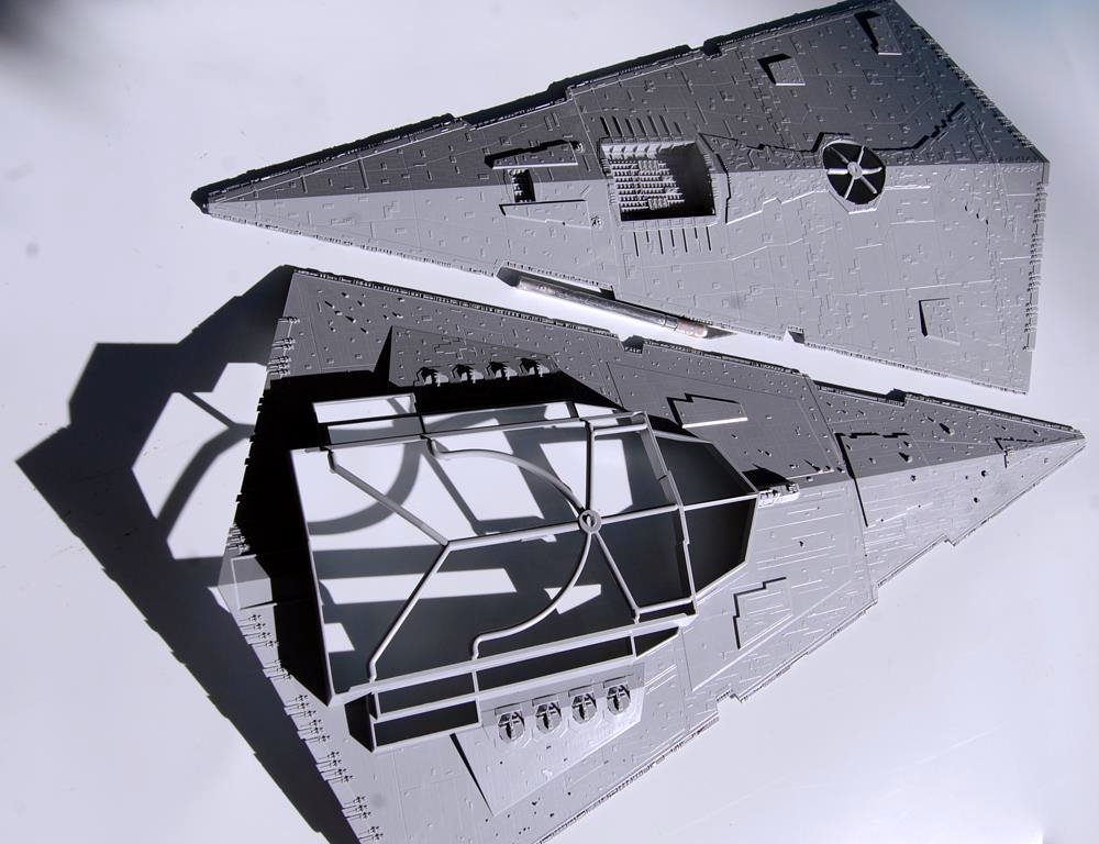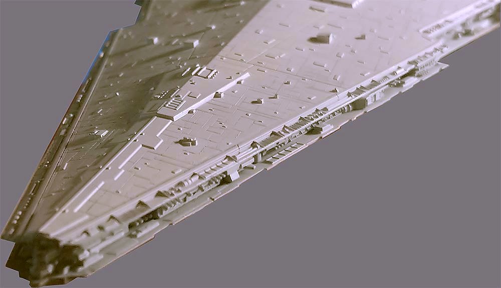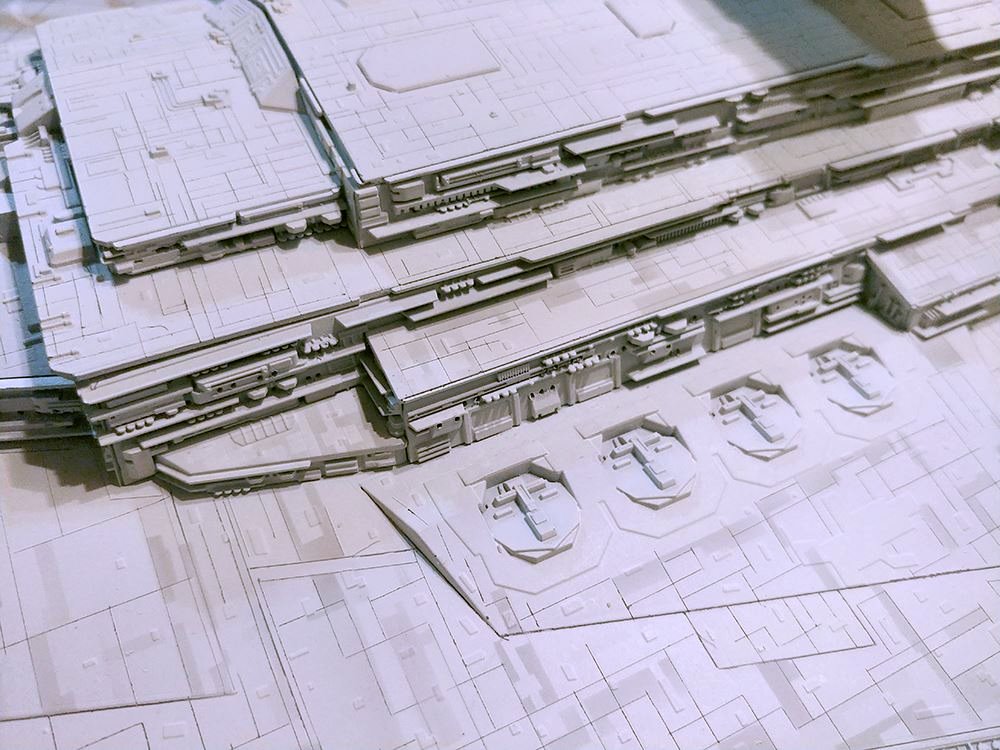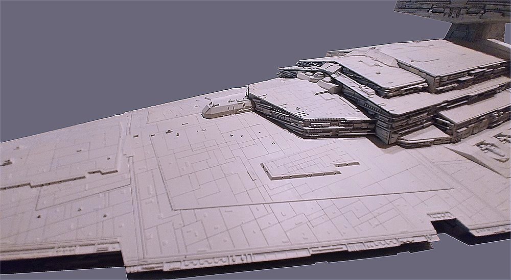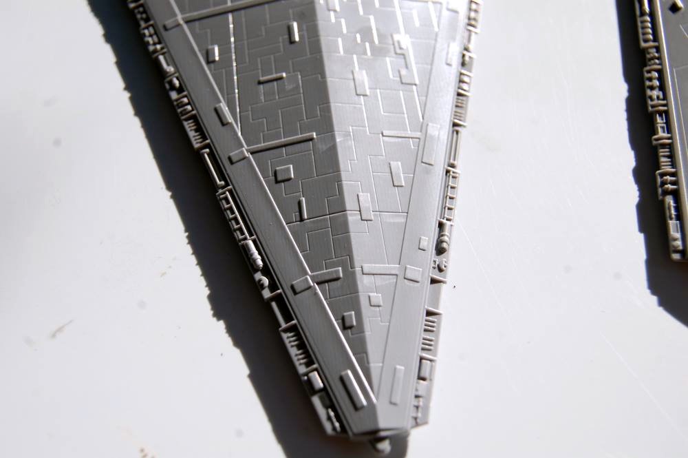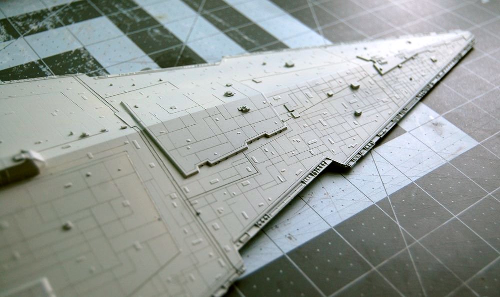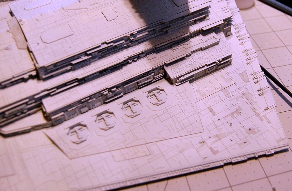 “I’ve finished the panels on the top of the ship, and then I went back over all of them with the base color to blend them in, then I tried to take some pics of how I saw the ship in the movie as far as how the panels and scribing is seen, as in the movies you really don’t see it unless it’s in a close up. I think in these pics it shows how from a distance you don’t even see them, then as you get closer they’re more prominent.