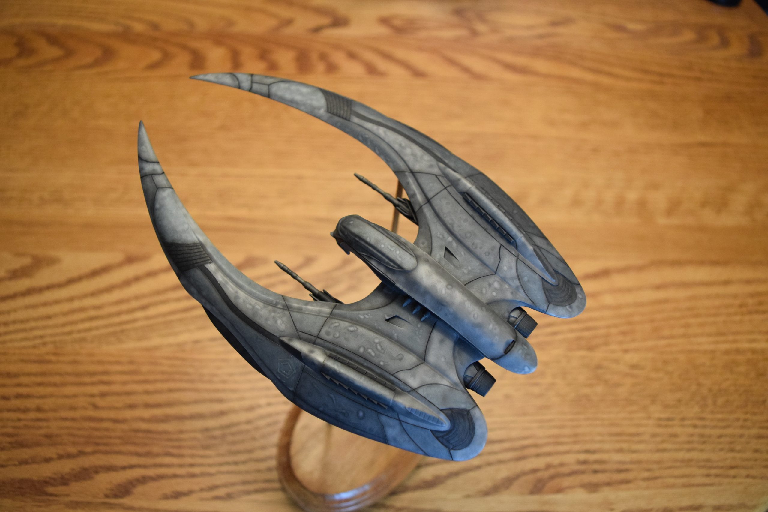 This is the 1/48 newest generation Cylon Raider from the re-imagined BSG series. This kit was also produced by Bad Azz models. The finish was done using Model Master metallic paints.