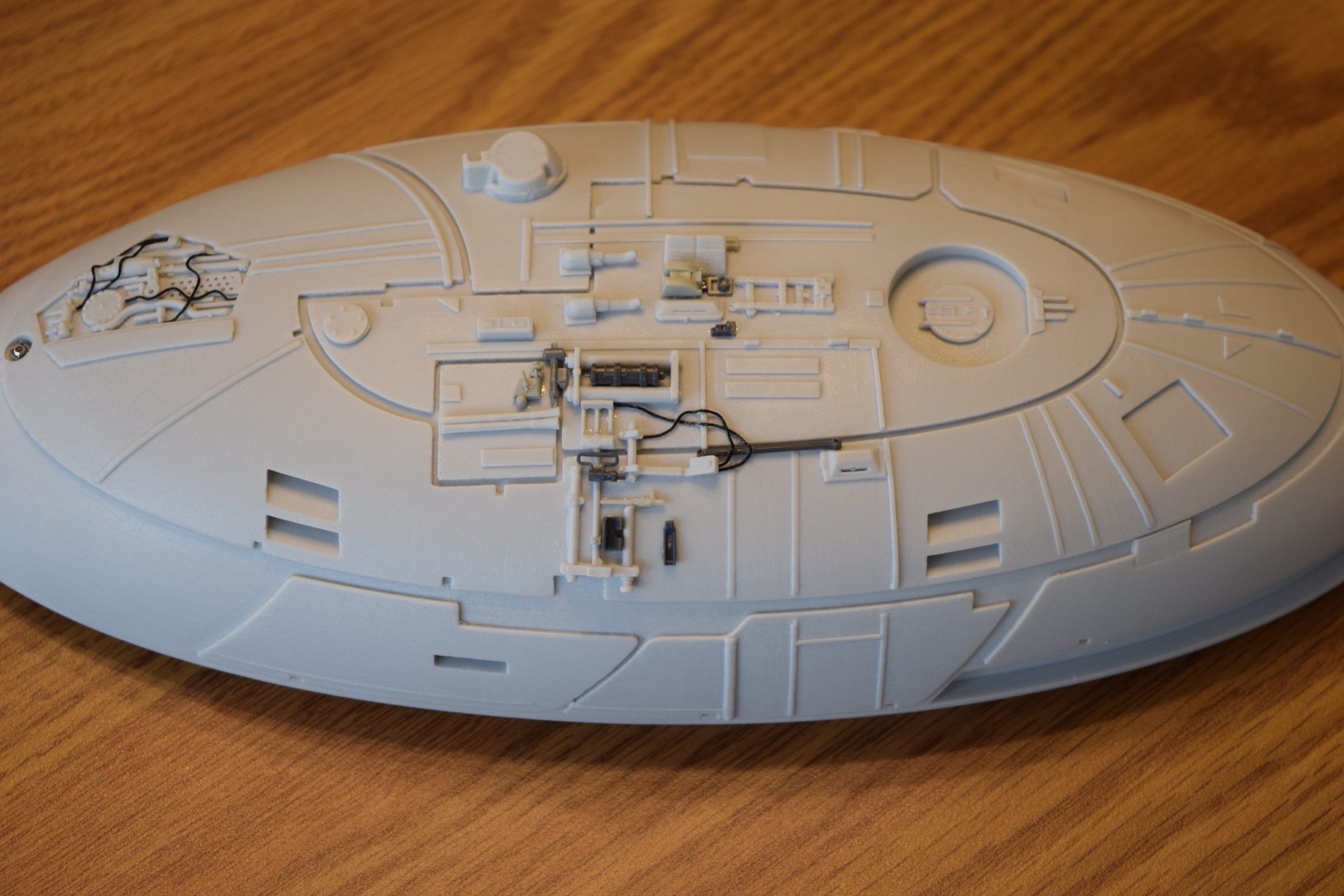 I wanted to include lighting for the BOP, with engine effects and with a photon torpedo effect. So I purchased a couple Madman lighting kits (Klingon cruiser lighting kit with engine effects and photon torpedo effects, as well as a Starship lighting kit for the steady lights and a couple marker lights).