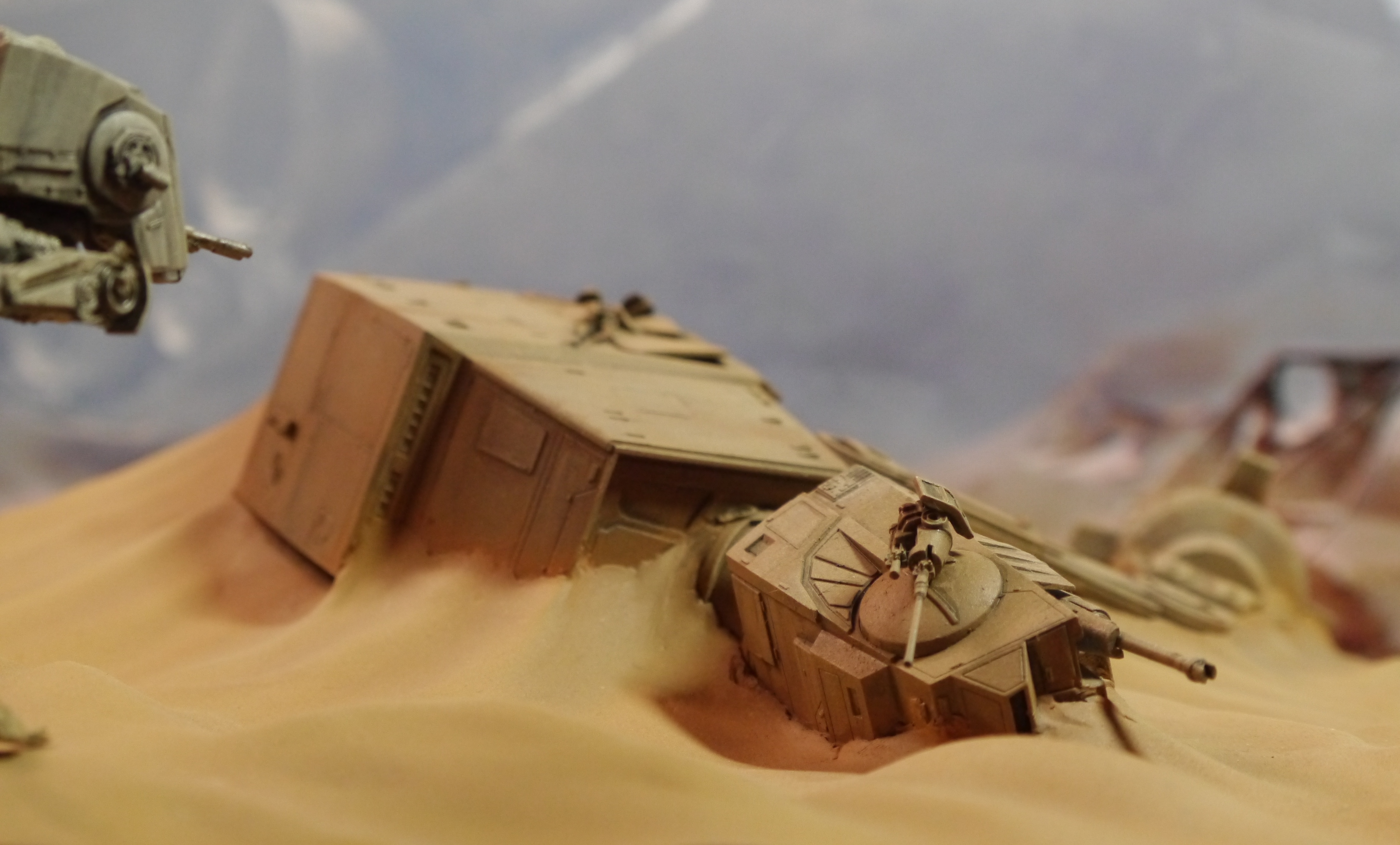 The reason for this title, as you will guess I’m sure, is from the Disney film, I just thought the two Walkers together had a kind of mother and son feel about them. The sand dunes were sculpted quite rough at first then covered with a layer of Milliput (don’t know if you’re familiar with this product, it’s a two part epoxy putty).