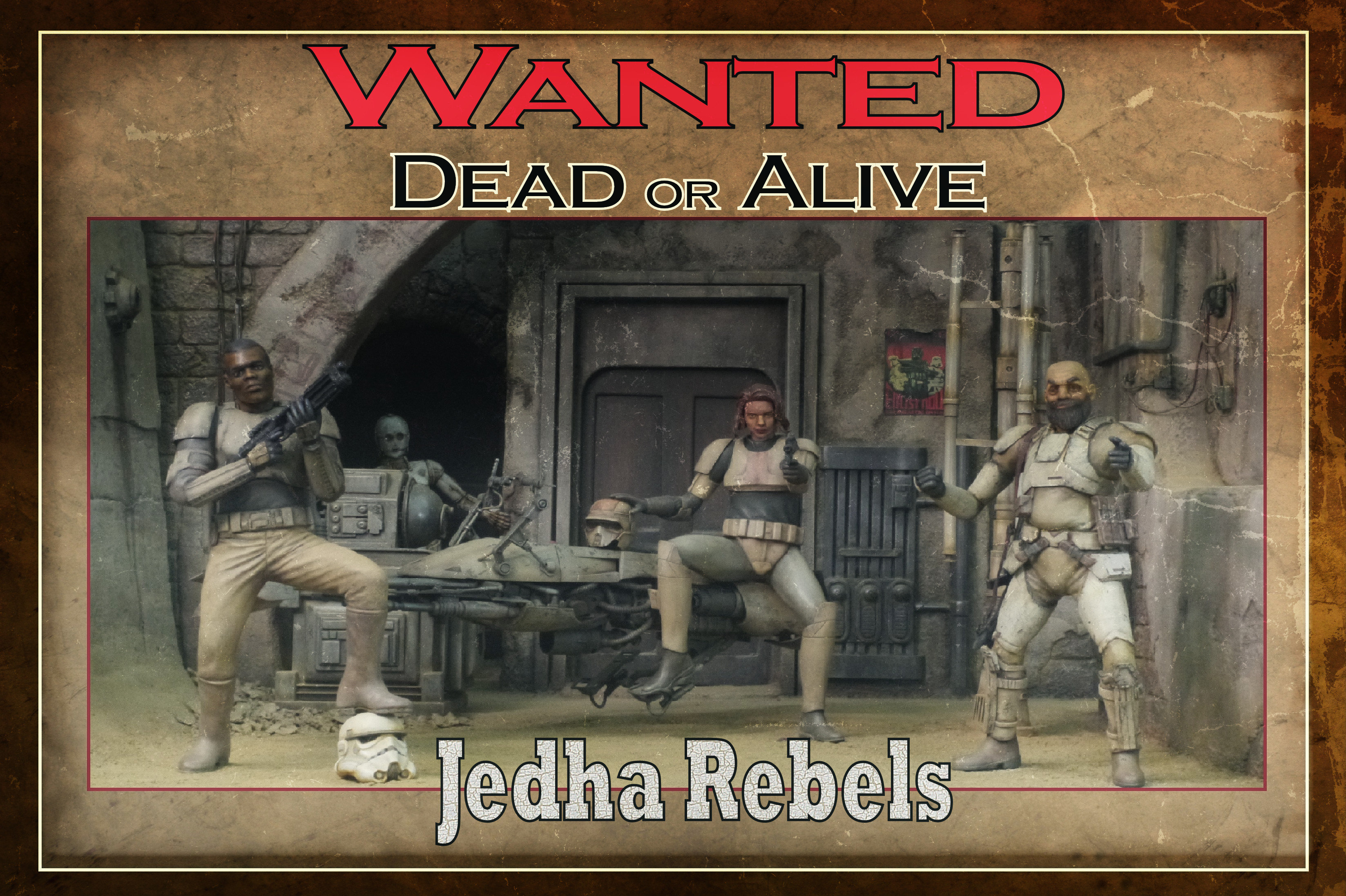 The piece is called “The Good, The Bad and The Ugly – Jedha Rebels. It’s inspired by the Star Wars movie Rogue One, perhaps you can see that in some of the architecture. The figures are 1/12th scale from BanDai, just as I usually utilize, and I’ve mixed and matched body parts to create the trio of rebel fighters. I wanted it to look like they’ve been using equipment that they have ‘liberated’ from Imperial troopers.