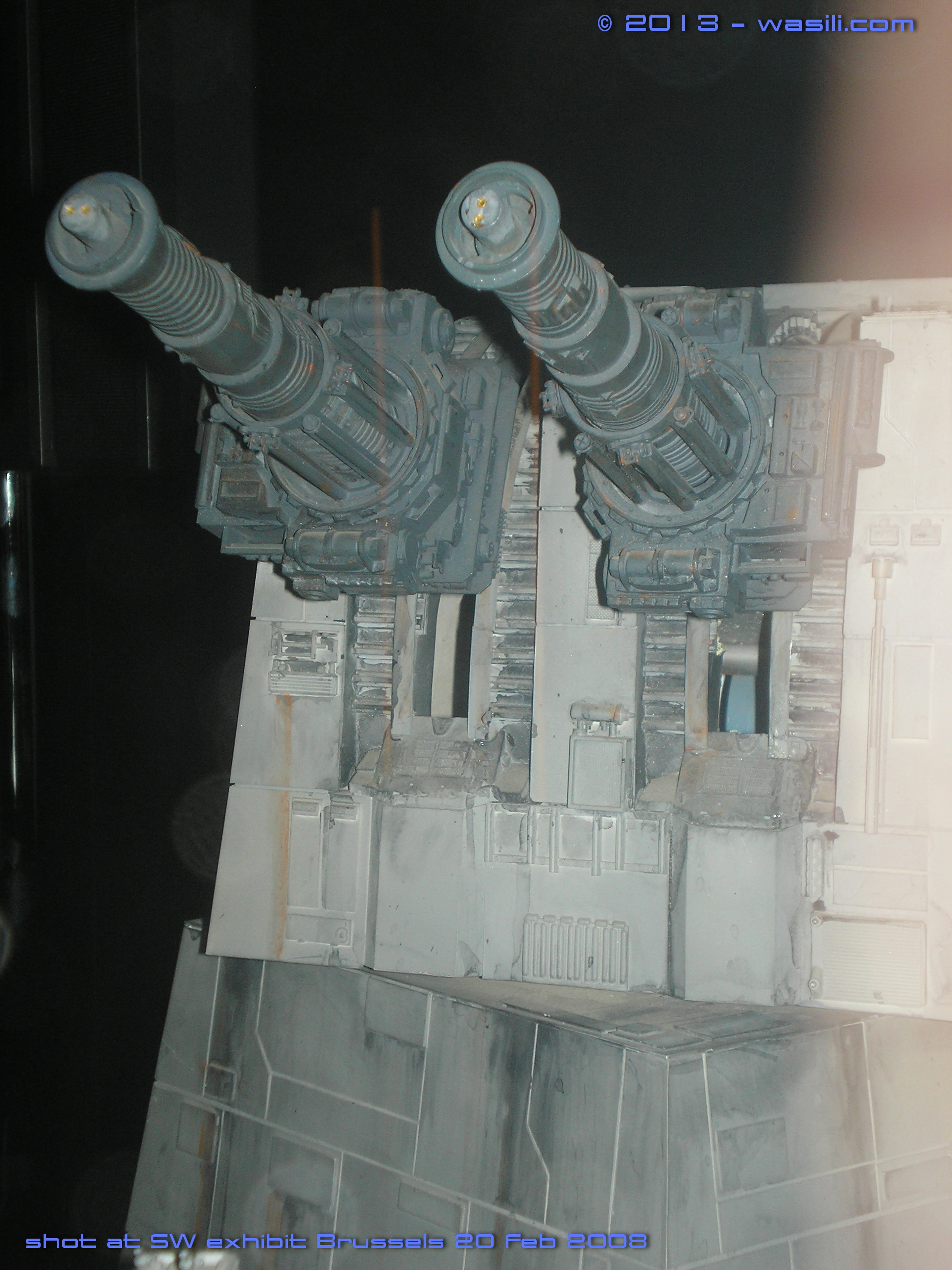 All pics i took of the Death Star Laser Turret (or Turbo laser) at the Star Wars exhibit in Brussels in february 2008. This exhibit was the only one, were the turret was displayed with a rotated top turret.