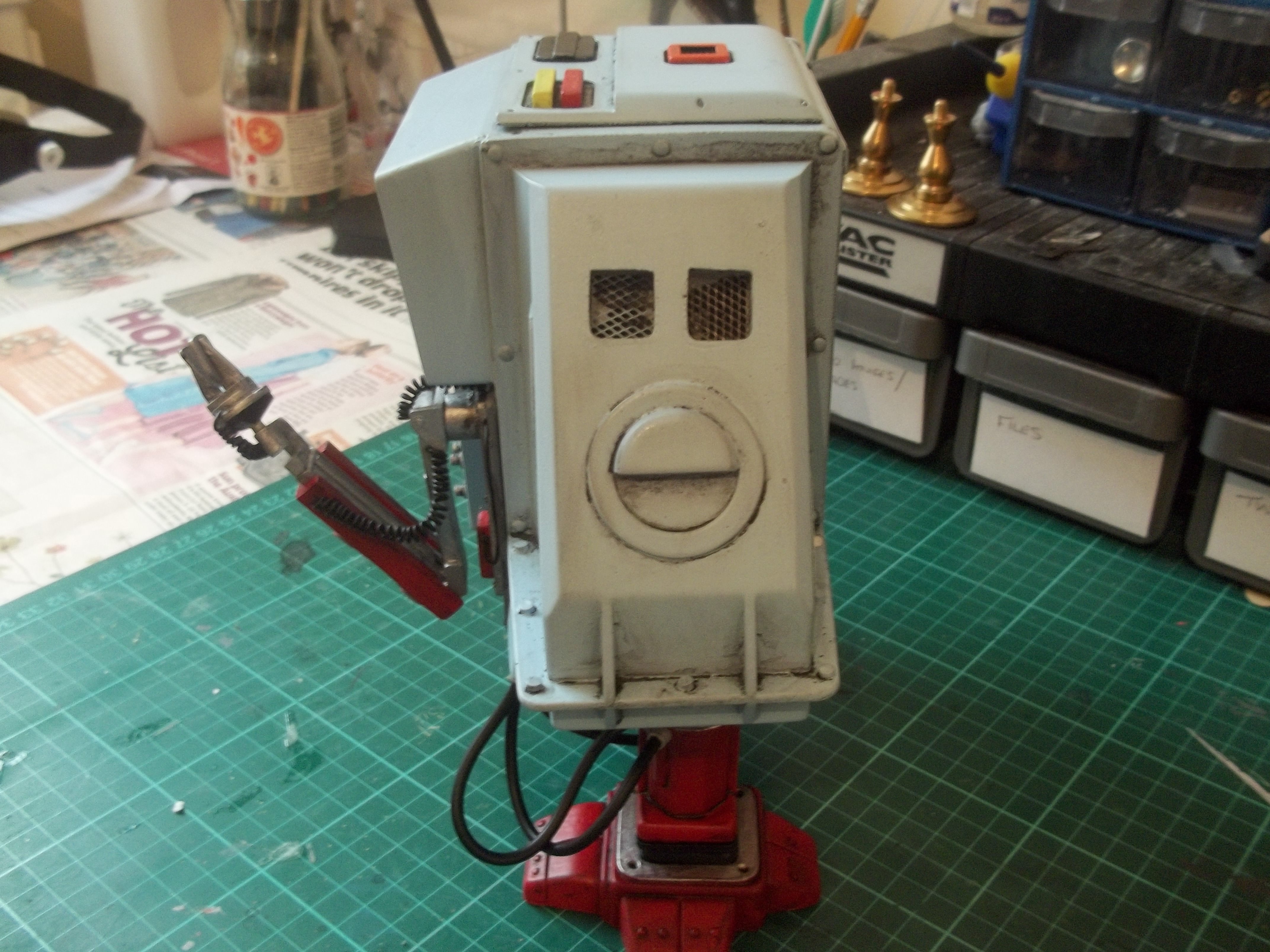 This is my version of Dewey from the 1972 film Silent Running. This superb garage kit is produced by Destiny Models and is a 1/4th scale resin kit. I have added some extra details around the arm, so it is not completely canon. Destiny Models produces all three Drones, this is a wonderful kit!
