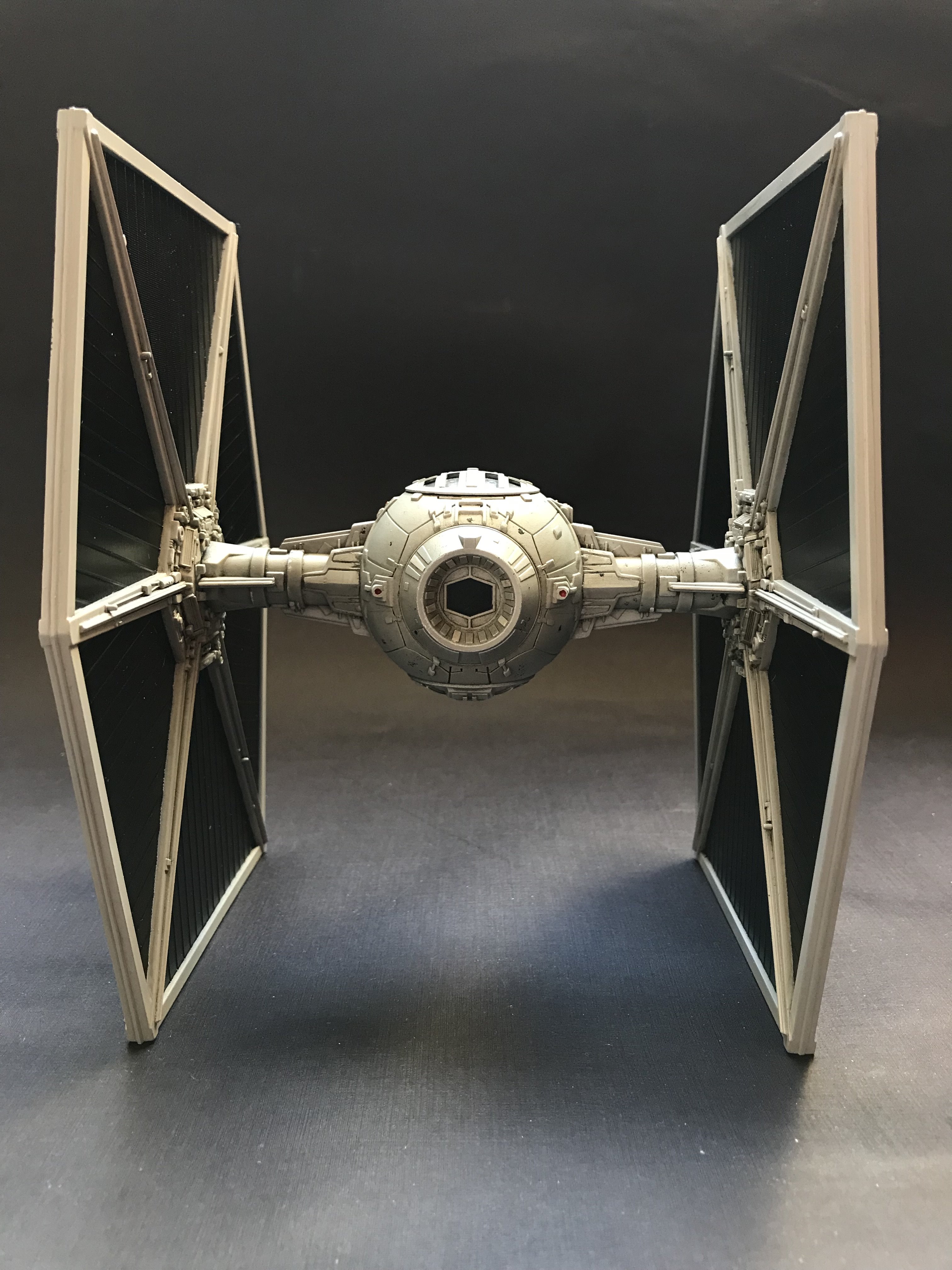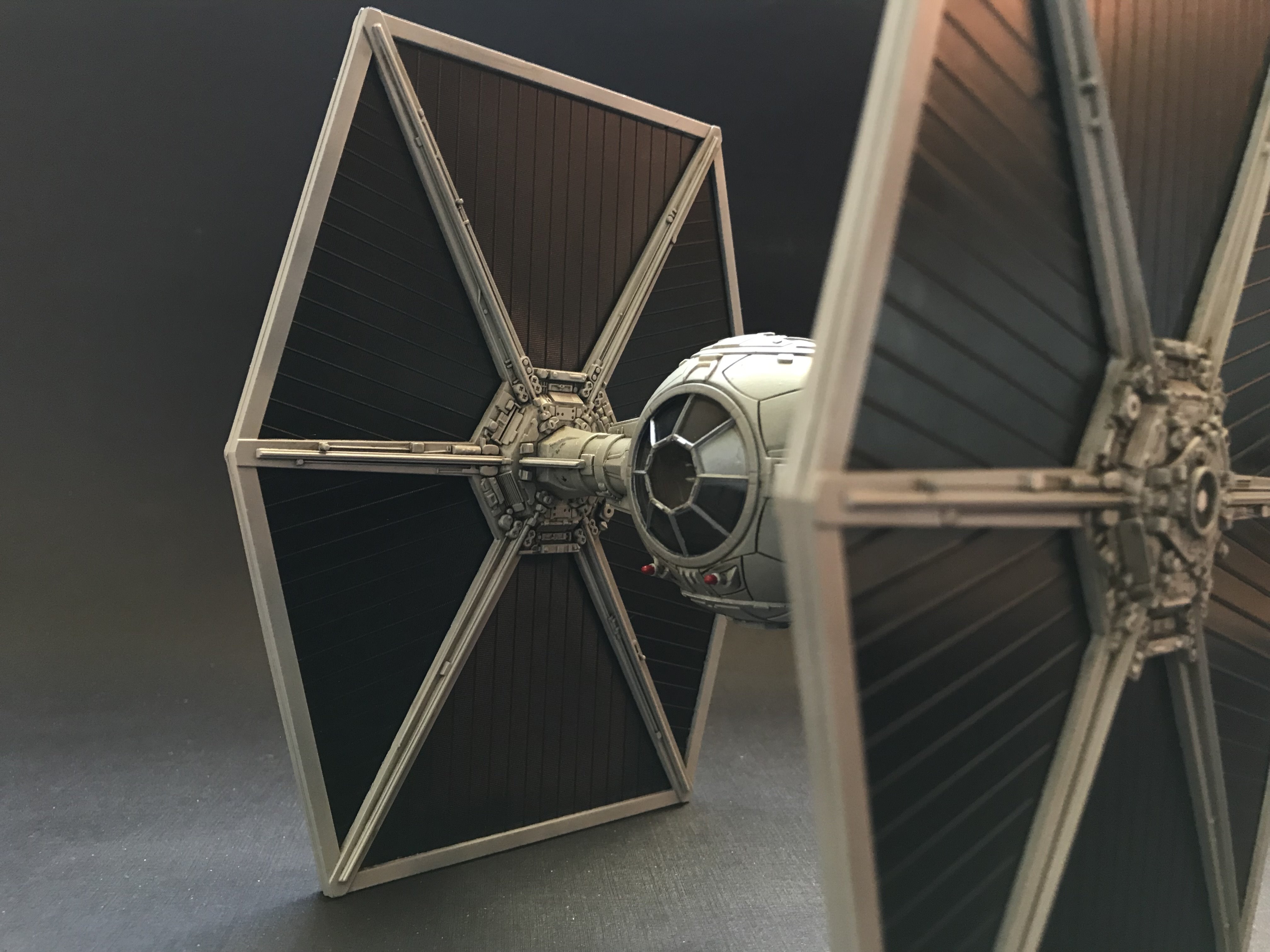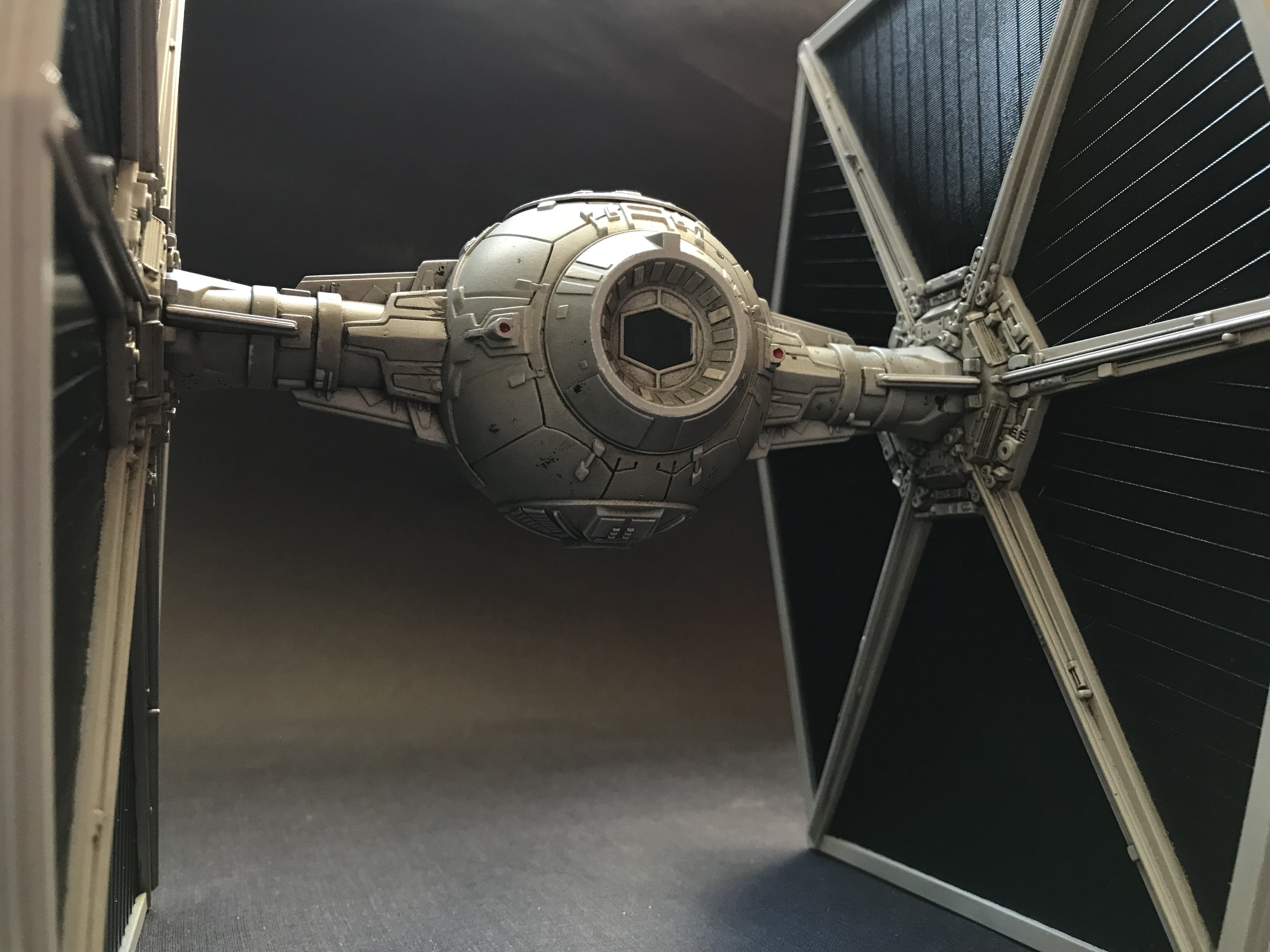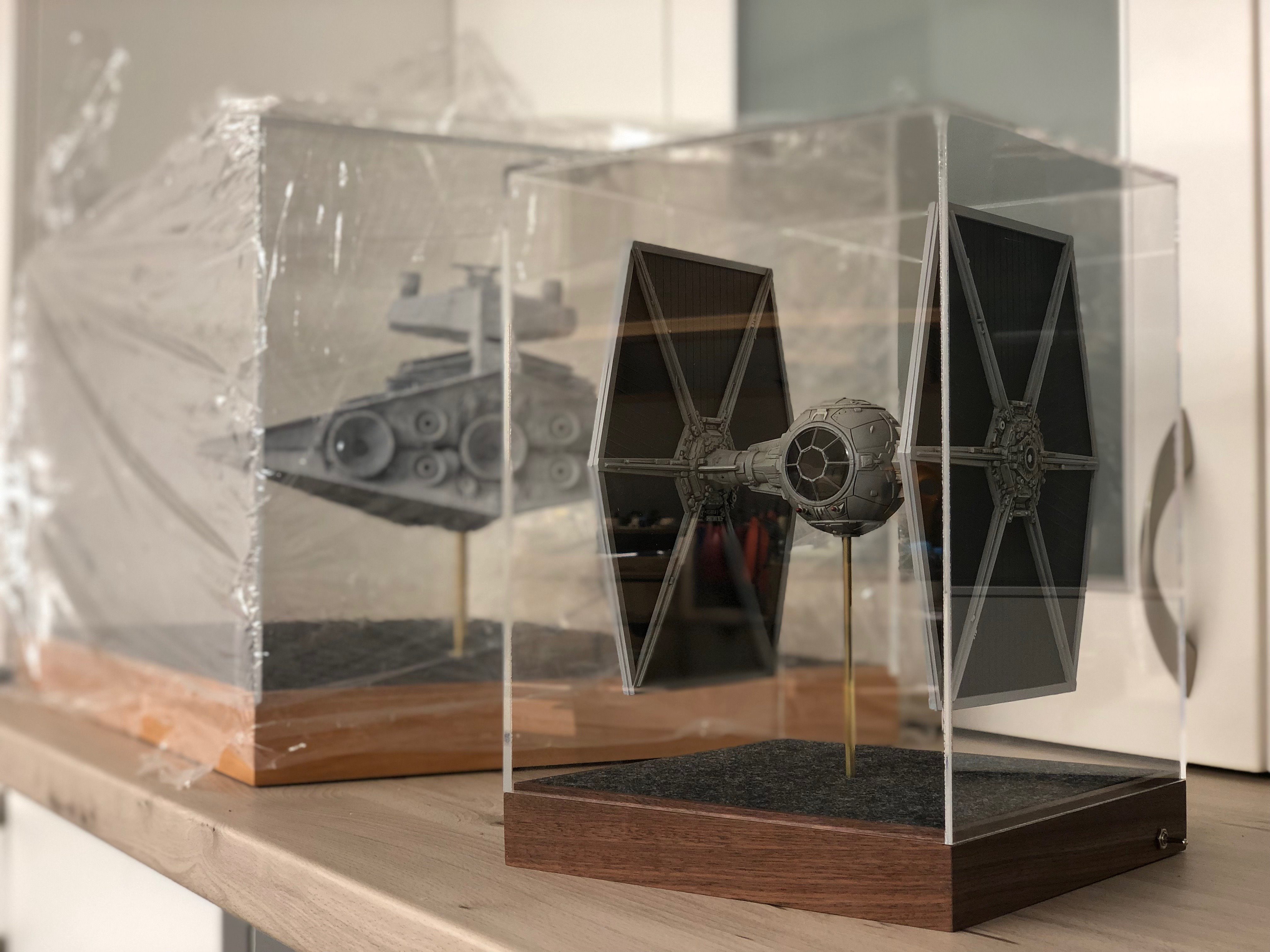 This is the Revell Easykit I had for a while and decided to paint it to train my airbrush skills. Tamiya colors, Starship wash and Streaking fluids from AMMO MIG were used. I tried a bit of decent chipping and dry brushing on this build. The case socket is made from “walnut tree” … , felt and brass. The red cockpit light can be switched on, the LED is integrated in the brass tube stand.