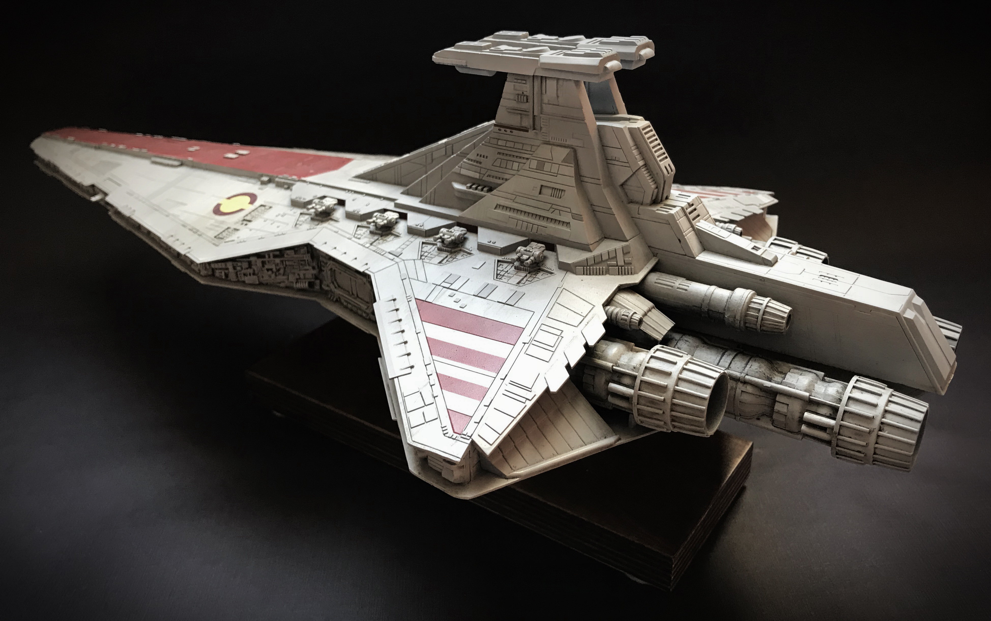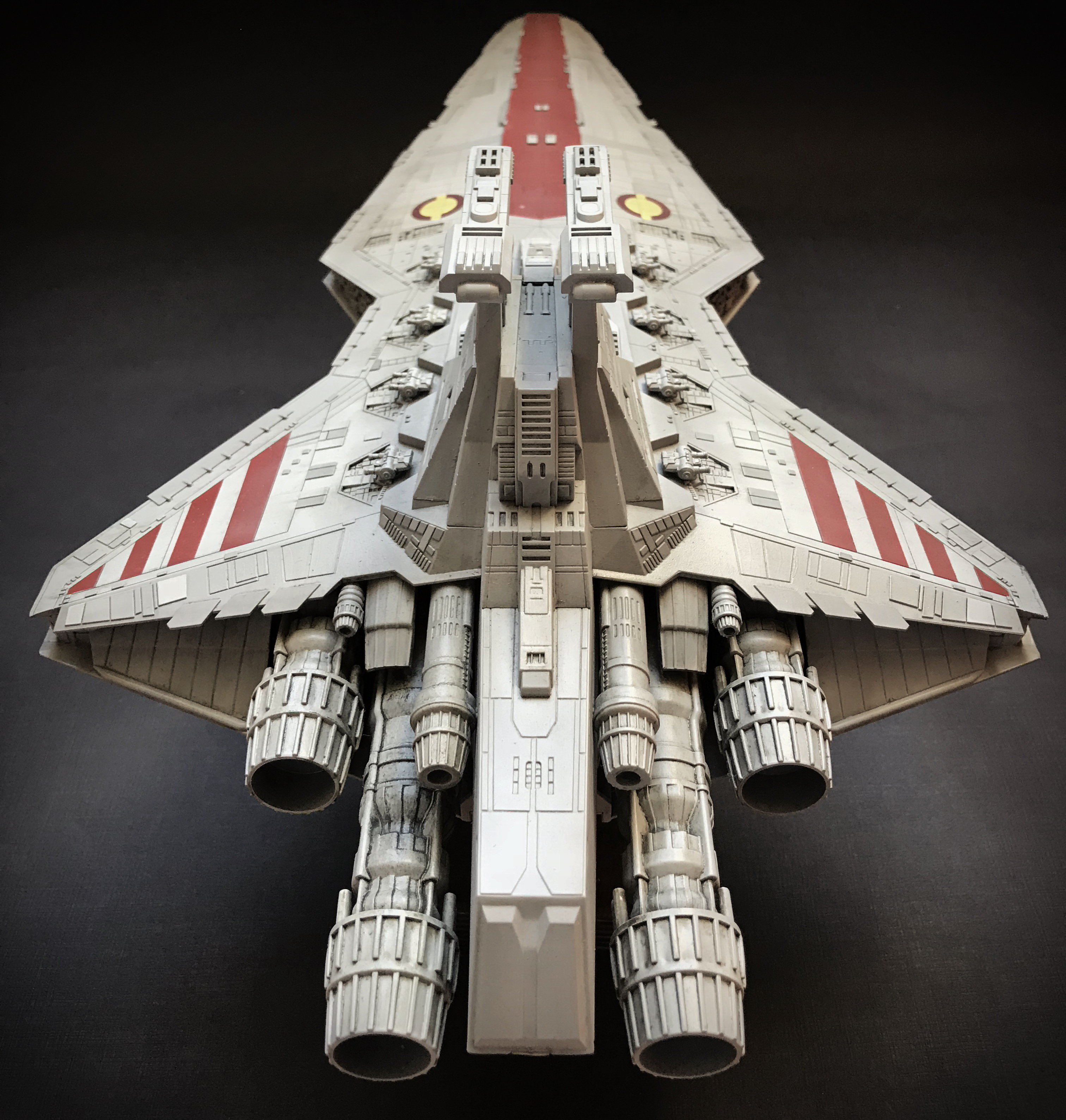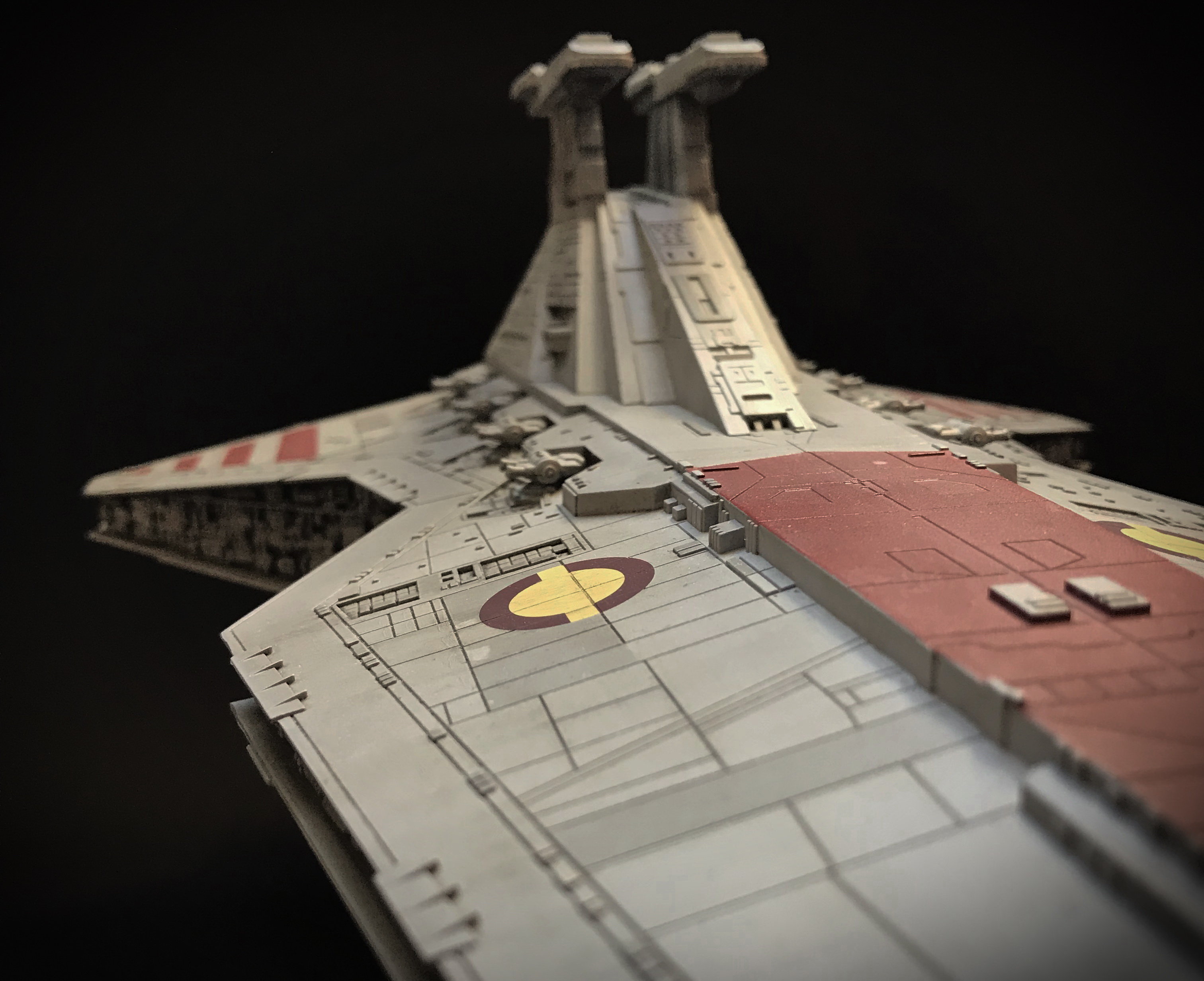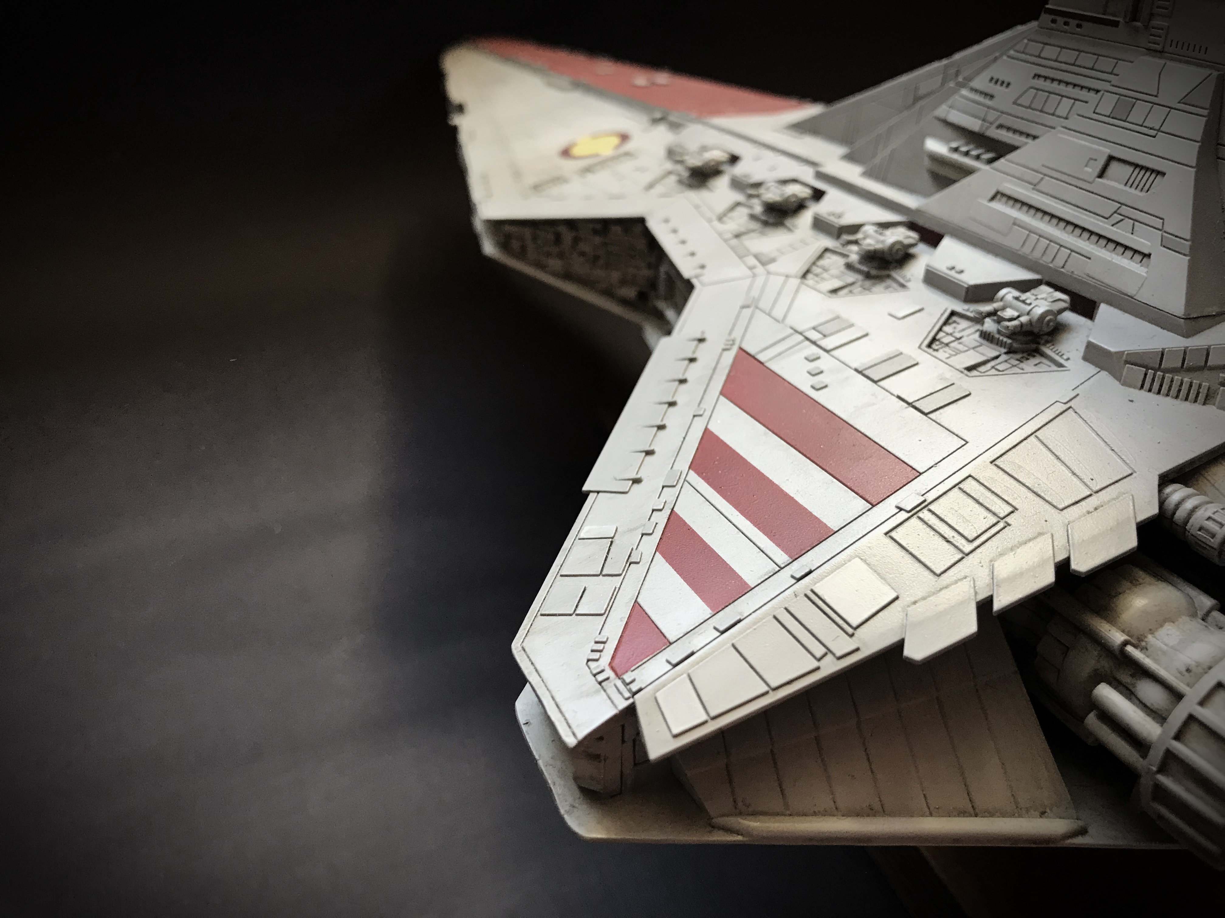 This is the older Revell Kit. The scale is roughly 1:2700. I built this years ago straight OOB. This year I used it as test build to check my airbrush and other skills. I wanted a battleship, plain and simple, with not much coloring, and a decent “used” look. Tamiya colors, Starship wash and Streaking fluids from AMMO MIG were used. The stand is brass and stained wood which were polished then.