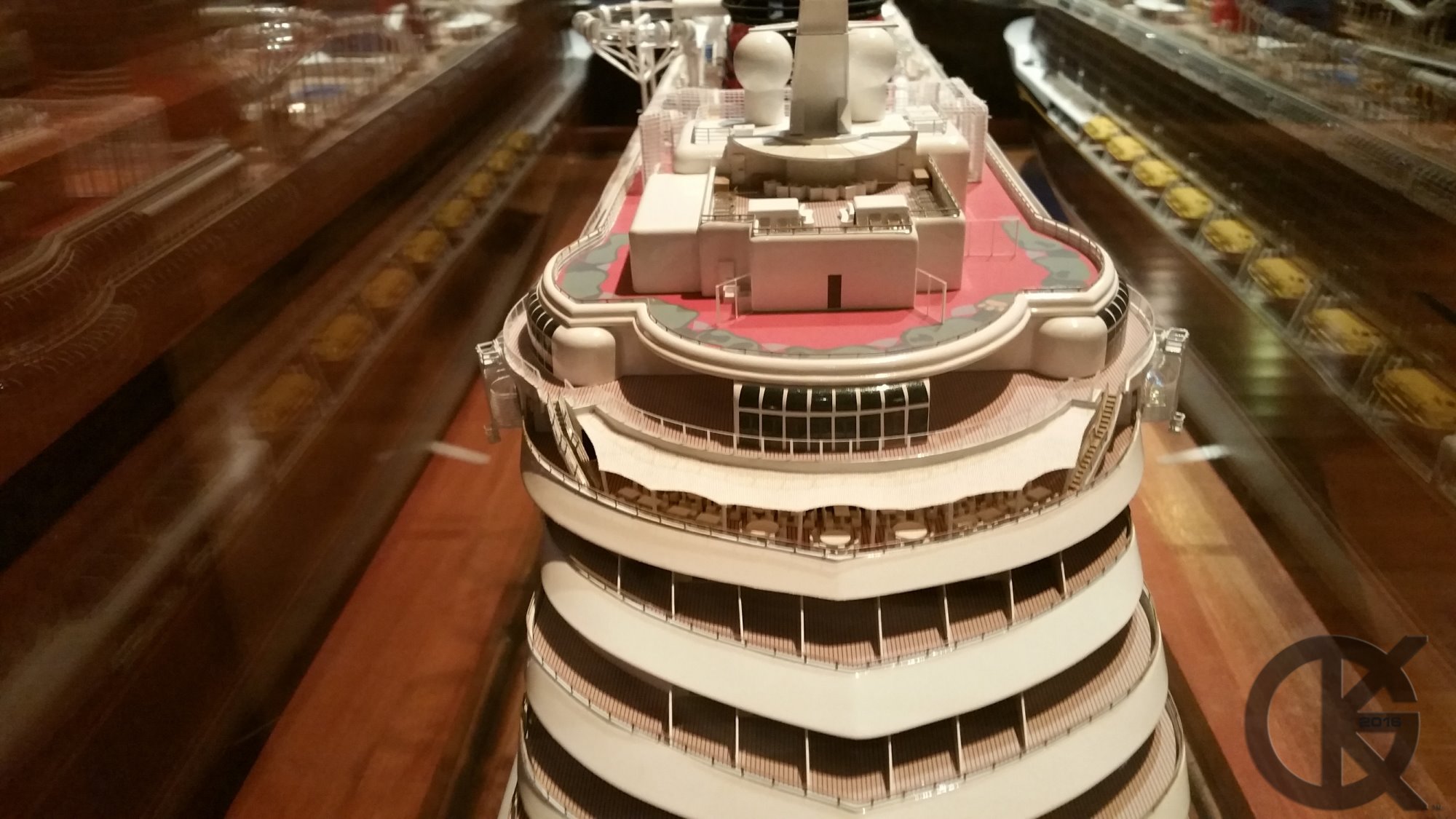 I was walking around the Disneyland Resort recently and I decided to take a few photos of some of the miniatures Disney has displayed there. This one, the Disney Fantasy Cruise Ship, is displayed off to the side of the Reception area at the California Adventure Hotel. It is a highly detailed miniature that is about 6 to 8 feet long… (my apology as I did not measure at the time and was in a bit of a hurry when I took the photos). This piece is quite fantastic, and very much what this art form represents. Great job by the Disney Imagineers…. whom very well could be one of you Viewers! To you I say…Excellent work!
