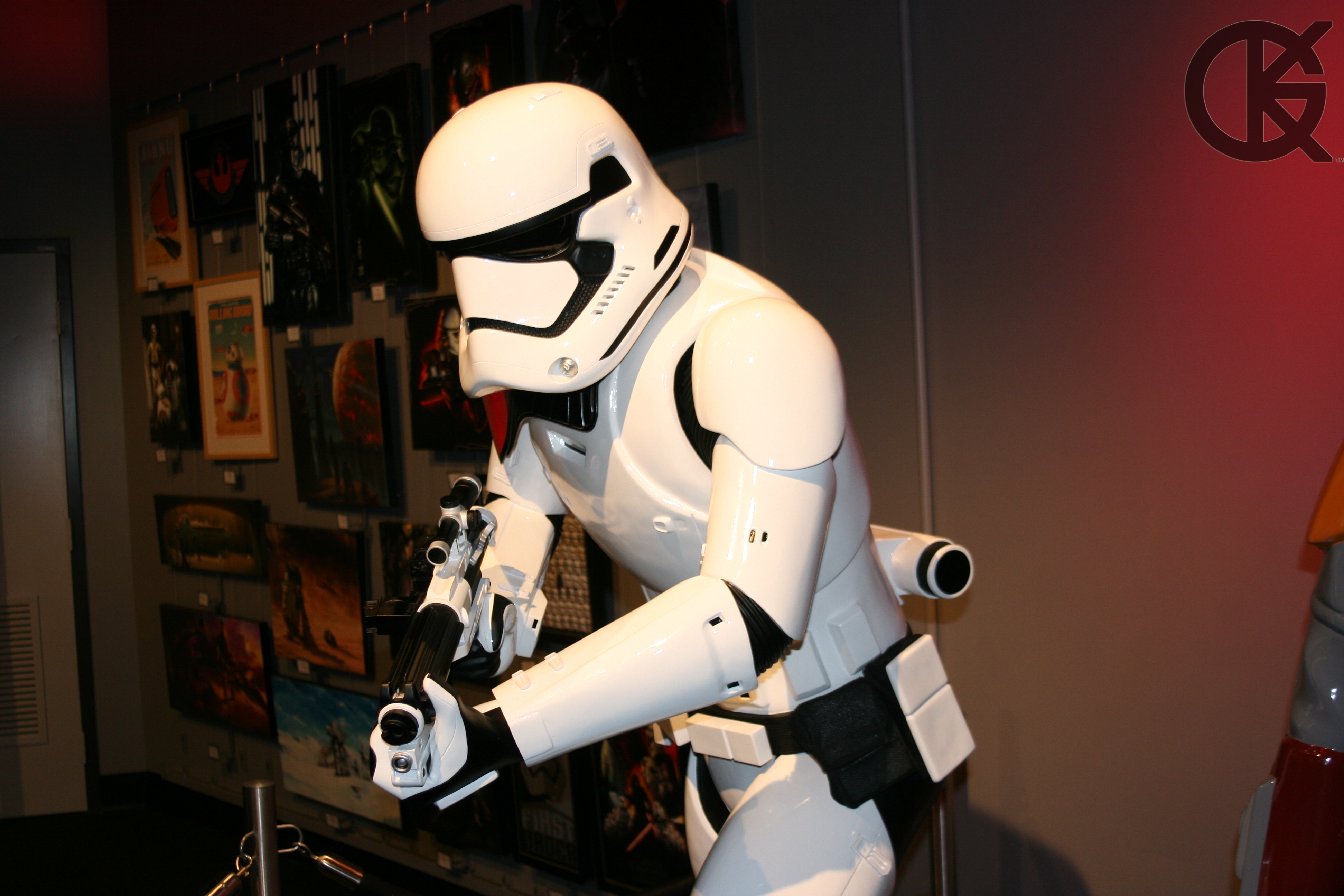 Some interesting things I noted of the models…. The T-65 X-Wing displayed looks to me to be the EFX Model Replica… which is not surprising since they hold the license for studio model replicas. The TFA T-70 X-Wing was clearly not 1:24 scale, and is much larger…. I estimate 1:20 to 1:18 scale. Plus… somebody please open those wings!! For whatever reason, any photos I have seen of this replica, including it on display in my own photos, the wings are barely opened, and do not show the true aggressive beauty of the design, or the model. I call upon you Disney to fix that post haste please? Another observation was the TFA Falcon on display. It is clearly much larger than the 32 inch studio scale version, but not as large as the 5 foot version. With it on display behind glass, and the tilt it is on, I estimate it to be about 40 inches long… which I admit is kind of a cool scale to view. The Devastator replica was quite fantastic in it’s original, bare look of 1977, as was the 6 foot Blockade Runner, and all the other models on display from all the Star Wars Films. The full sized Trooper displays were also well received.