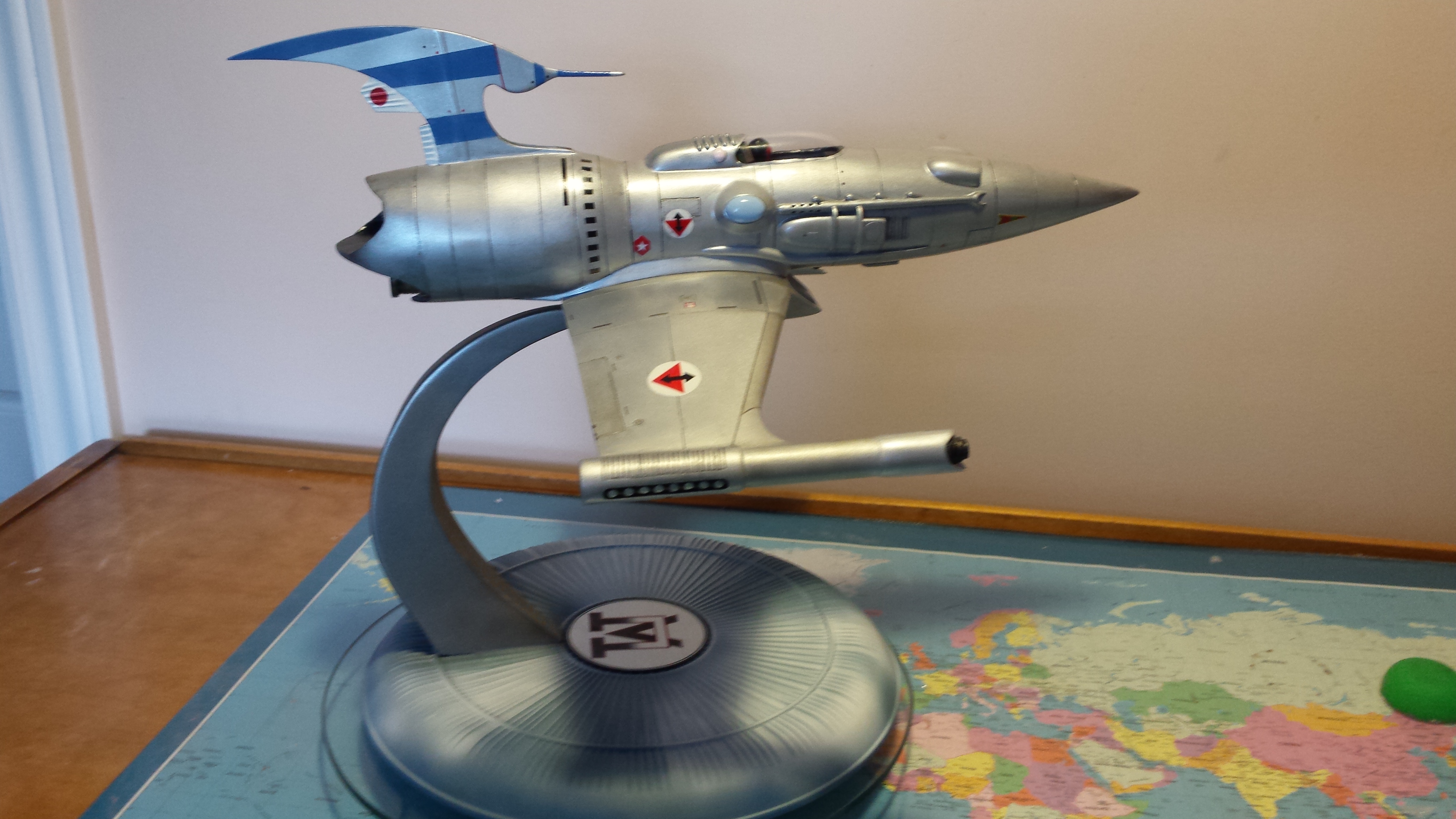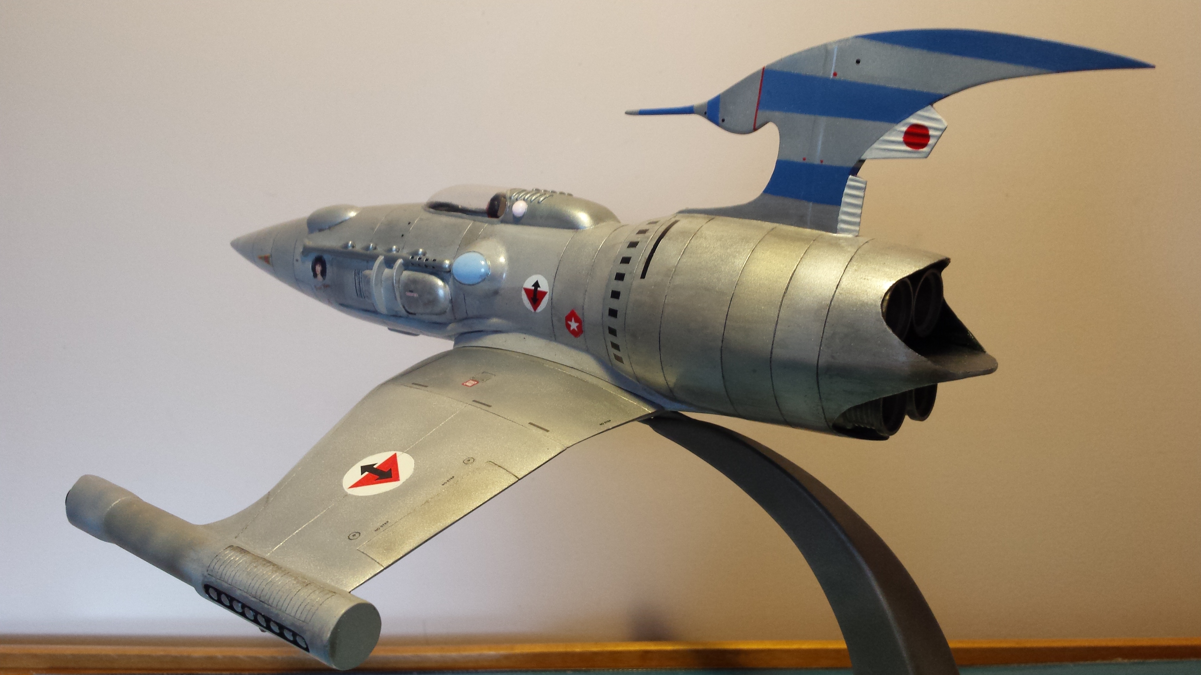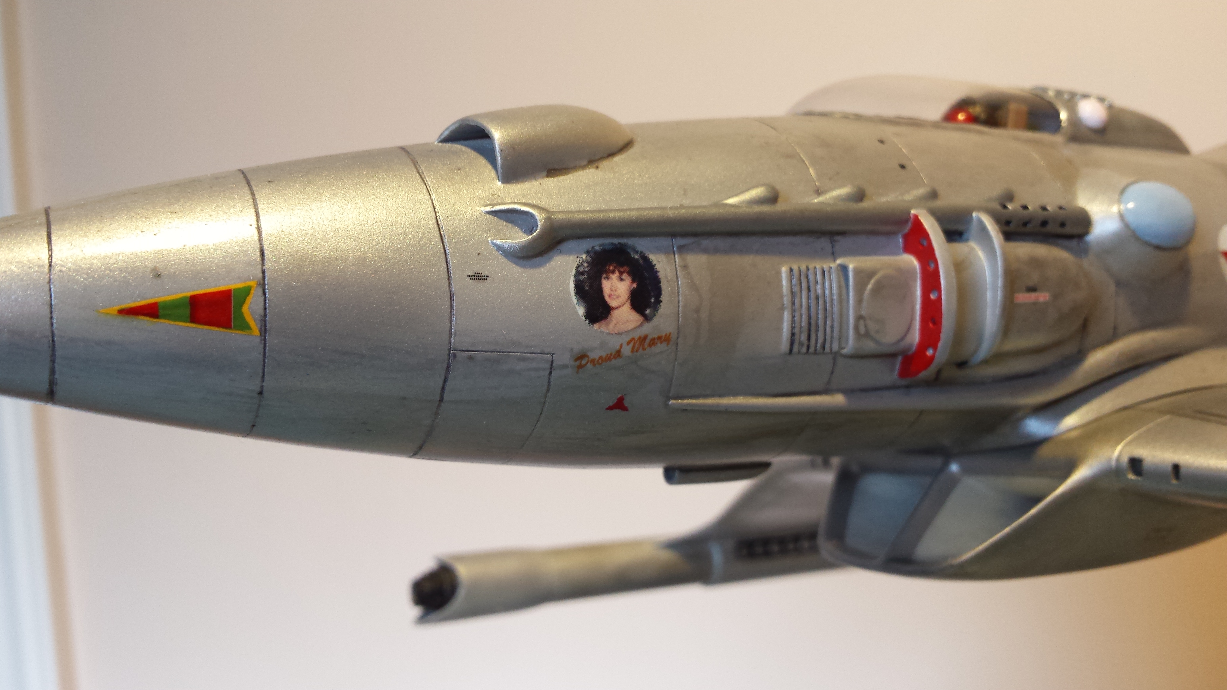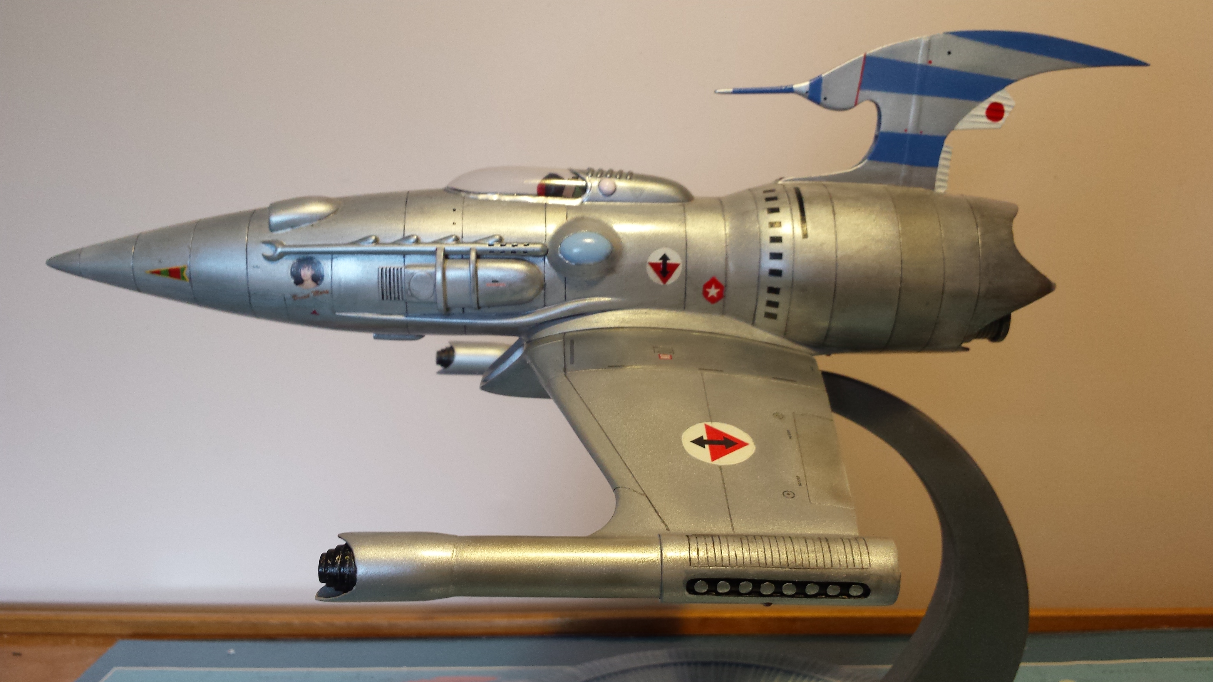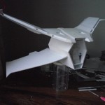 This build was inspired by Bob Layzell’s painting used in the Terran Trade Authority book Great Space Battles. It is in 1/32 scale, has lighted engines top, bottom and wingtip lights and a lighted cockpit. Decals are cobbled together from various decal sheets and some custom work by Stephen Loftus.