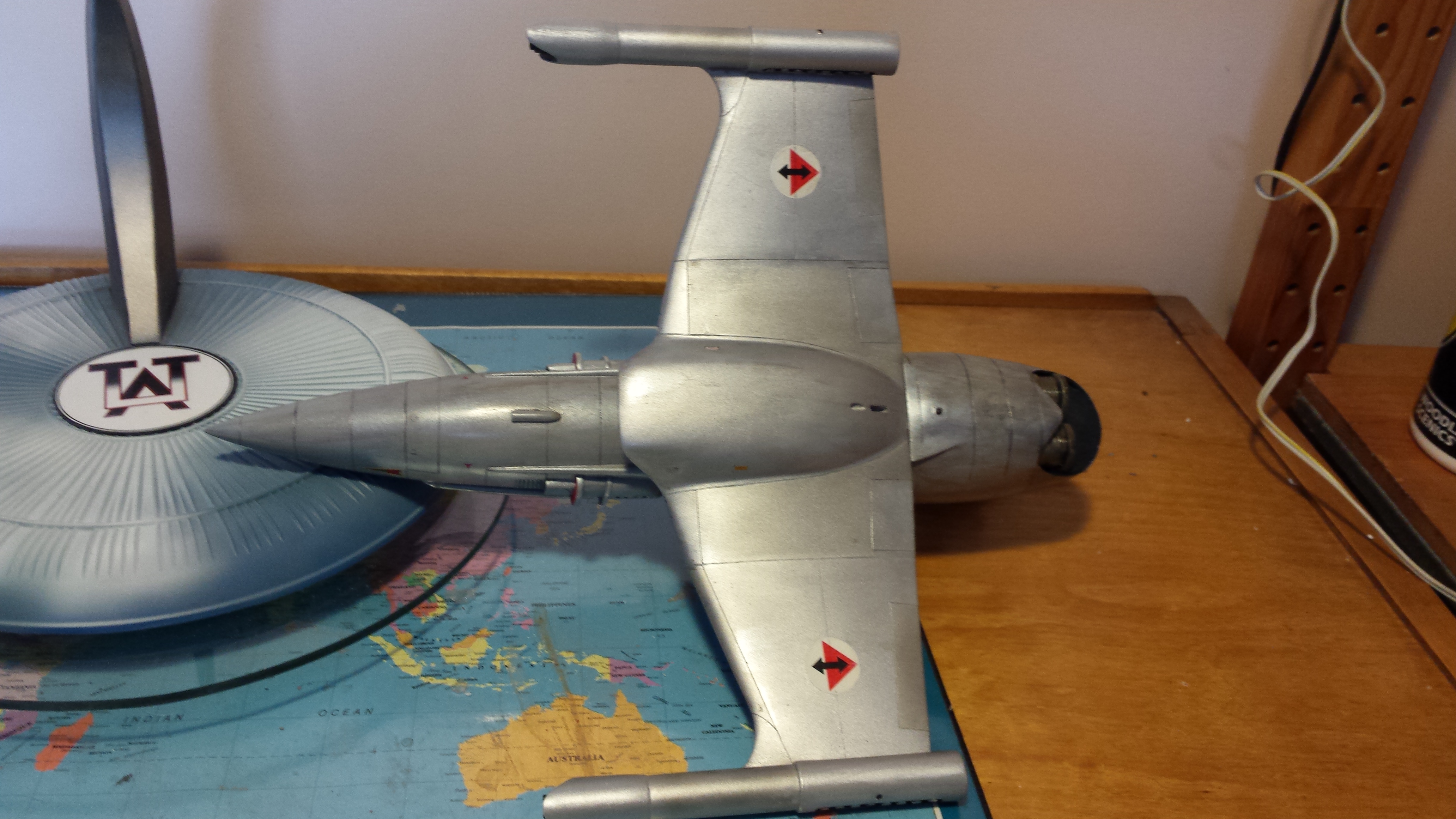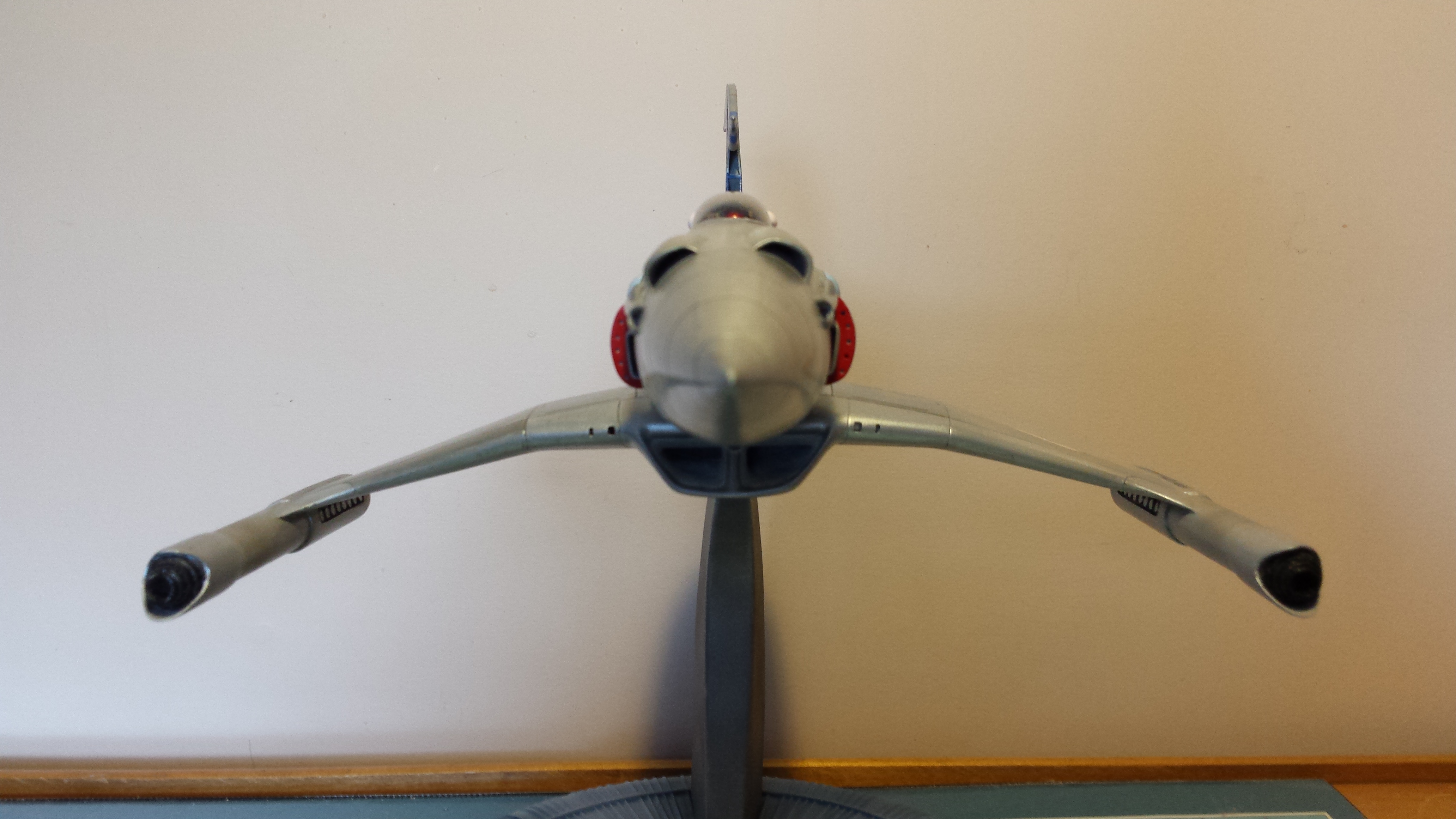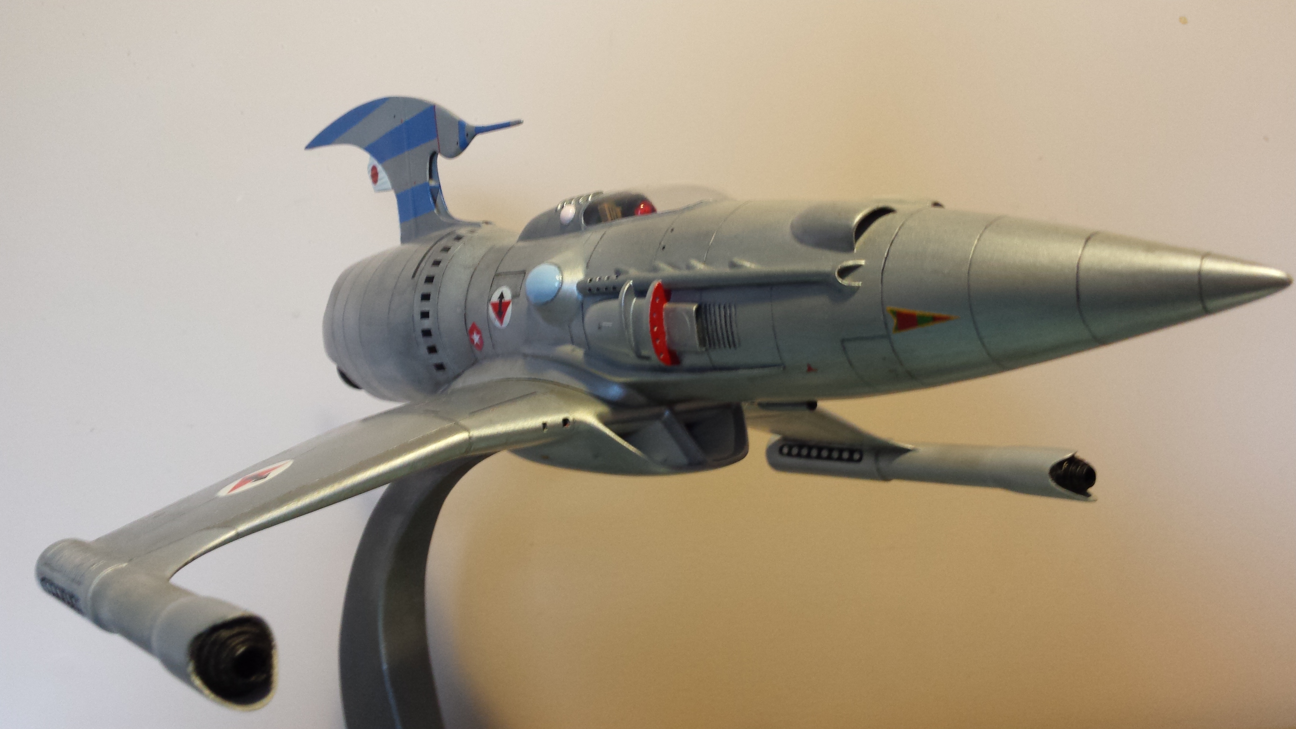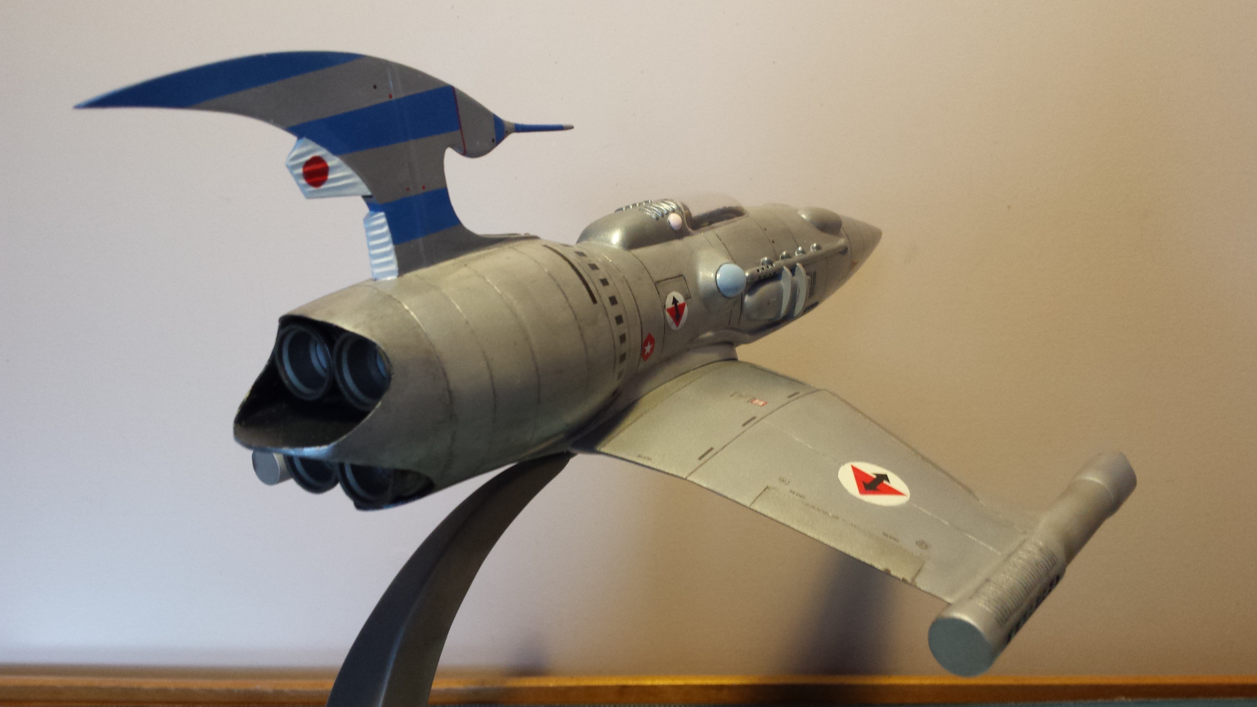 This build was inspired by Bob Layzell’s painting used in the Terran Trade Authority book Great Space Battles. It is in 1/32 scale, has lighted engines top, bottom and wingtip lights and a lighted cockpit. Decals are cobbled together from various decal sheets and some custom work by Stephen Loftus.
