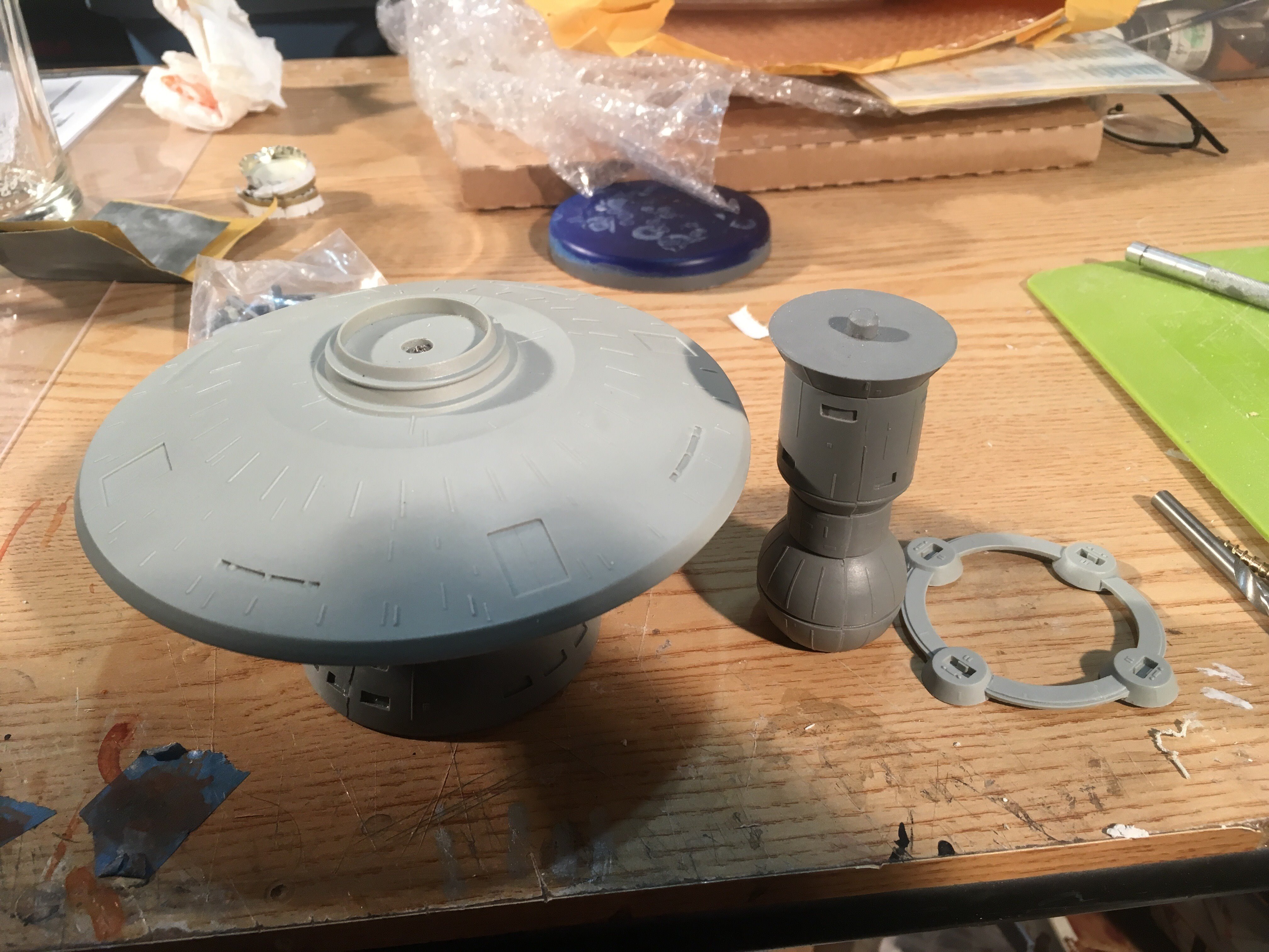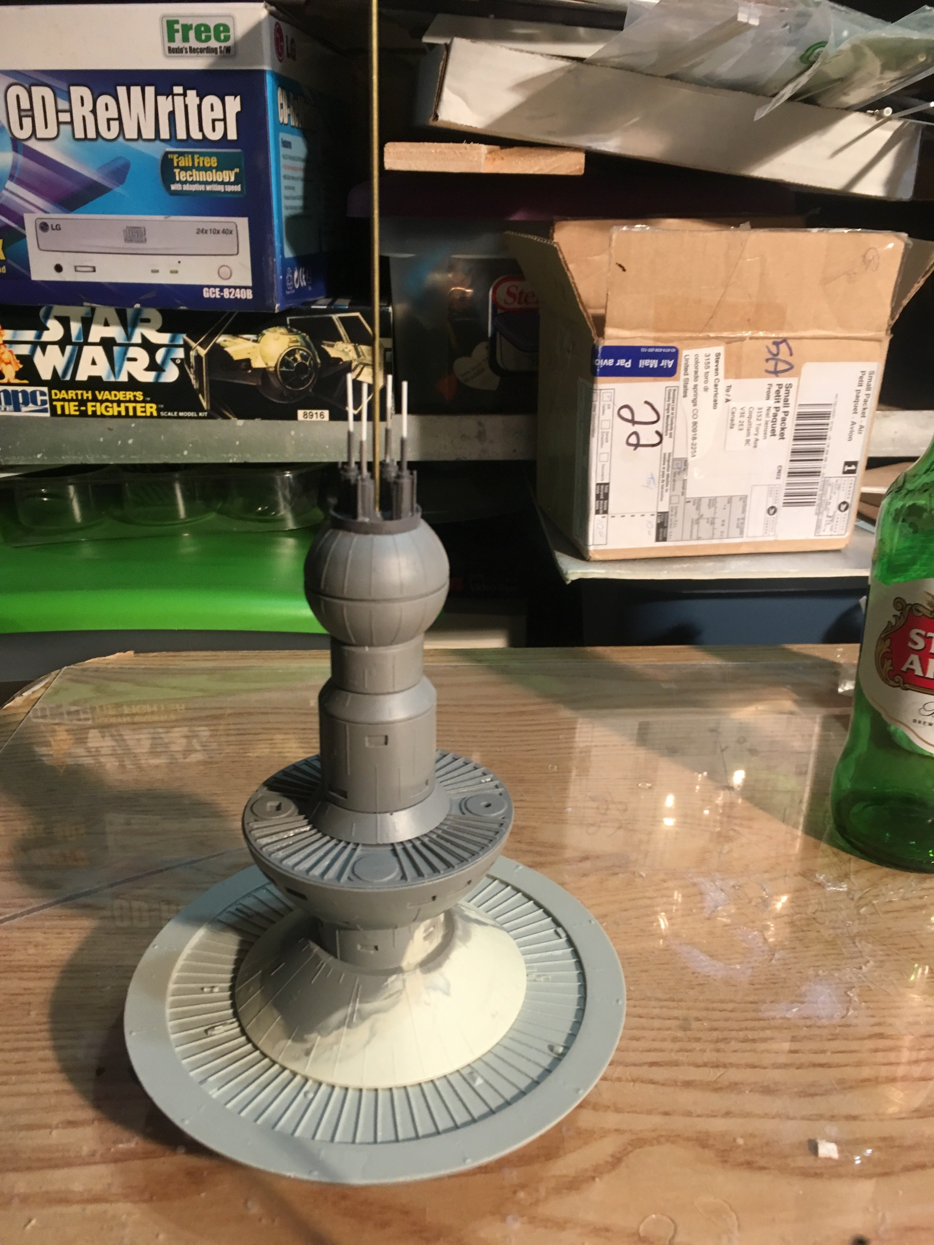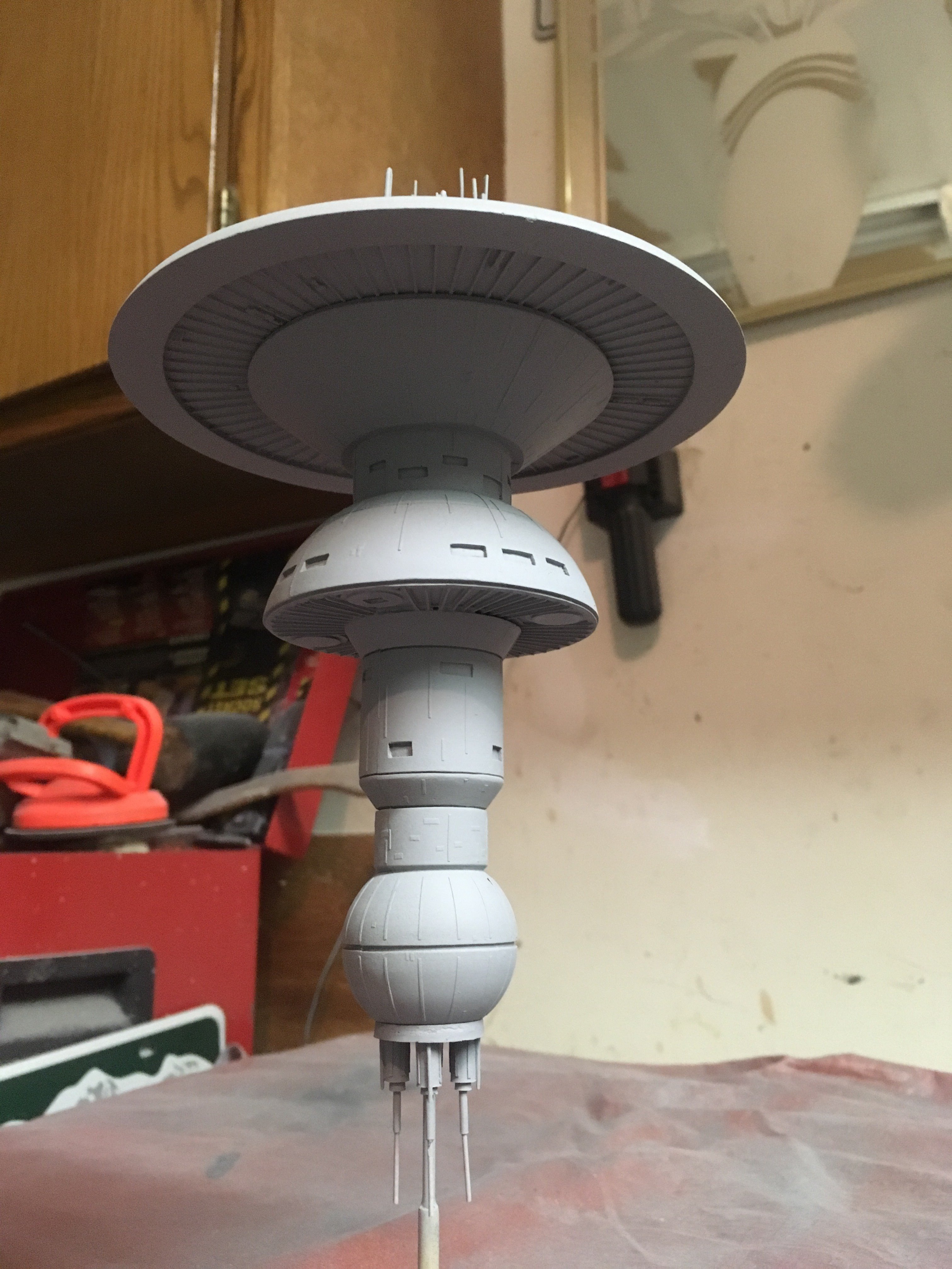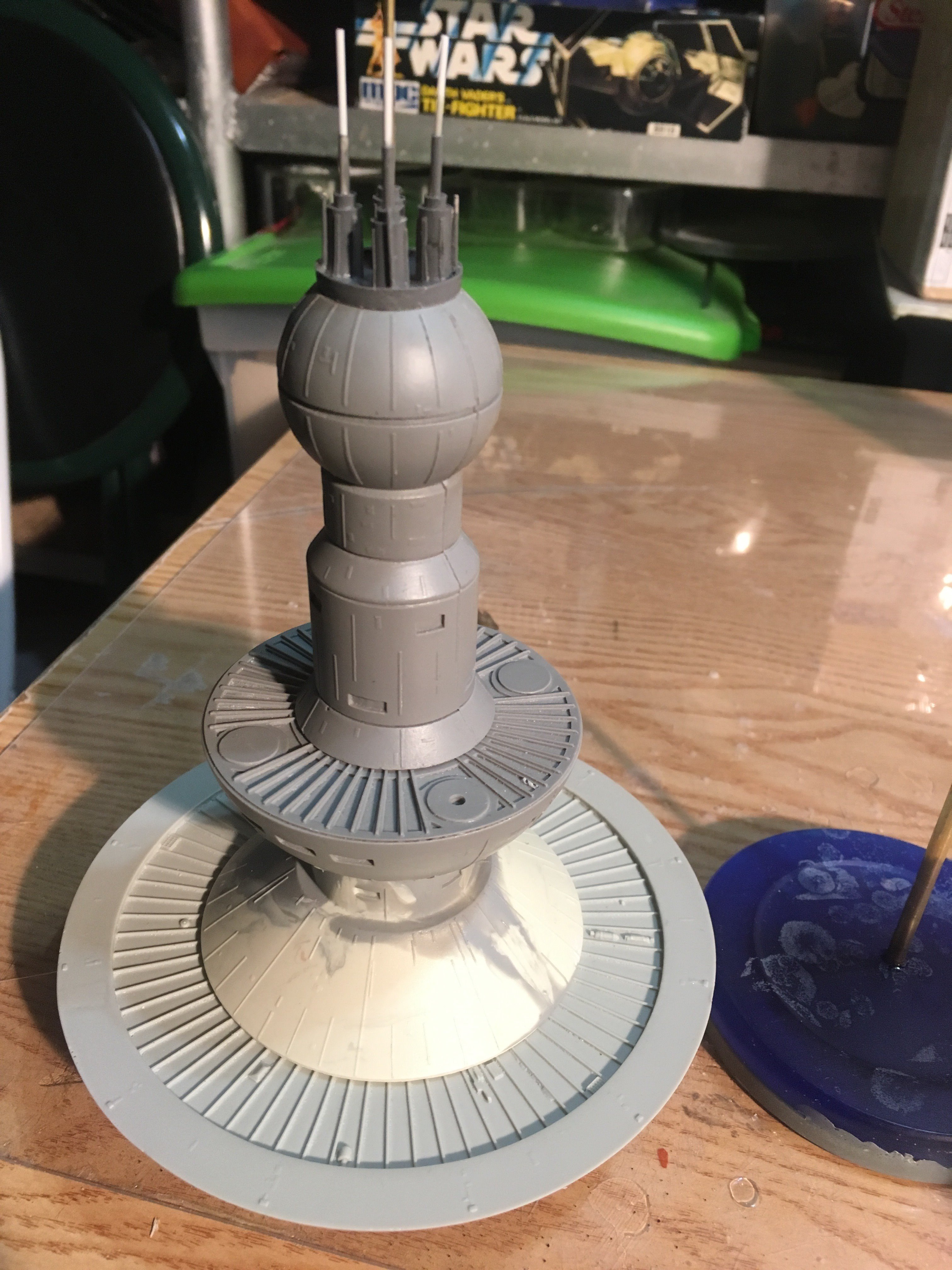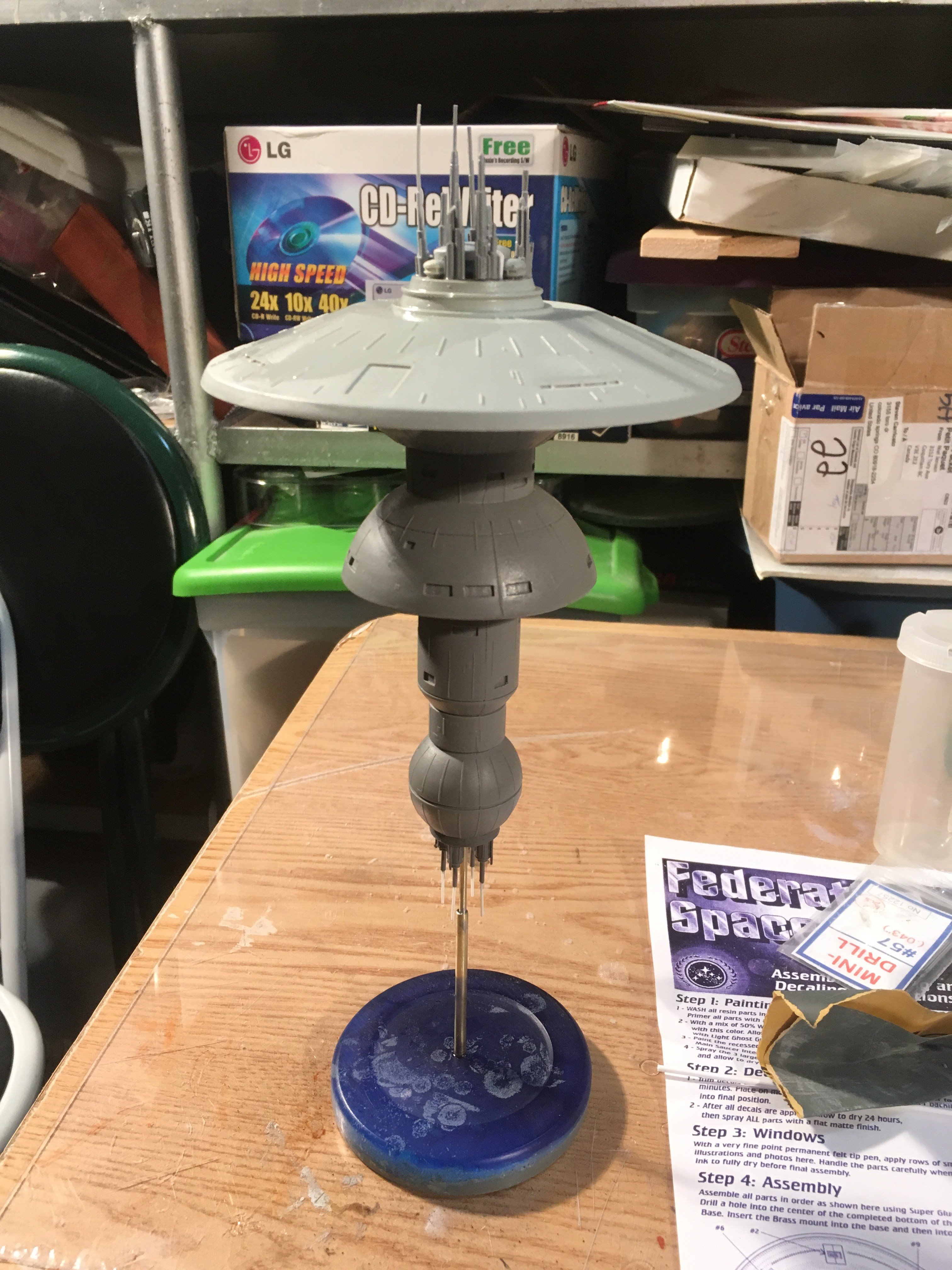 I finished another commission build for a client,.. the Starfleet Space Dock). He wanted a simple paint job, with the painted on black dots for the windows. The kit is from Federation Models, and is all resin. I added decals and shading. The decals are from the Enterprise 1701-C 1:1000 scale kit.