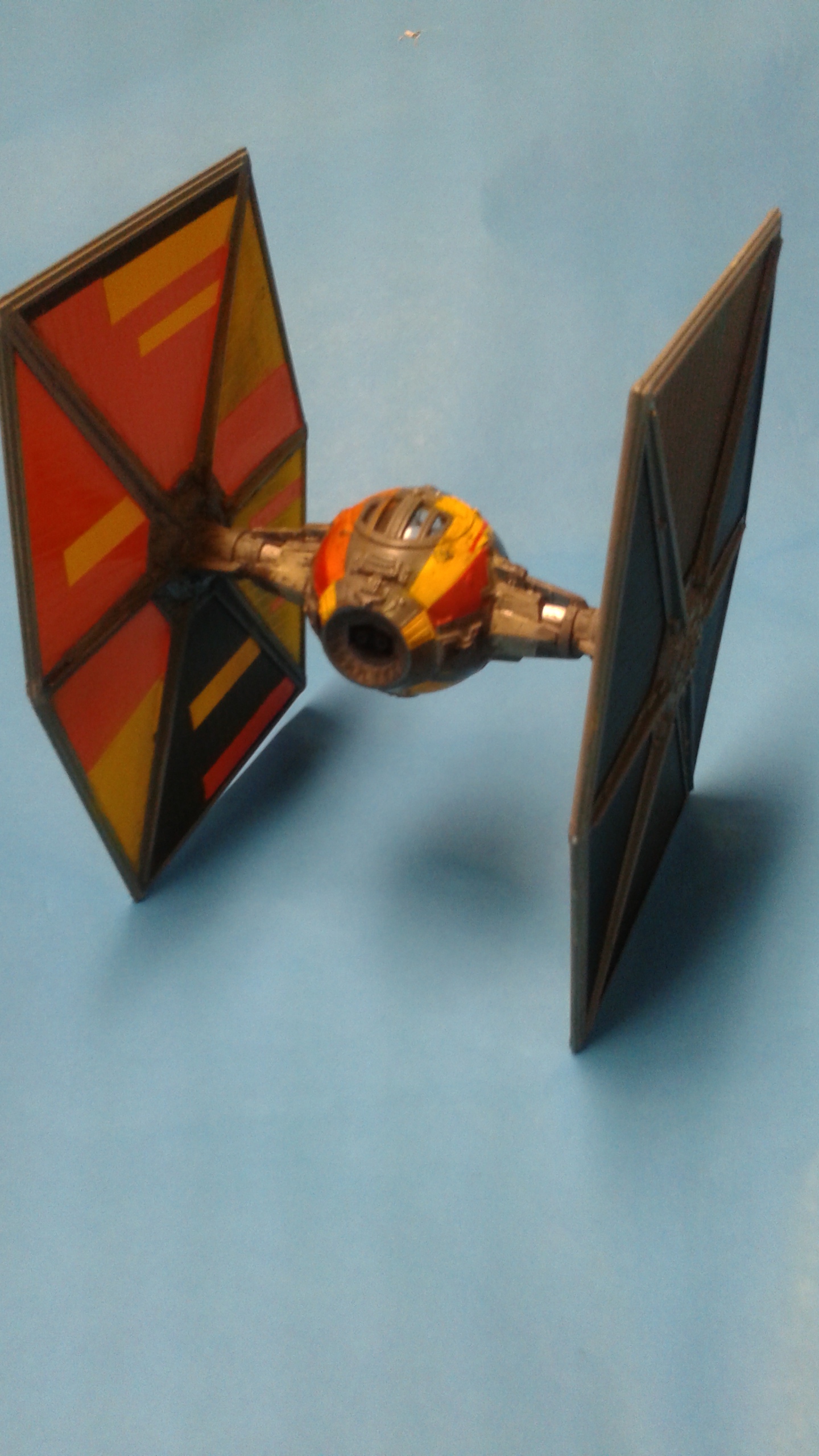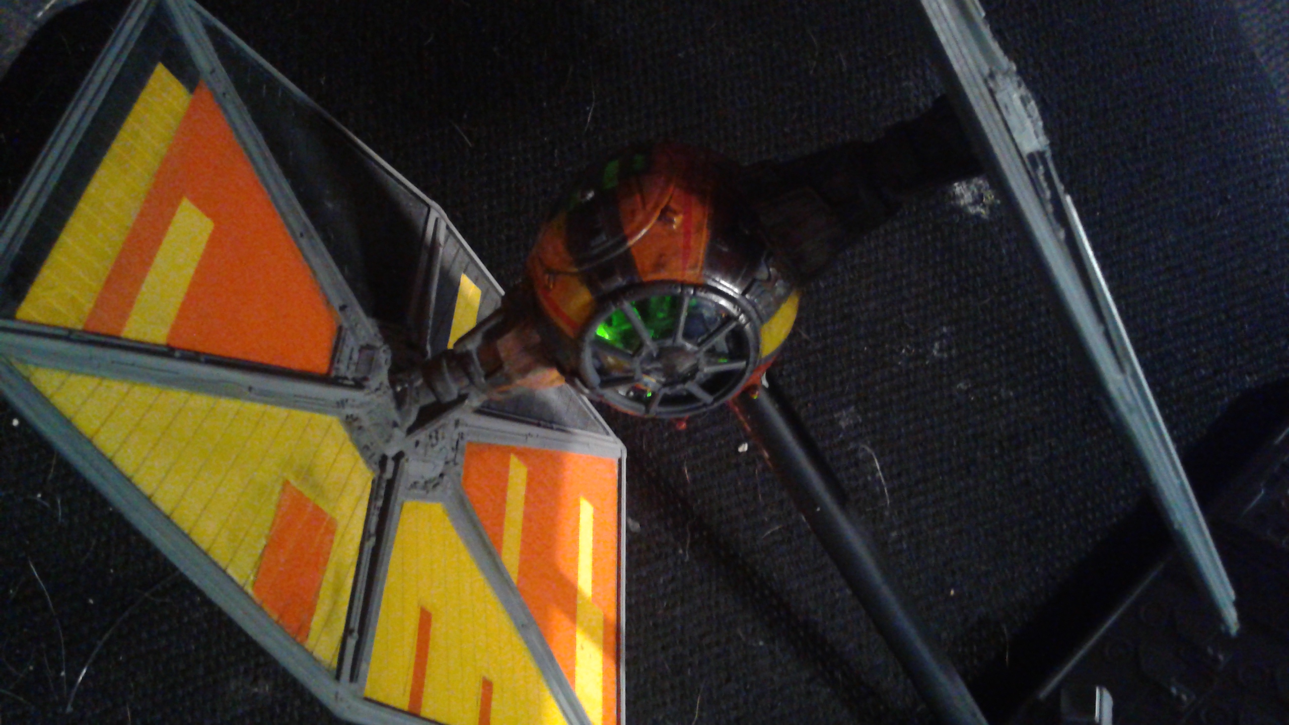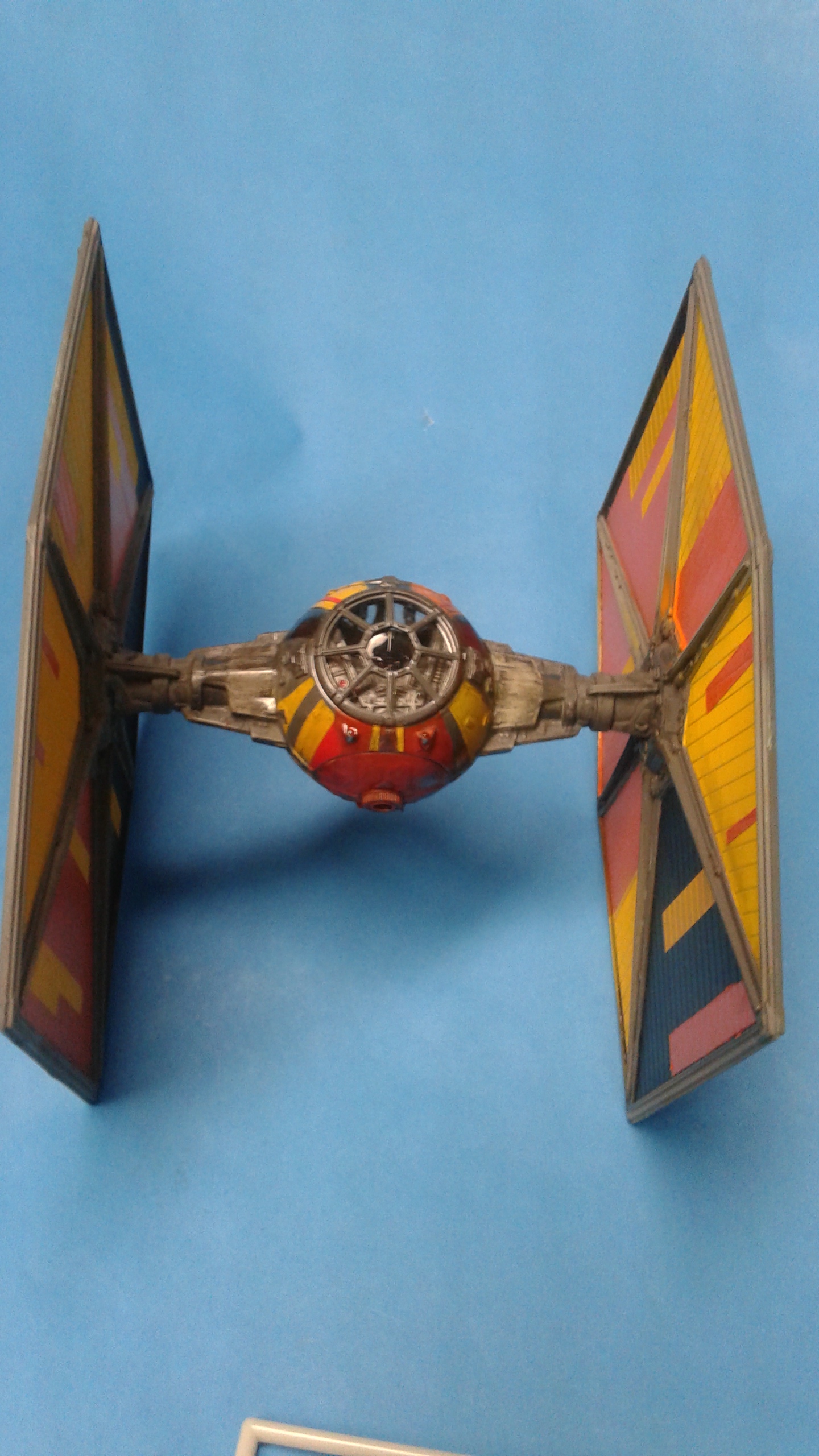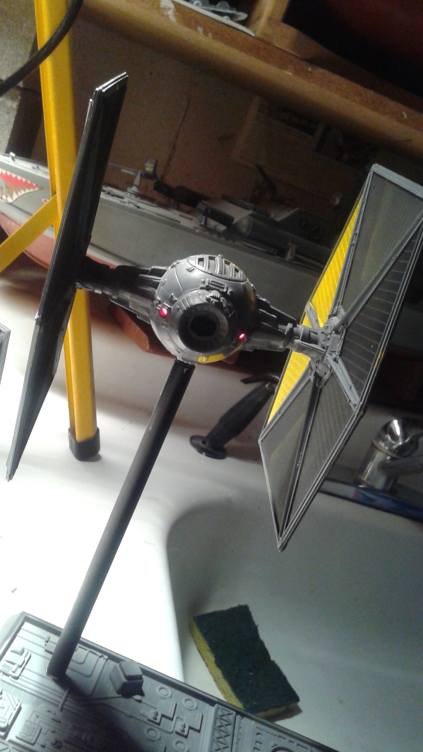 I built this “Rebel Republic TIE Fighter”, from the CGI STAR WARS “Star Wars REBELS” series. It’s not exactly like the stolen rogue fighter in the series, but close. I add weathering and change up the paint scheme a little to make it my own.The cockpit light up with a green LED and the Ion engines are red. Also the Ion Lazer canon’s are green. However if anyone is interested I would sell my Rebel I TIE fighter for $500.+SH $19.95 World wide call for price. Or I can customize one for you if you !