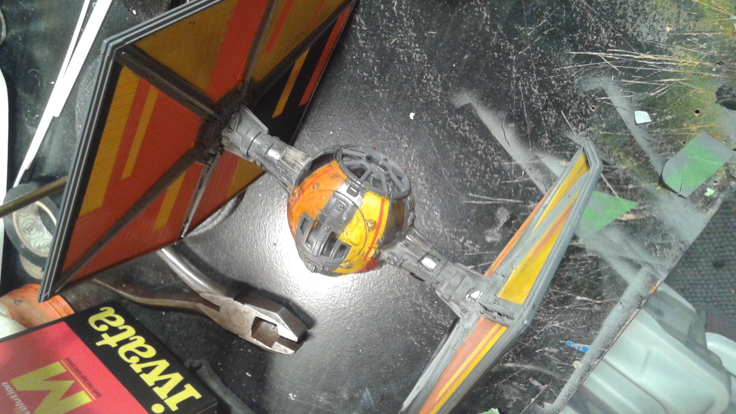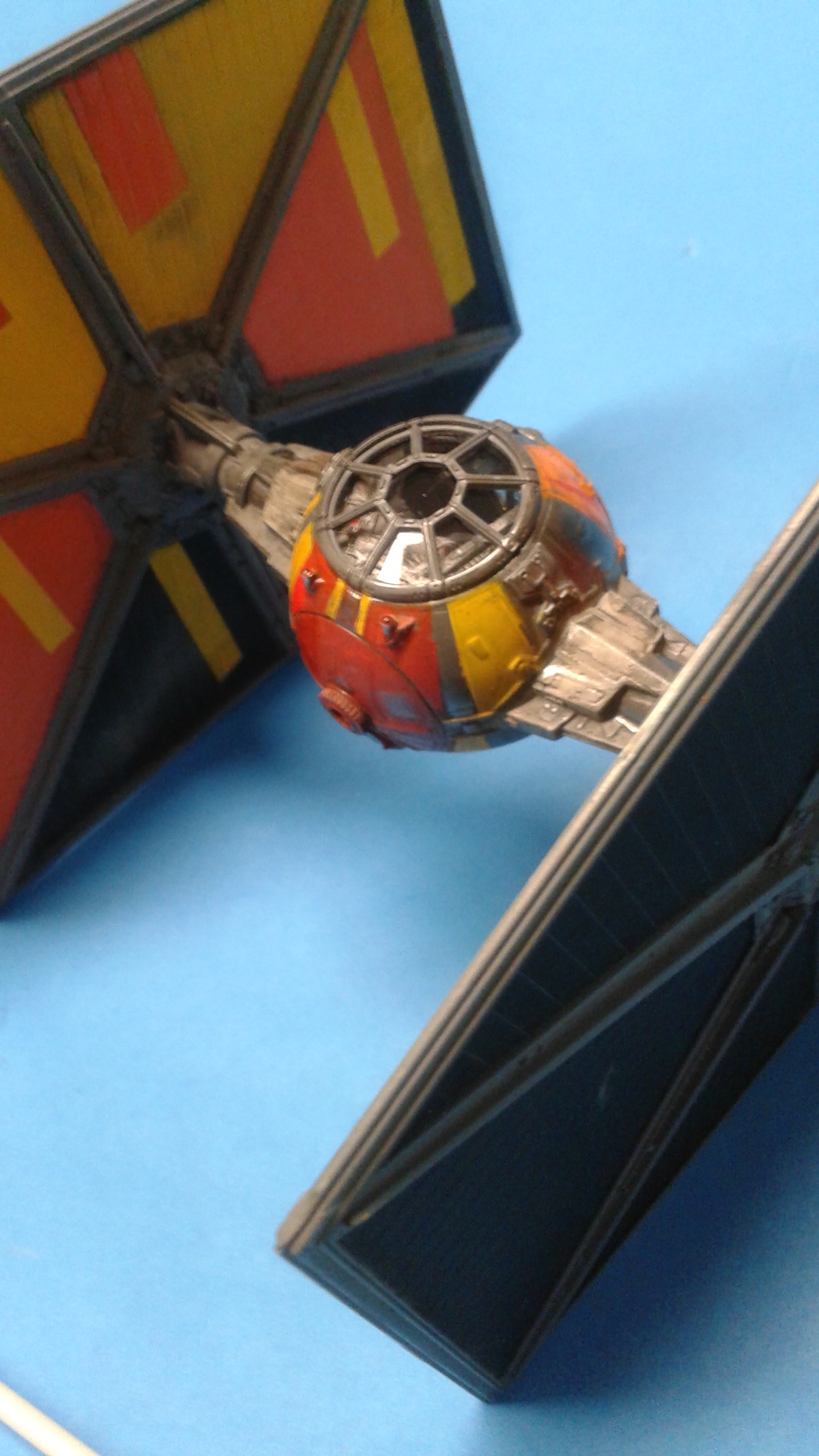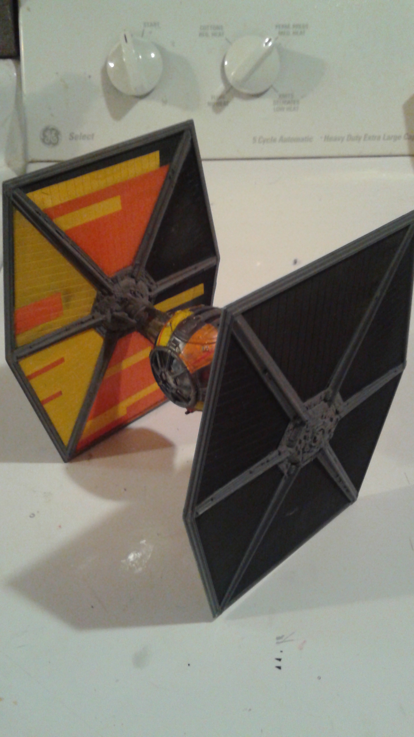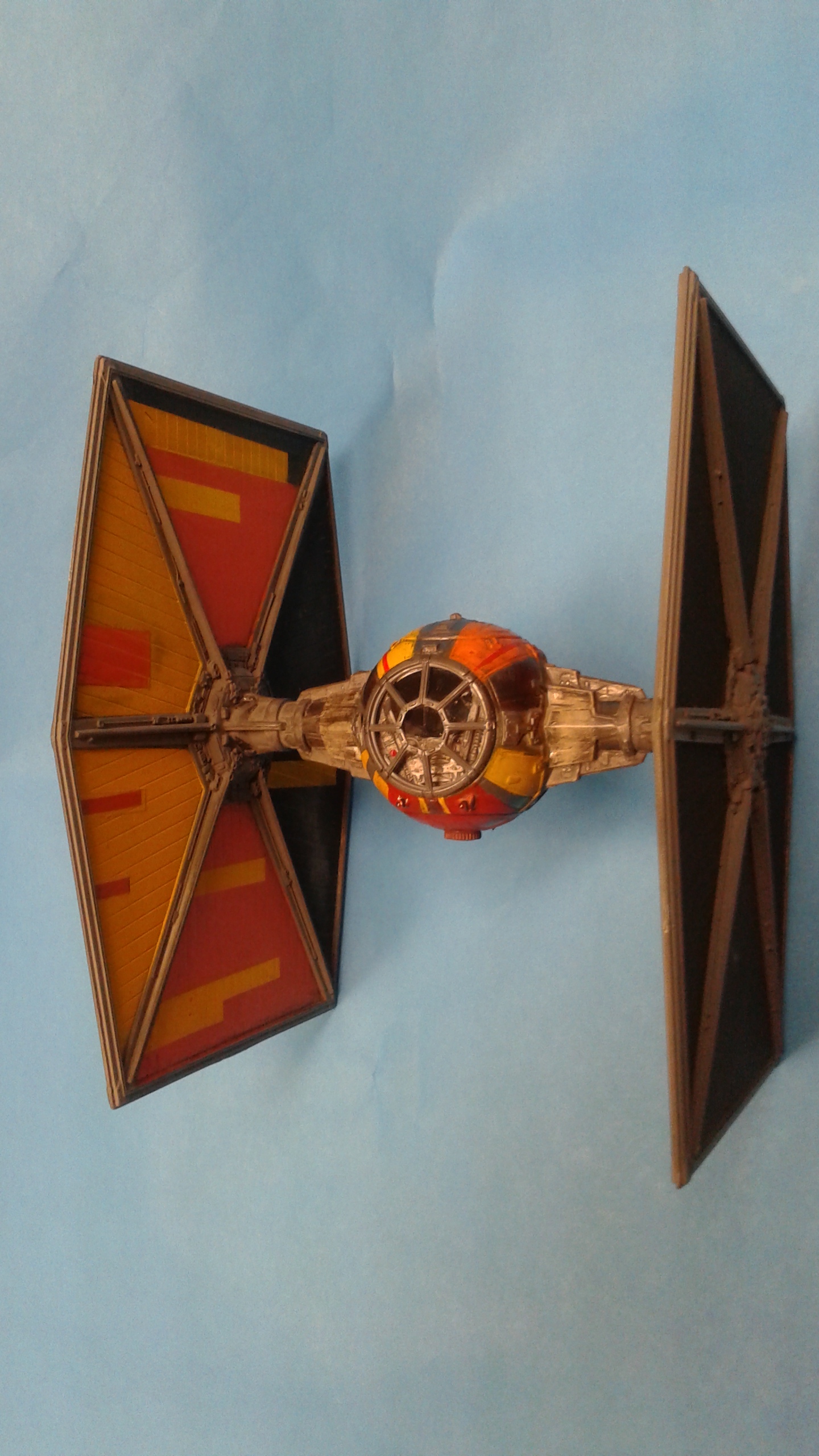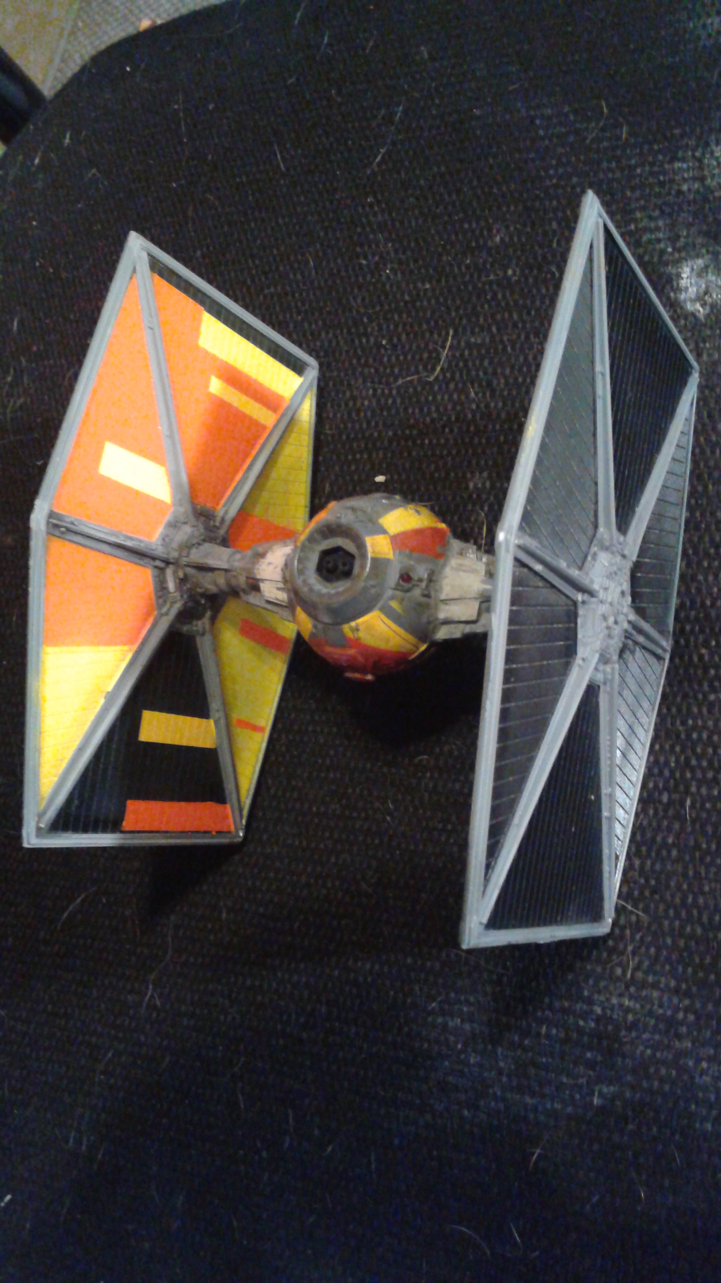 I built this “Rebel Republic TIE Fighter”, from the CGI STAR WARS “Star Wars REBELS” series. It’s not exactly like the stolen rogue fighter in the series, but close. I add weathering and change up the paint scheme a little to make it my own.The cockpit light up with a green LED and the Ion engines are red. Also the Ion Lazer canon’s are green. However if anyone is interested I would sell my Rebel I TIE fighter for $500.+SH $19.95 World wide call for price. Or I can customize one for you if you !