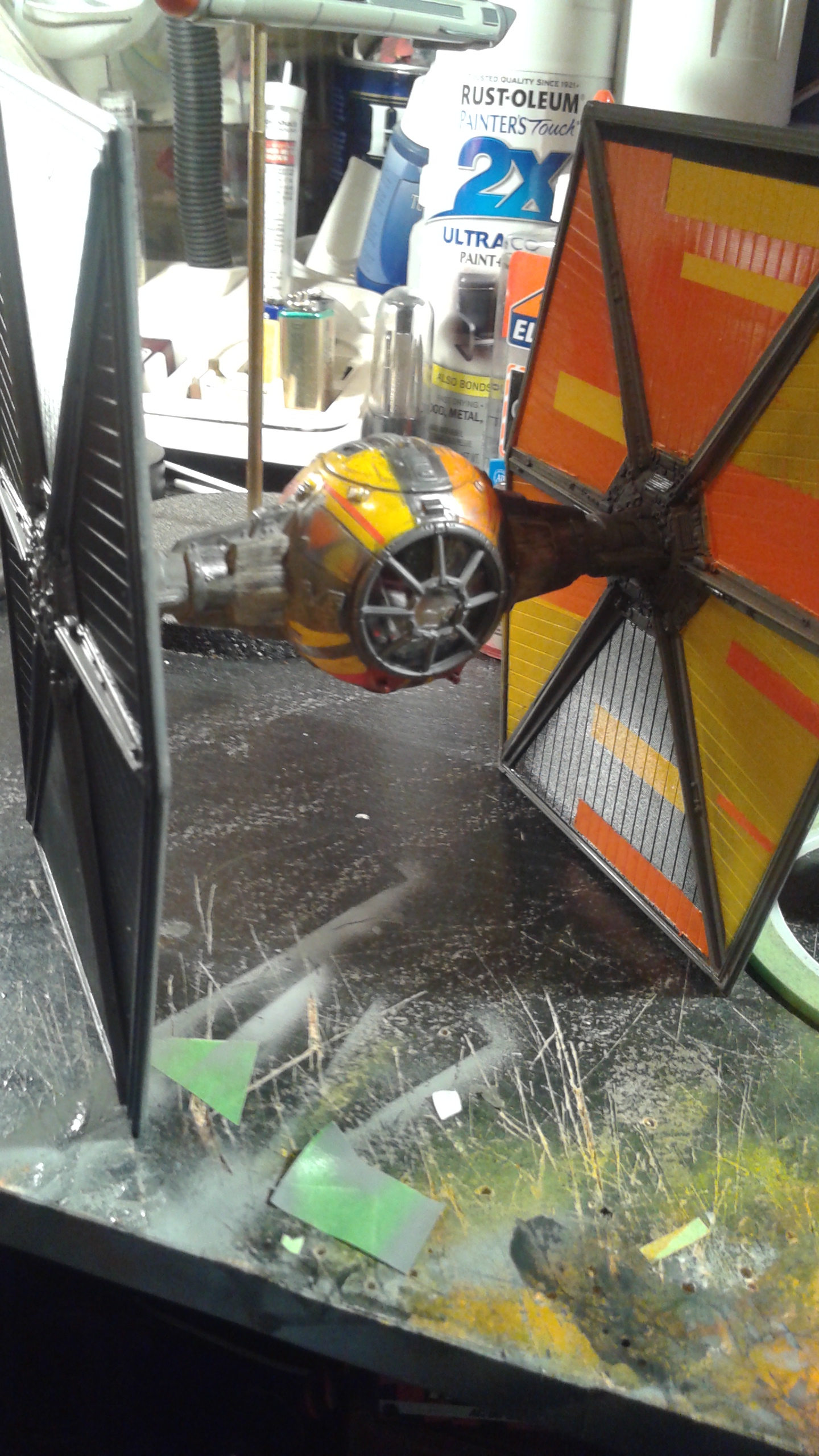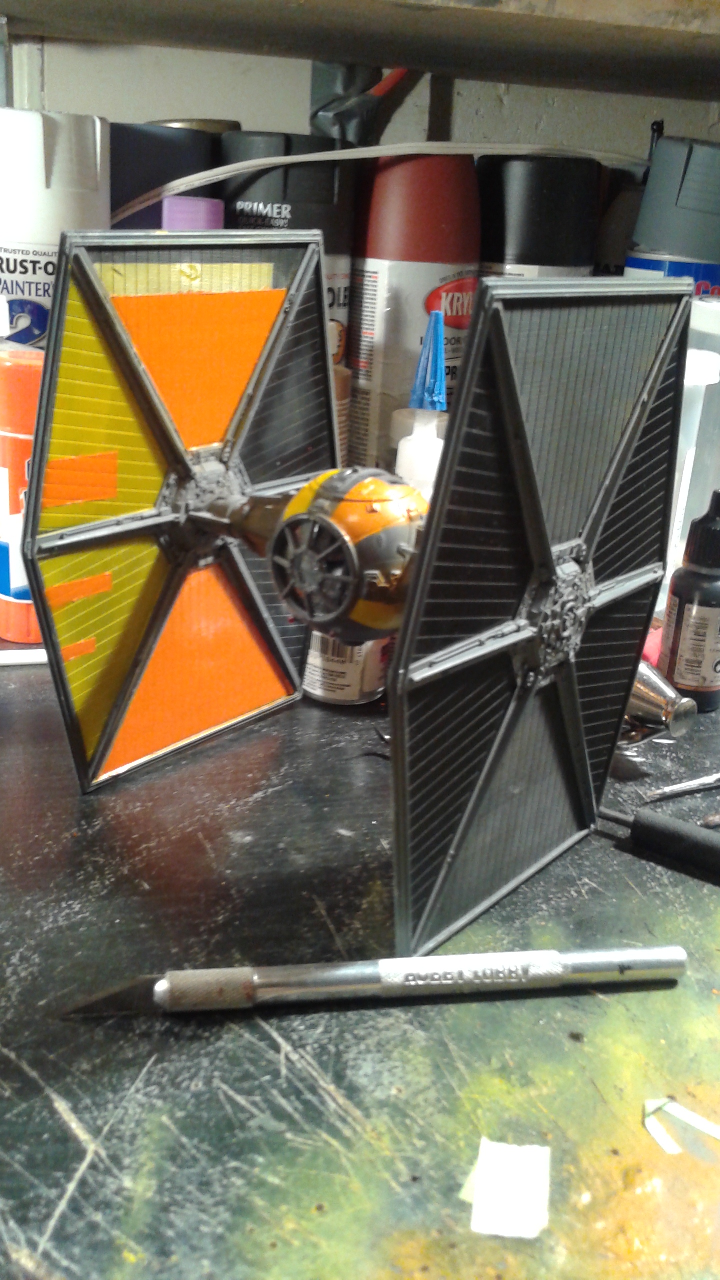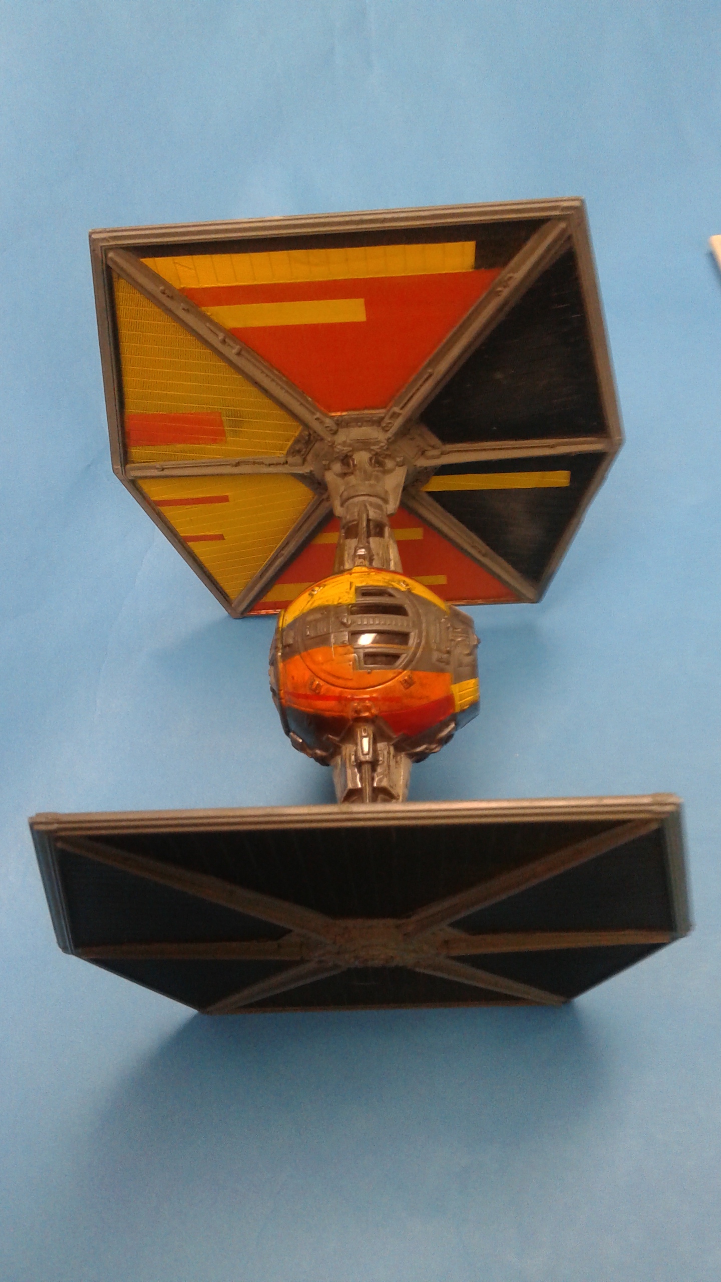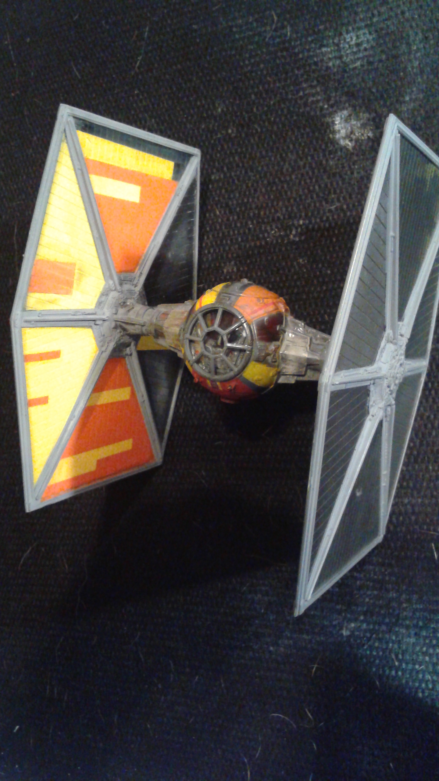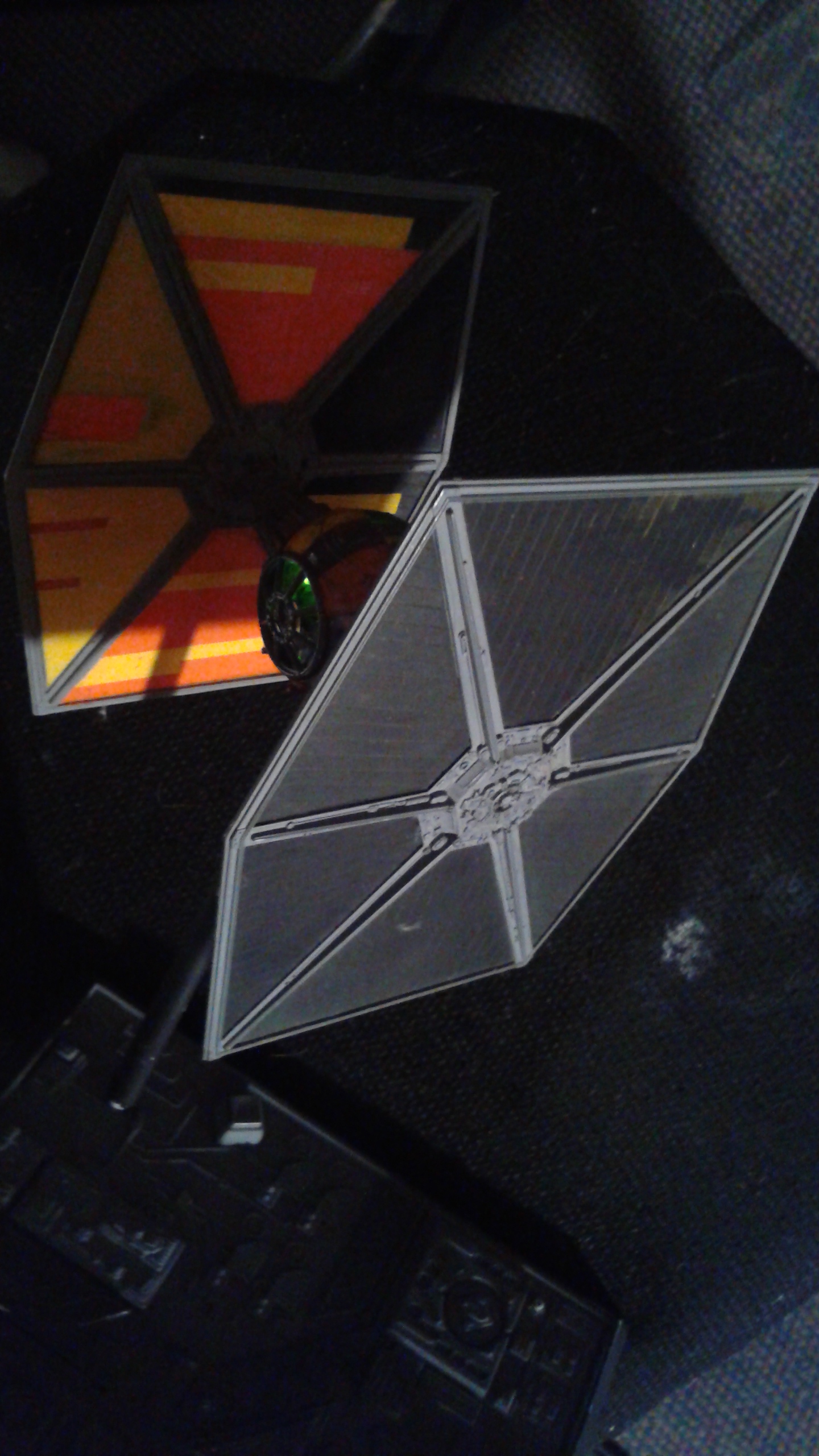 I built this “Rebel Republic TIE Fighter”, from the CGI STAR WARS “Star Wars REBELS” series. It’s not exactly like the stolen rogue fighter in the series, but close. I add weathering and change up the paint scheme a little to make it my own.The cockpit light up with a green LED and the Ion engines are red. Also the Ion Lazer canon’s are green. However if anyone is interested I would sell my Rebel I TIE fighter for $500.+SH $19.95 World wide call for price. Or I can customize one for you if you !
