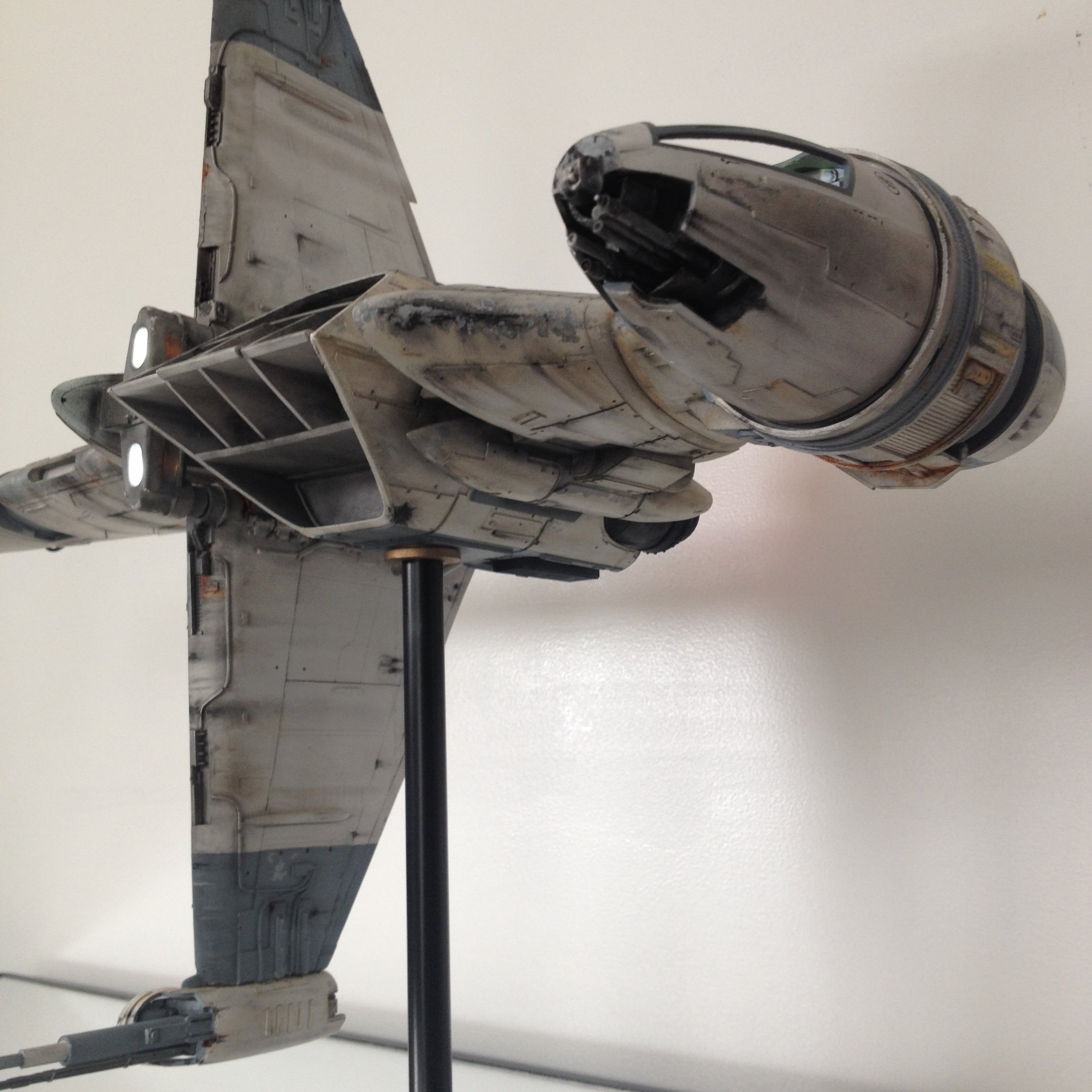 Using the B-Wing Reference from the Modeler Magic Reference area, (big thank you to Jason Eaton for those), artist Chris Kelley created this piece for the Caleb Dickson Collection using the now out of production FM Model Company kit! GOOD NEWS, however… NICE-N Model Designs now offers the Studio Scale B-Wing Kit! Just contact Steve at sneisen@bresnan.net