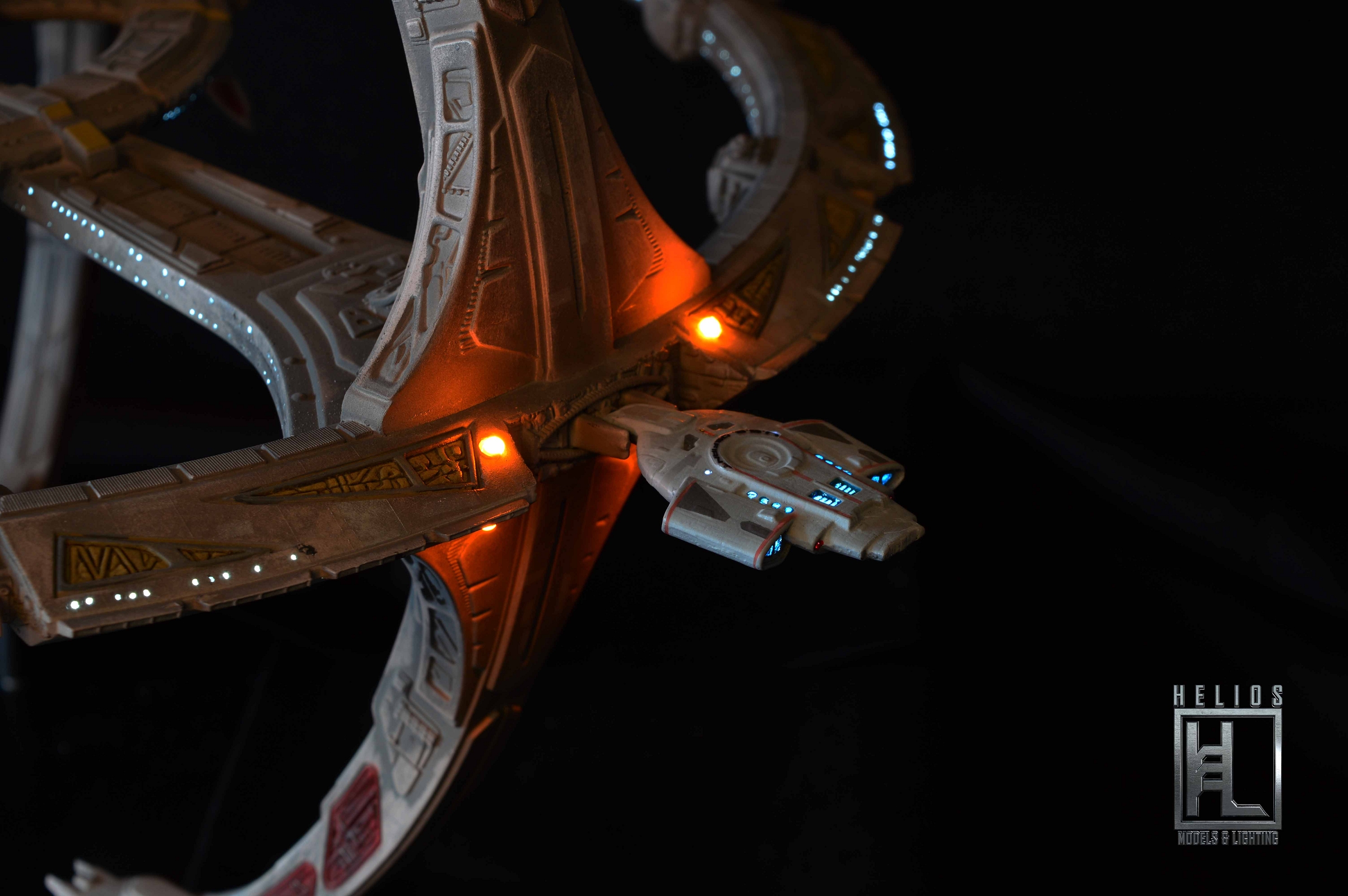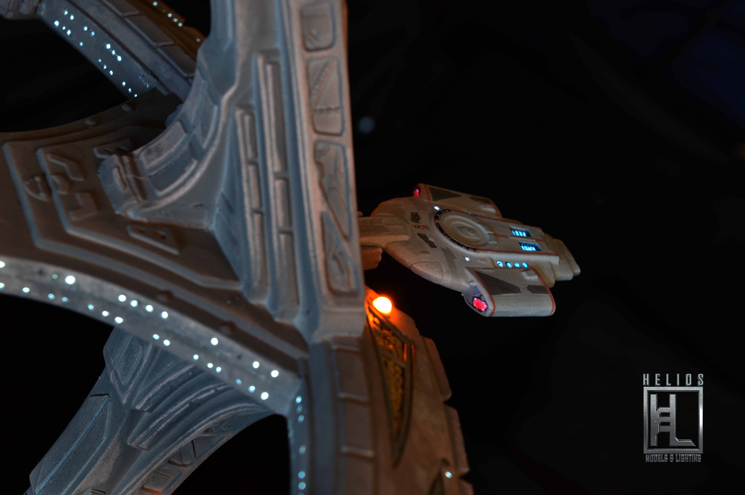 This is the builded and lighted model of the Deep Space Nine station.