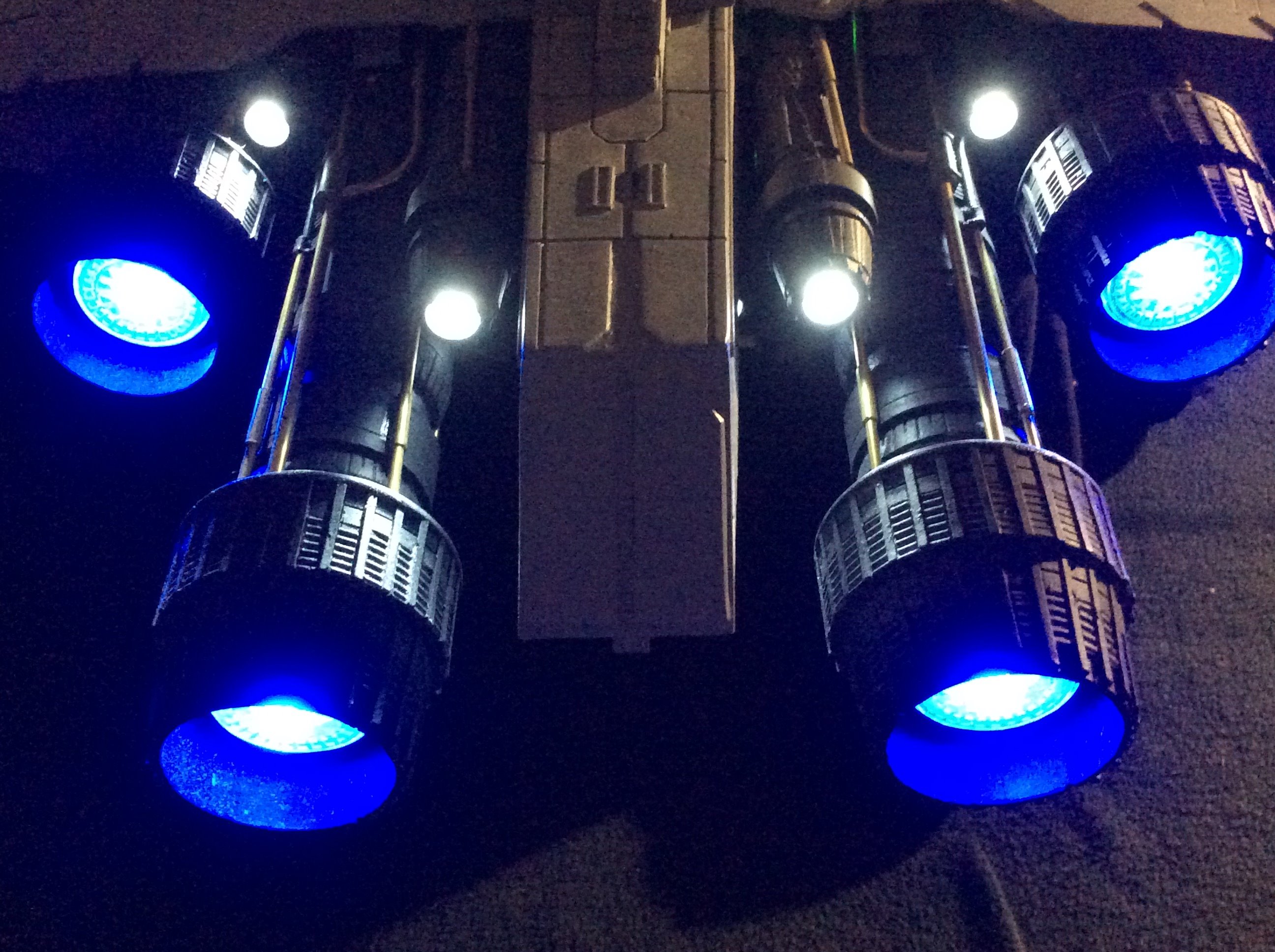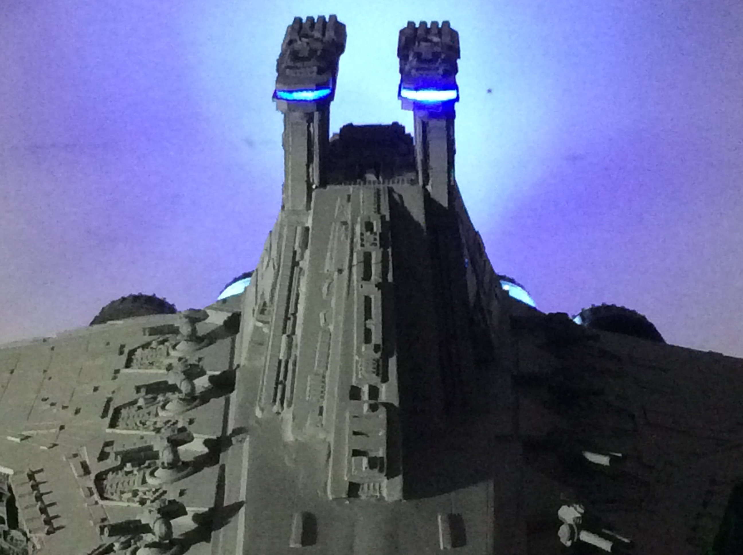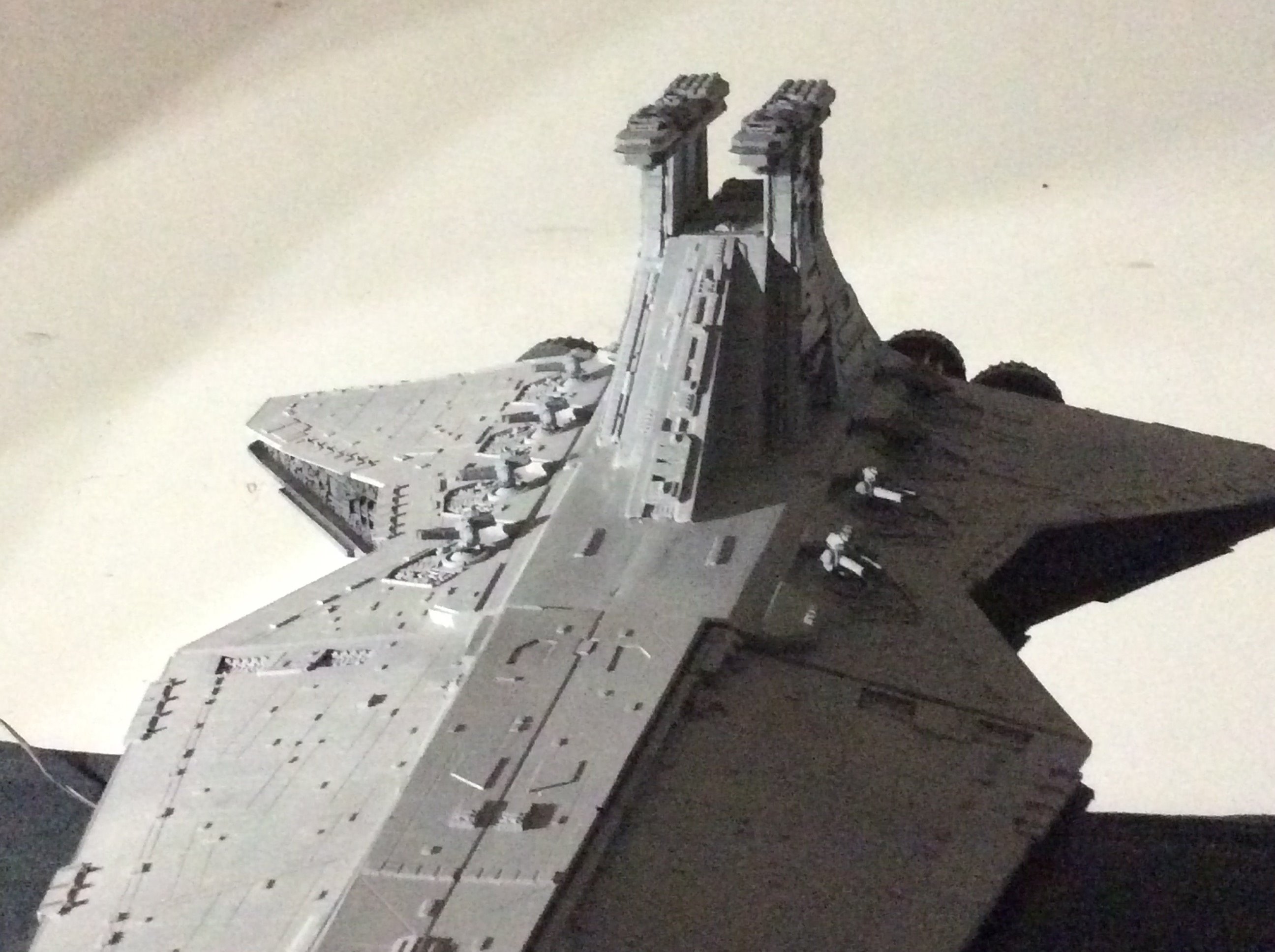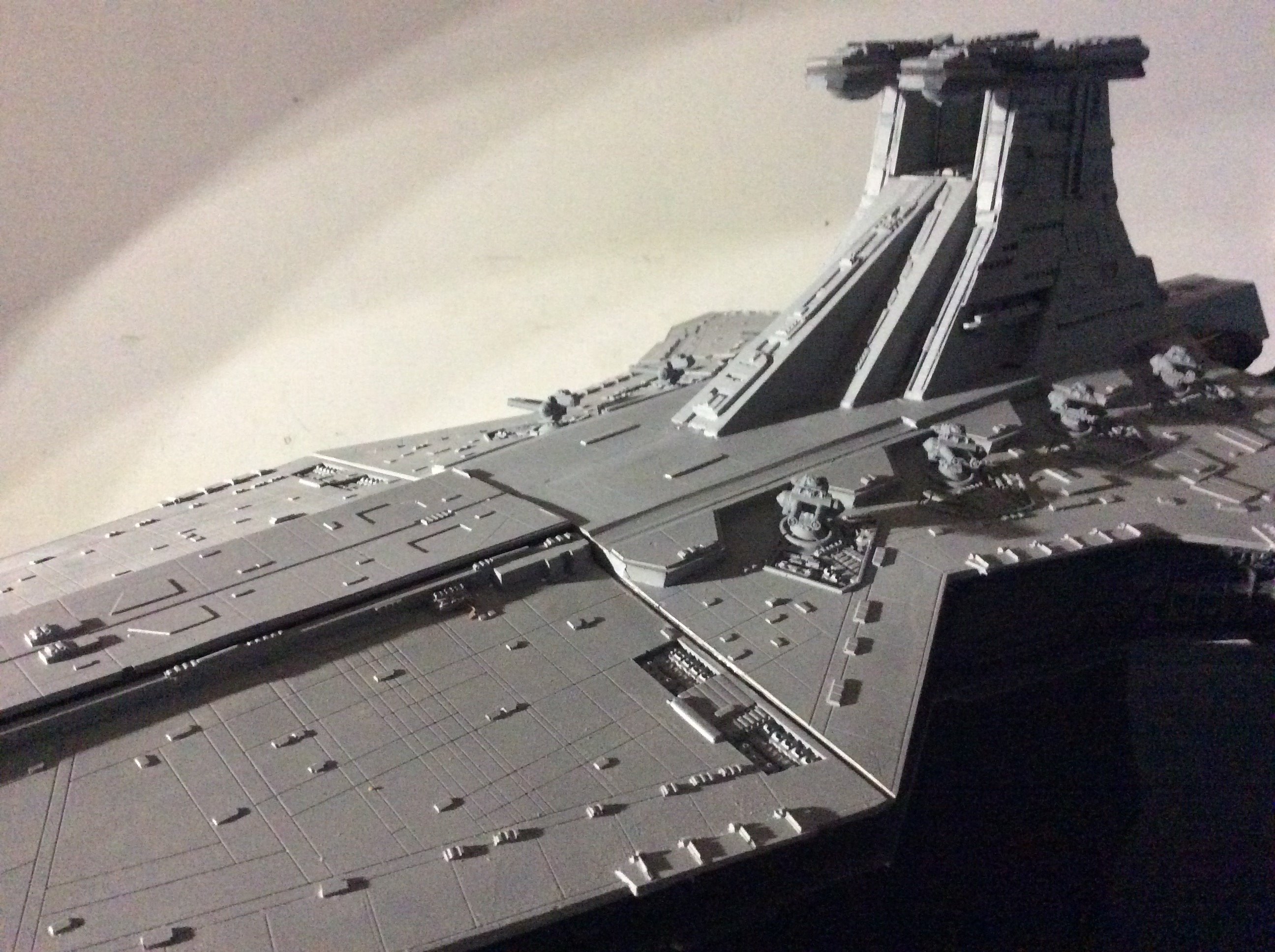 Here is the 40.5”-41” Venator Class Destroyer – Imperial version. It’s a big model and is fully lit. I made some changes to the front nose and engine section to reflect the Destroyer as seen on screen in Revenge of the Sith. Comes with a stand and power supply. Fiber optic cable was used to light up the trenches and bottom hanger. The deck guns are movable and can be positioned any direction. Brass piping was used to replace the resin piping that came with the kit. The Venator model will ship out FedEx, fully insured and packed by FedEx, which shall be paid for by the buyer. I would rather not send this overseas.