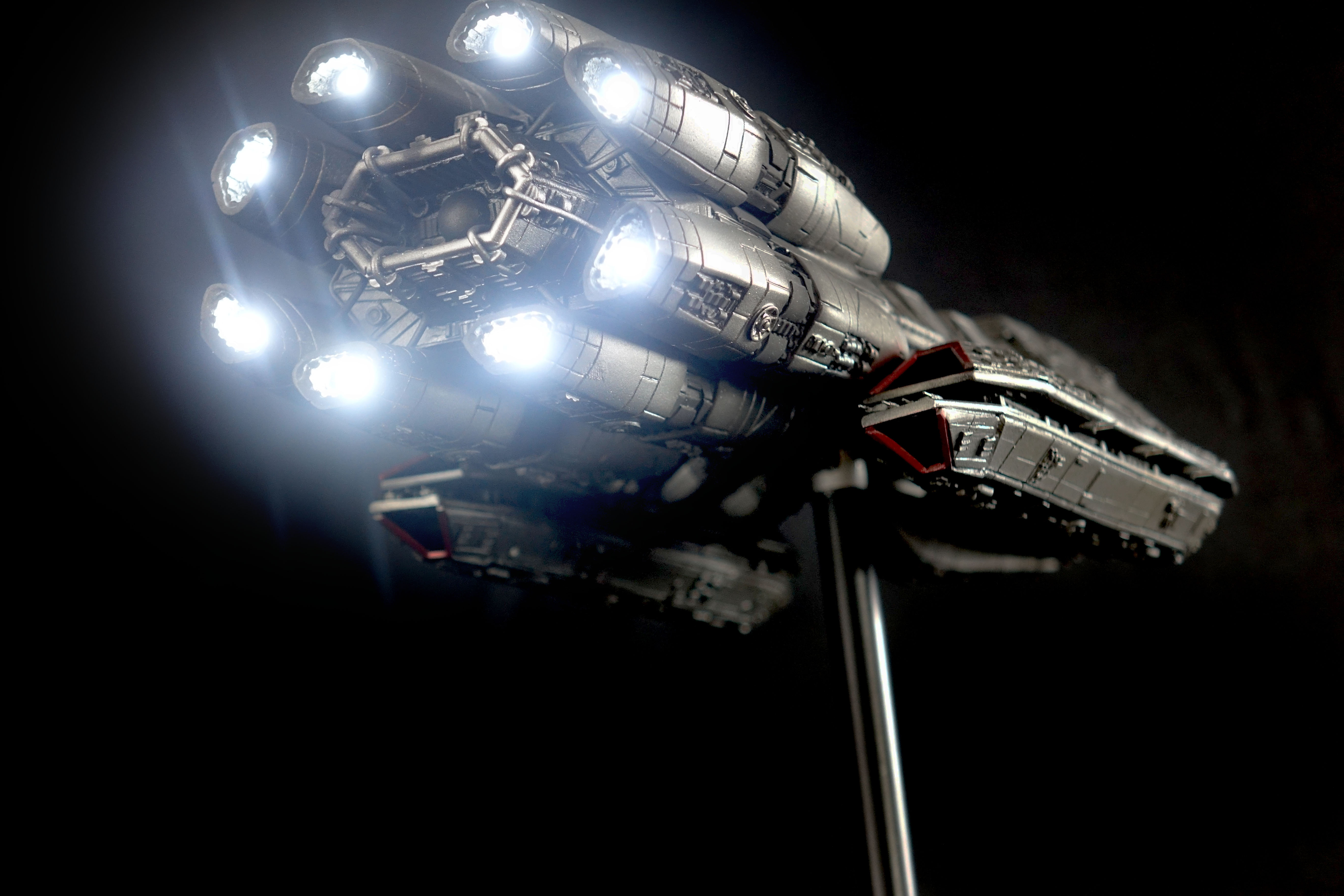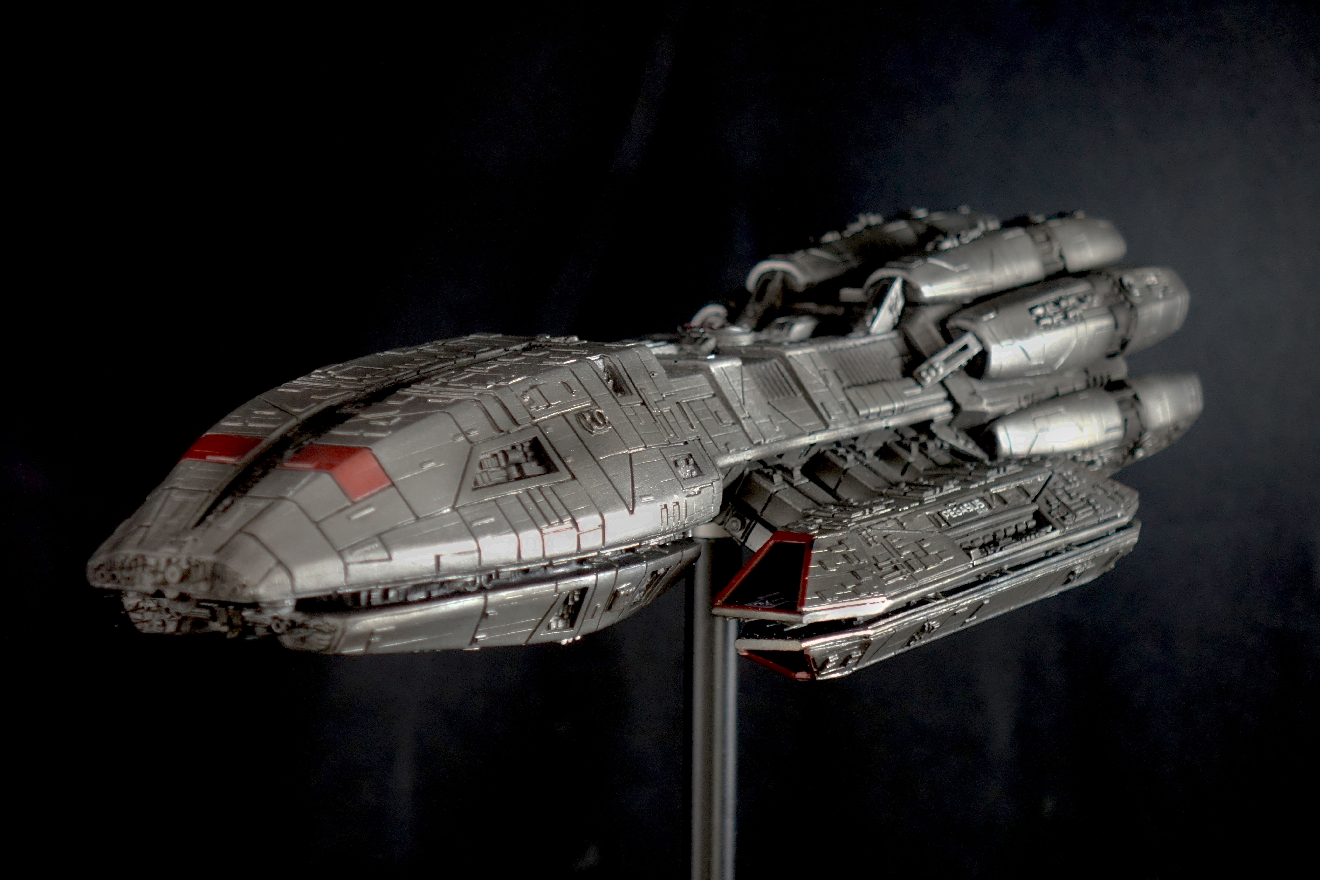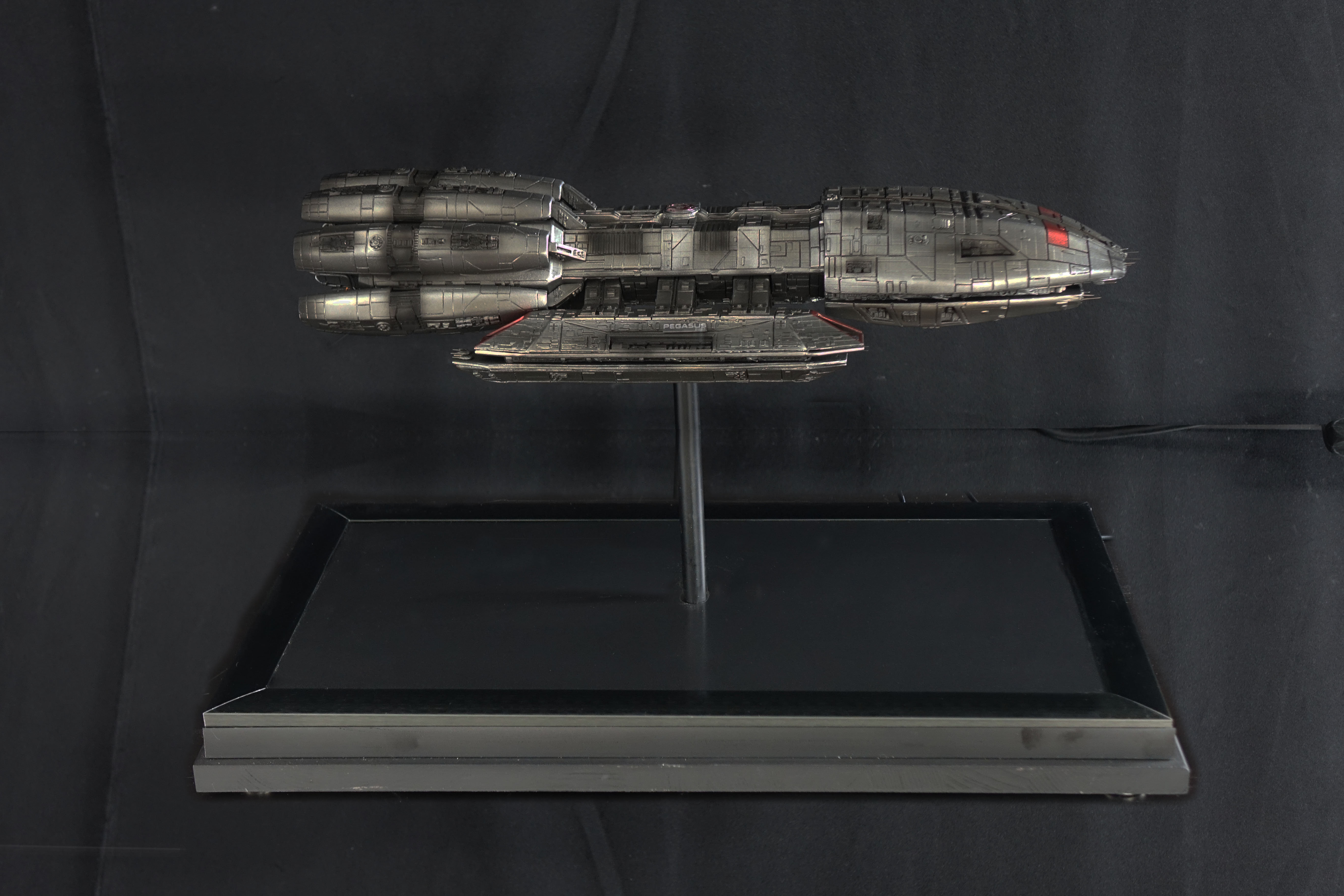 This piece is built from the Bad-Azz Pegasus Kit and lit with 8 different Thruster Effects. It comes with a Black stand which fits the size of the model and makes a Plexi Cover possible.