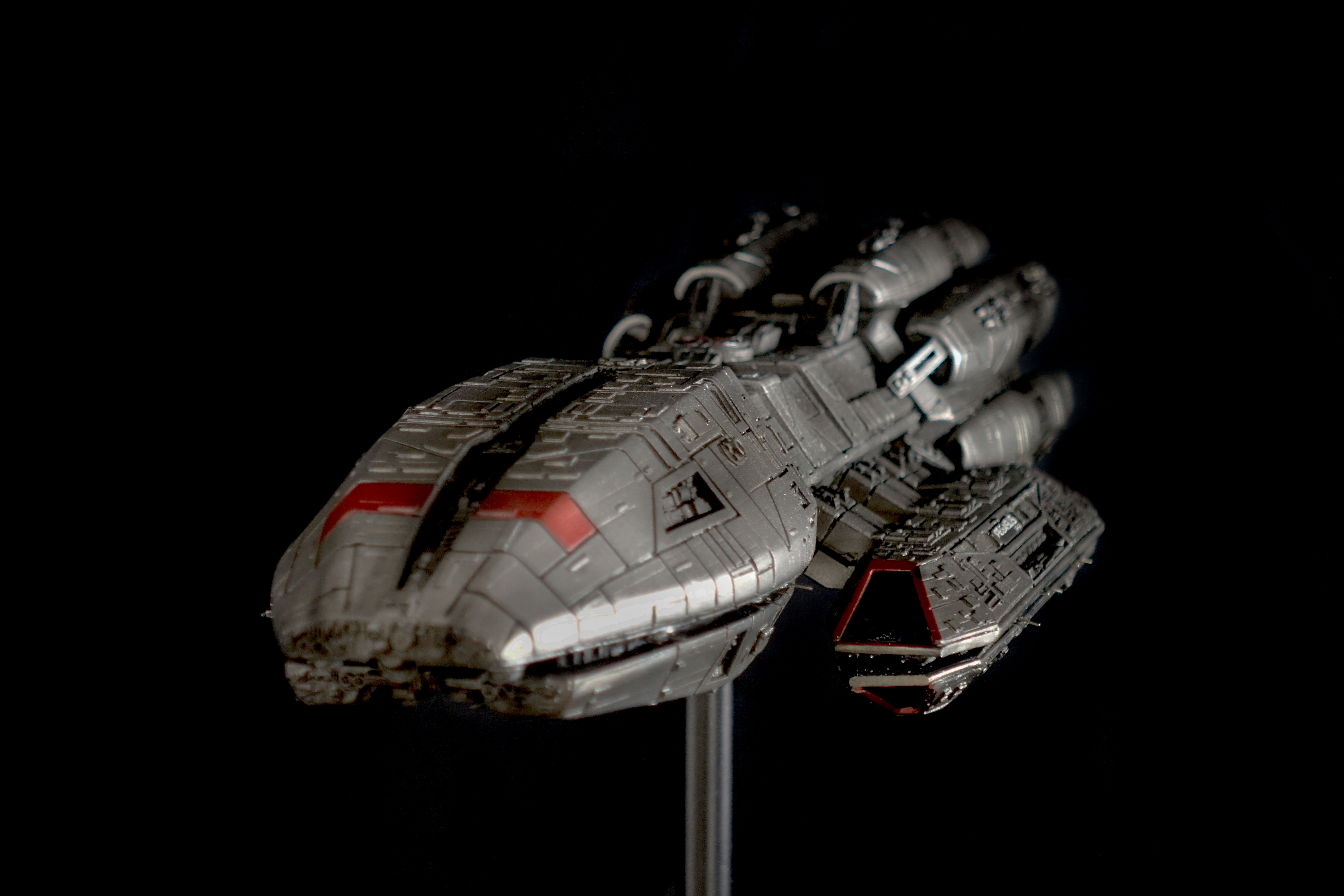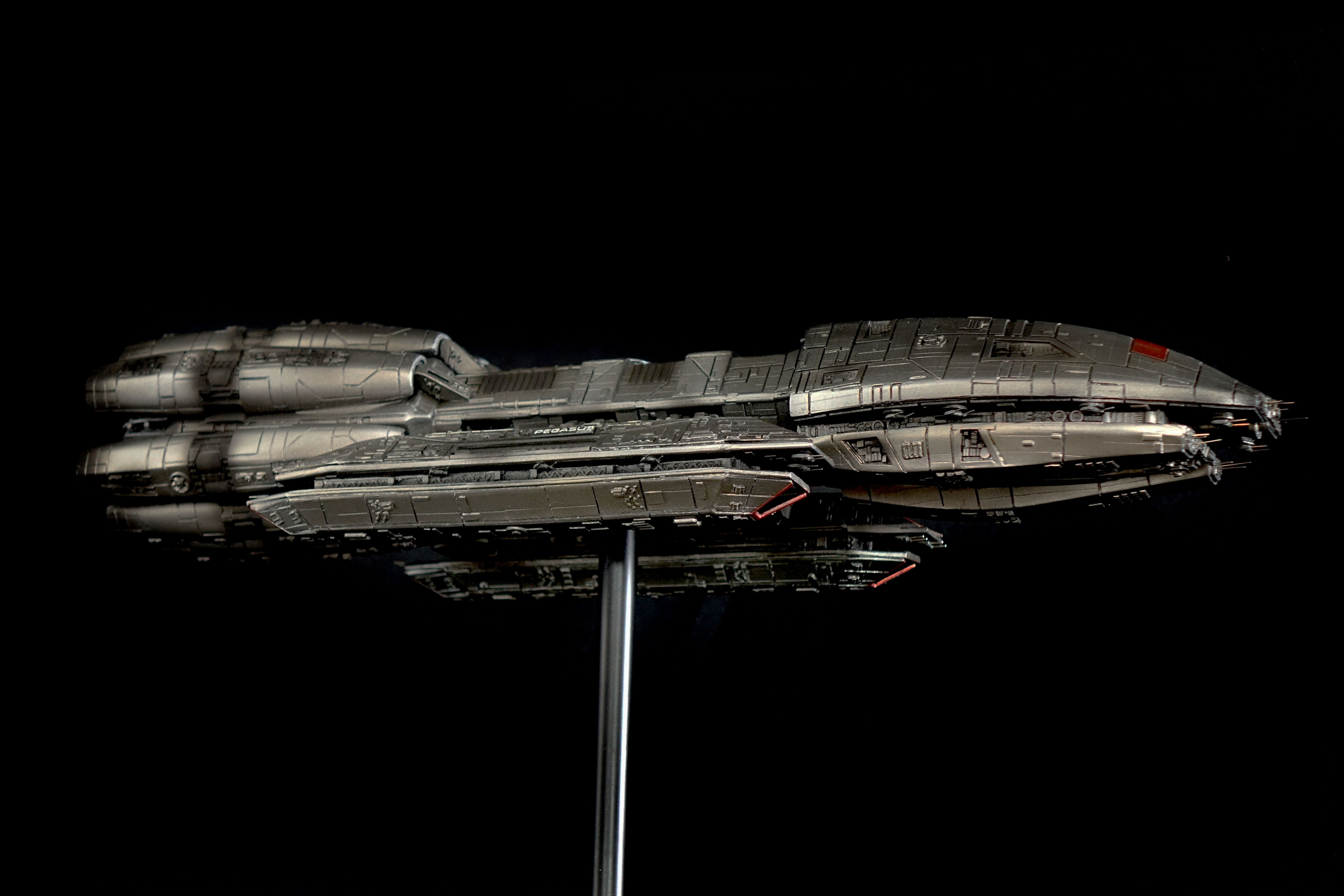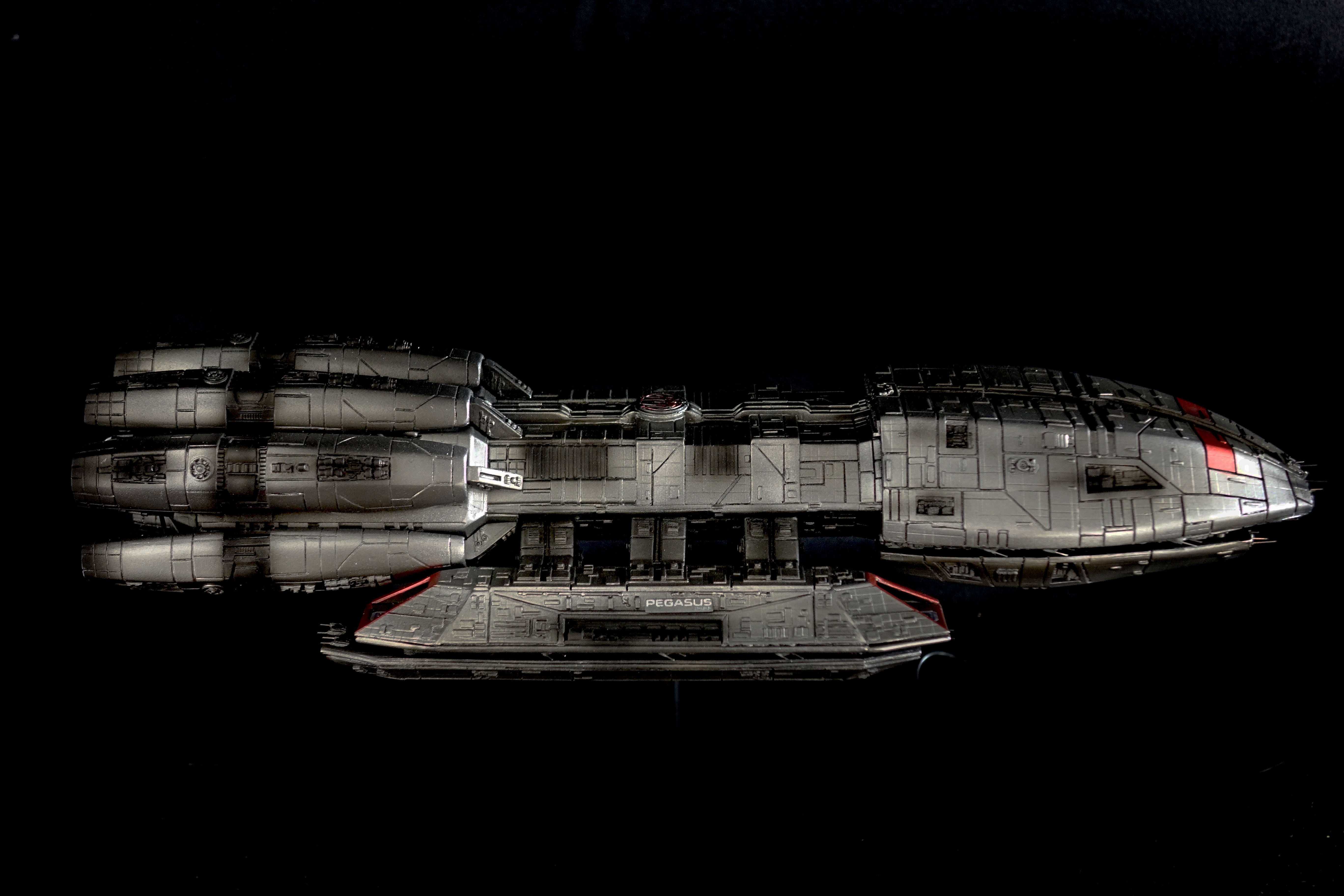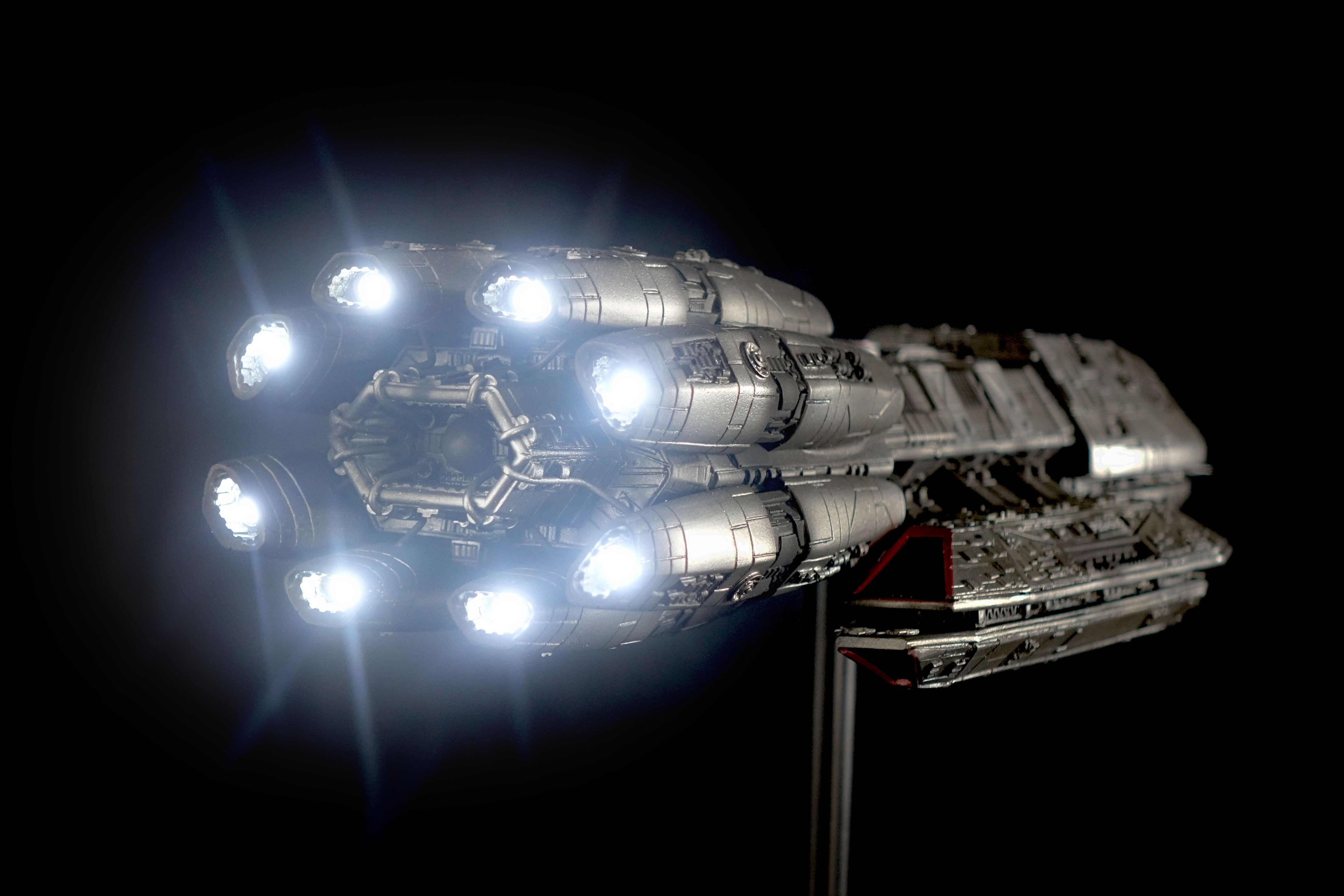 This piece is built from the Bad-Azz Pegasus Kit and lit with 8 different Thruster Effects. It comes with a Black stand which fits the size of the model and makes a Plexi Cover possible.