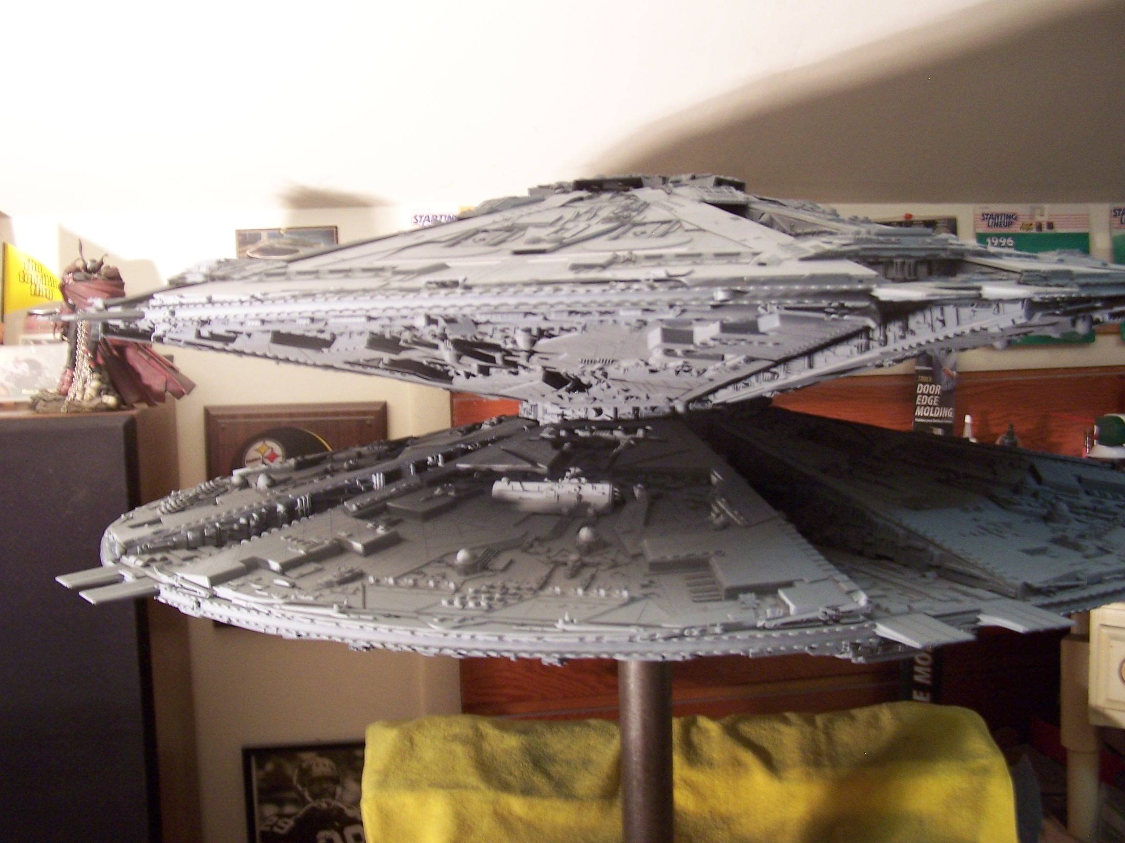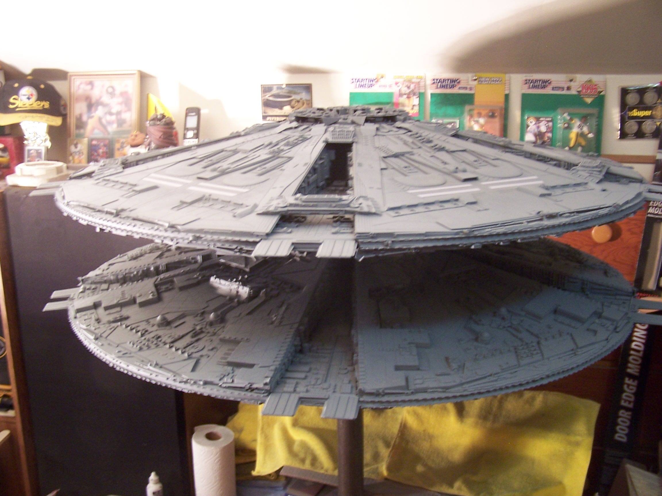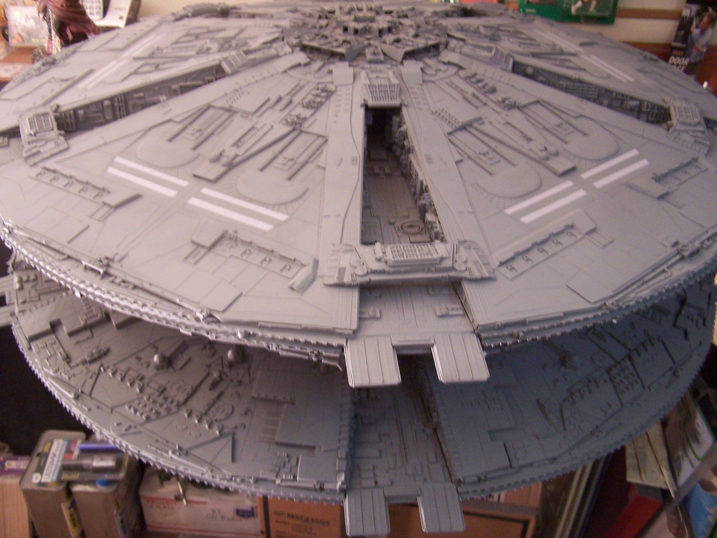 I present FOR SALE my scratch build of the Battlestar Galactica studio scale Basestar from the 1978-79 series and film. I didn’t do the astek paint scheme, and went with a darker shade of grey wanted to have it look more on screen most times it looked dark. Also, the bay area’s are a little narrow compared to the studio model. I have a sound card coming to make the engine noise for that correct display appeal.