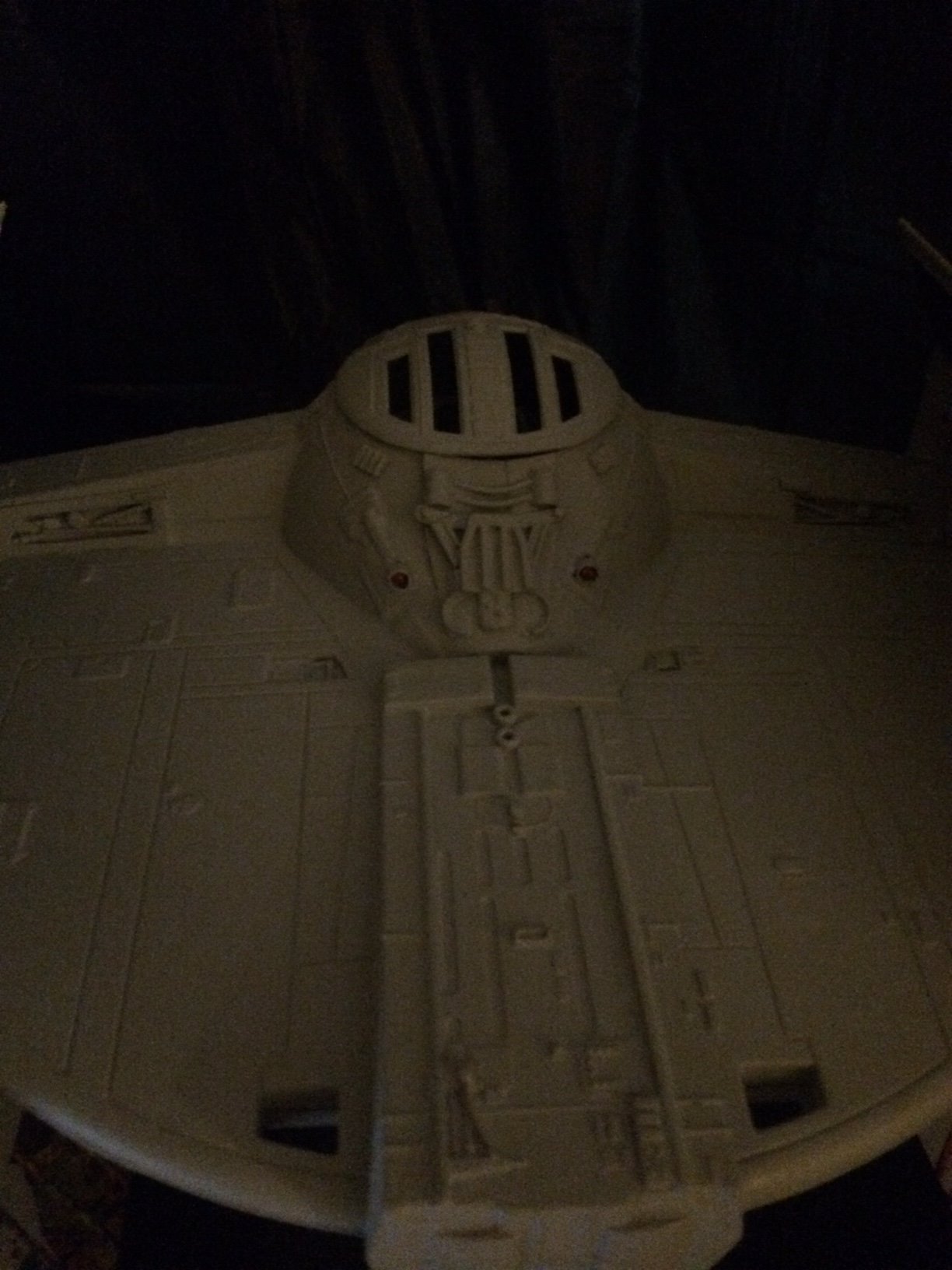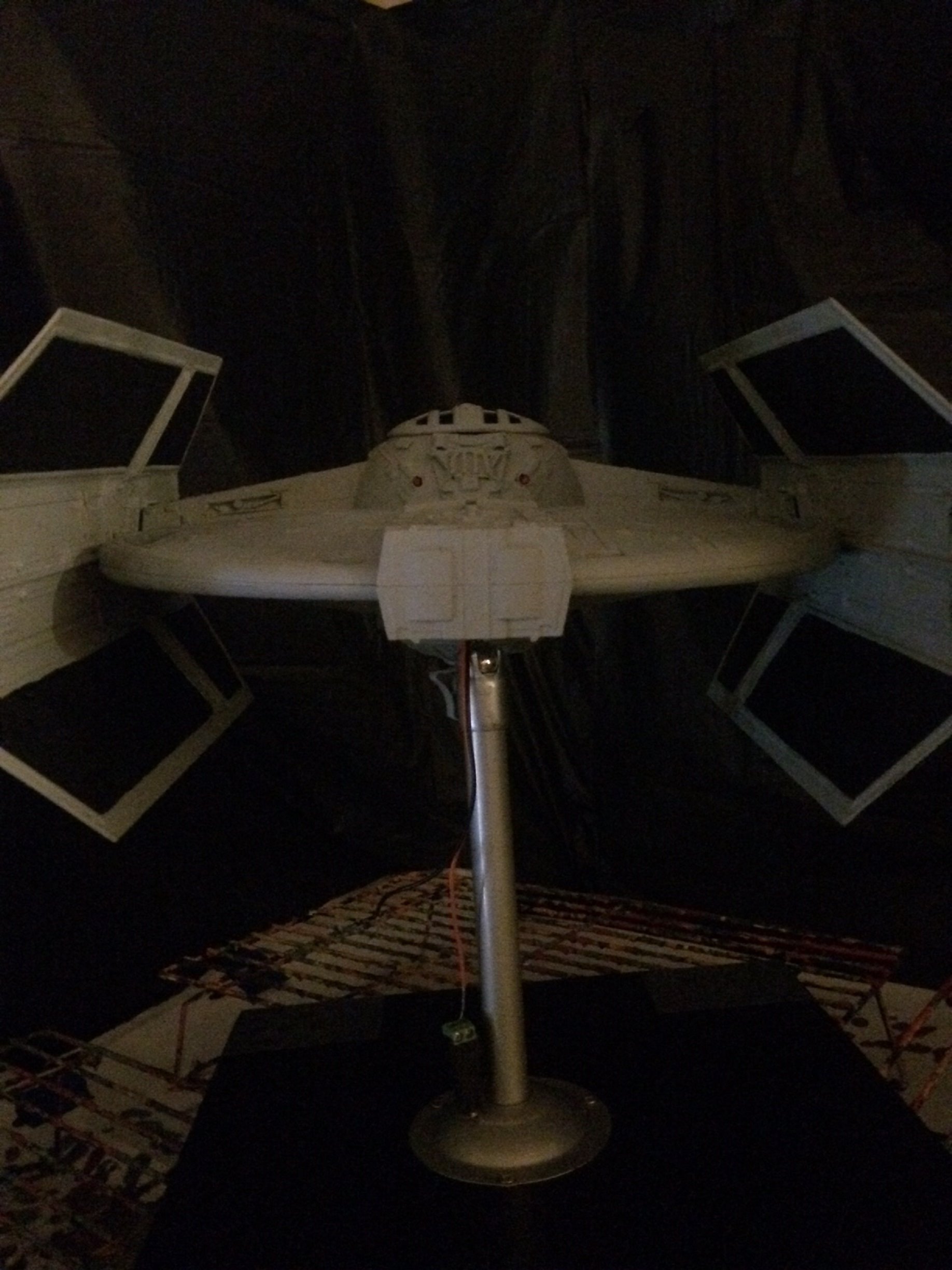 Description: This HASBRO Imperial Advance TIE Fighter X-1 has been converted from being just a toy, to now being a fantastic studio scale-like display model! Within this conversion, paint and weathering, I placed in LED lighting for proper effect.